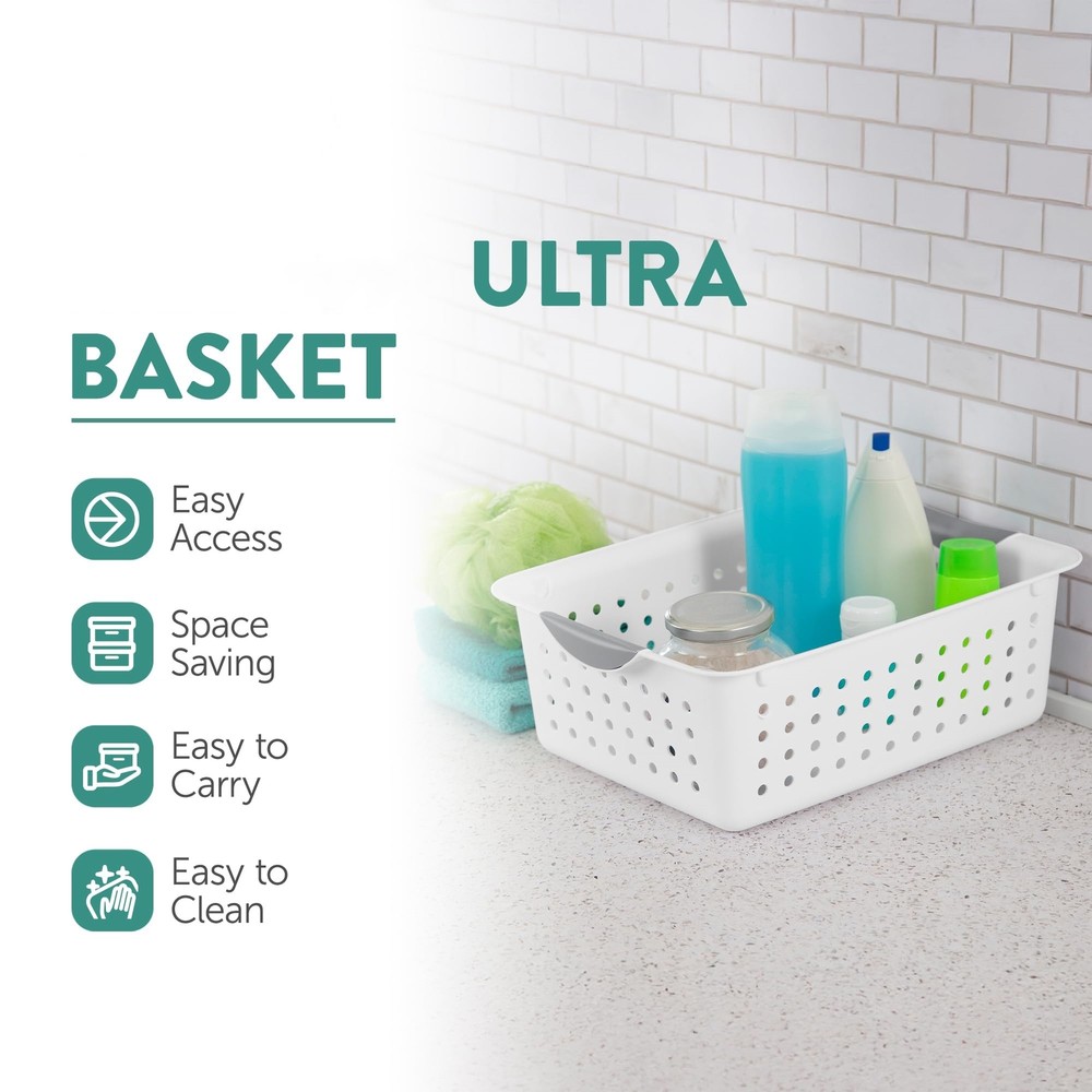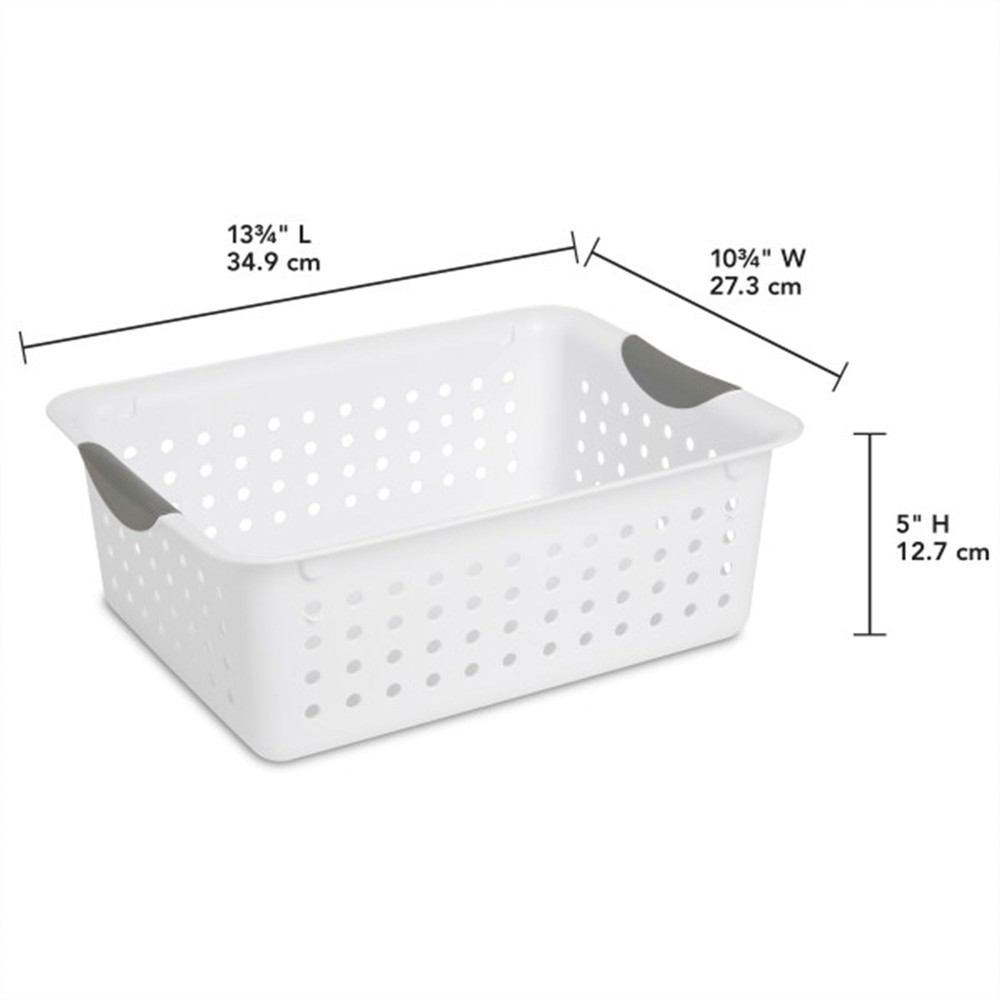 Features: ⨀ Dimensions & Size: These baskets have outside dimensions of 13 3/4" x 10 3/4" x 5", providing a smaller storage option for your needs. ⨀ Comfortable Transport: The contoured handles on Sterilite products ensure a comfortable grip for easy and convenient transportation. ⨀ Effortless Maintenance: The smooth finish of the product makes it easy to clean, saving you time and effort in maintaining its pristine appearance. ⨀ Declutter with Ease: The products feature a modern design and help control clutter on countertops, in cabinets, or on shelving throughout your home, keeping your space organized and tidy. Specifications: Color - White Material - Plastic Finish Type - White Unit Count - 24.0 Count Package List: 24-Pack