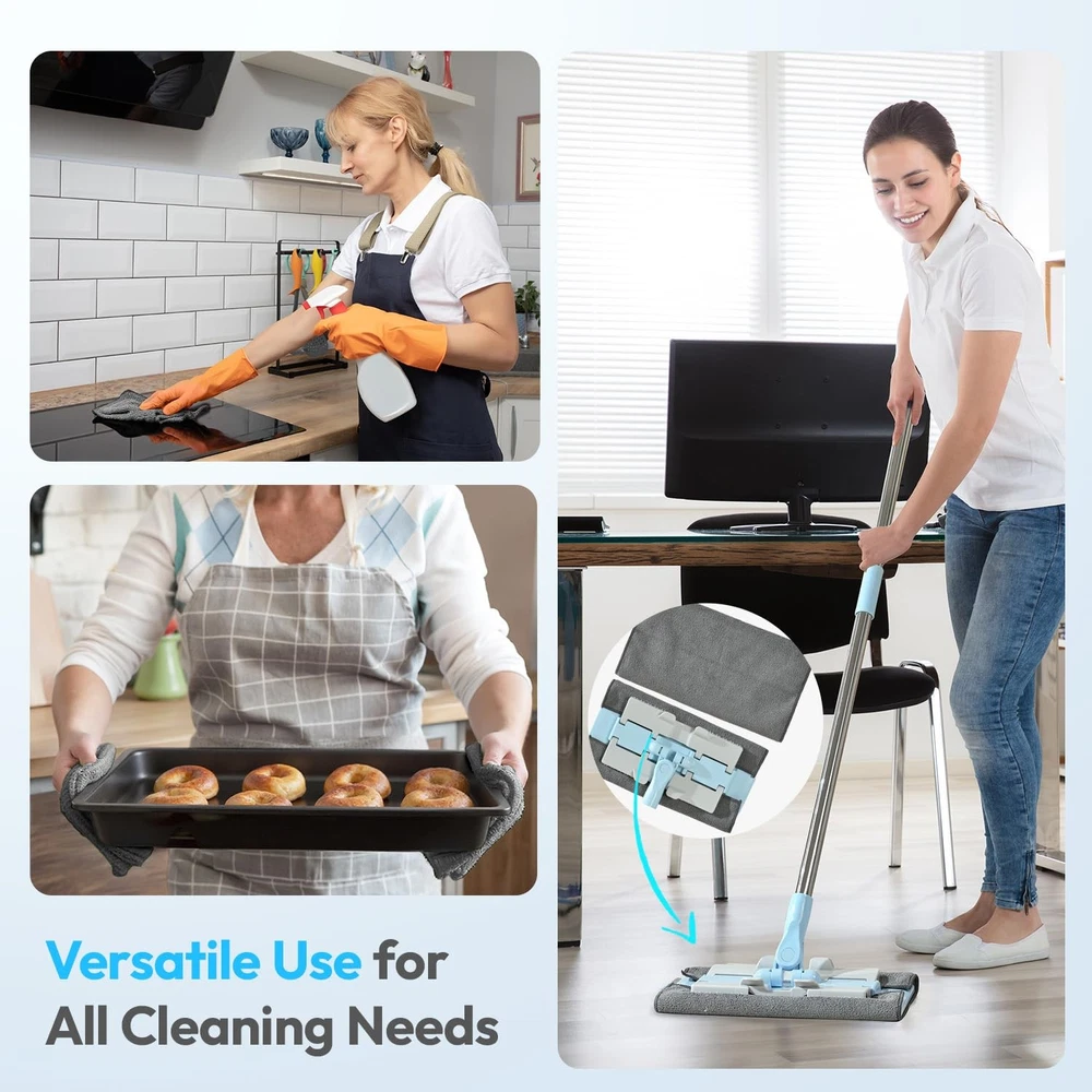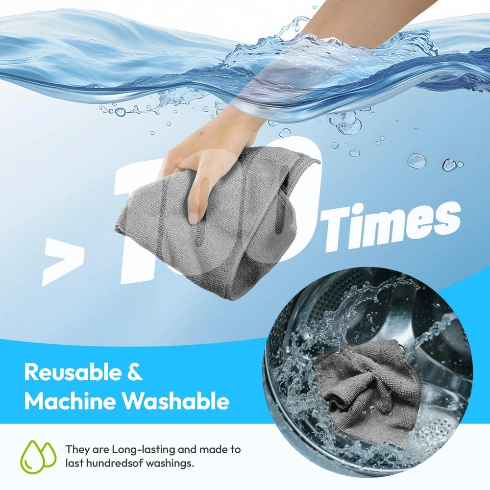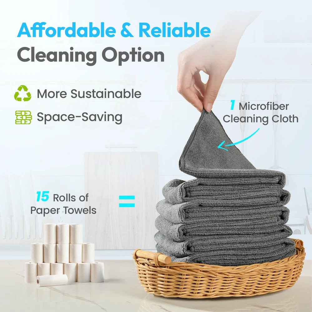 Microfiber cloth cleaning towels 12" x 12" Grey 12pcs 【Thick & Absorbent Fabric】These cloths use premium 270GSM microfiber to deliver a soft, dense, and highly absorbent texture. They clean deeply with both wet and dry use, efficiently lifting dust, fingerprints, grease, water stains, and stubborn grime without scratching surfaces 【No Lint, No Streaks】Wiping with these microfiber cloths leaves surfaces spotless, without streaks or lint. They ensure a perfectly clean and polished finish every time 【Long-Lasting, Fray-Resistant Design】 Built to last, our cloths feature tightly stitched edges that resist fraying, pilling, and unraveling. The high-quality weave ensures long-term durability, offering reliable performance even after multiple washes 【For All Cleaning Tasks】These cleaning towels handle everyday messes in the kitchen, bathroom, office, or car. They work great on surfaces like glass, appliances, and more, making them essential for households, garages, and commercial spaces 【Reusable & Machine Washable】This economical 24-pack bulk package offers outstanding value for daily cleaning. Each cloth retains superior performance even after over 100 machine washes, providing a durable and cost-effective solution