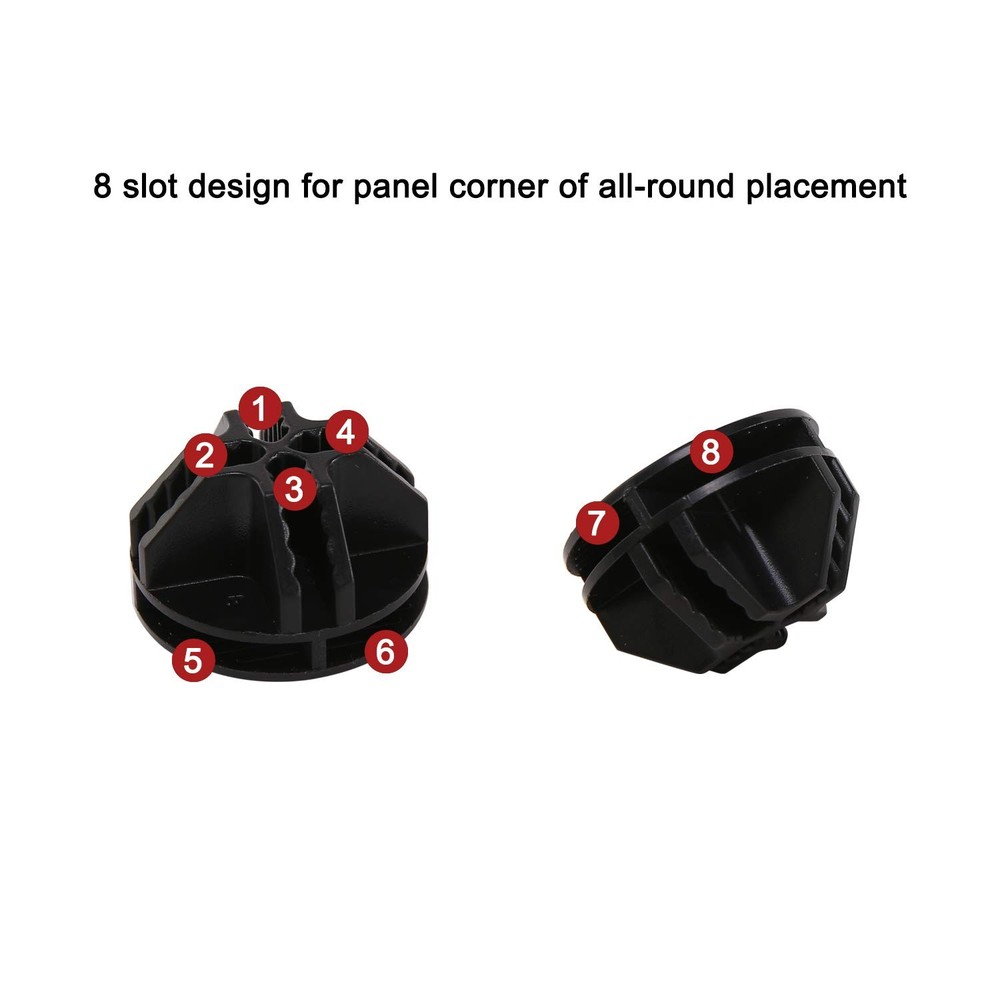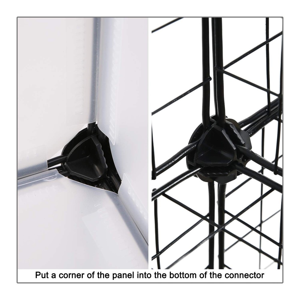 Please make sure the corners of panels are instered into the bottom of connectors entirely, 8 slots in this connector, which allow the assembly of any direction to meet your different needs Specifications: Color: Black Material:ABS Quality Plastic Size of Each Connector: 1.4”L x 0.16”H Notes: Please measure your cube organizer's dimension to ensure our cube connectors will work on your project. Keep well away from children to prevent them from swallowing. Protect the product from exposure to direct sunlight or rain. UNLEASH YOUR IMAGINATION: Package includes 24 pcs plastic connectors can help you assemble the storage cabinet into any shape you wanted DURABLE MATERIAL: Made of quality plastic material can serve for a long time use, durable and stable. Perfect for replacing lost or broken parts BROAD COMPATIBILITY: Each connector has 8 slots for meeting your various needs, suitable for wire cube, modular closet, wire shelving units and so on EASY ASSEMBLY: Diameter: 1.42 inch (3.6cm), inner width: 0.16 inch(0.4 cm). You can use it easily assemble the different shapes to fit different spaces SATISFACTION: Customer service 24/7 standing by, ensure warm and effective pre-sale and after-sale service, so don't wait any longer and enjoy it right now