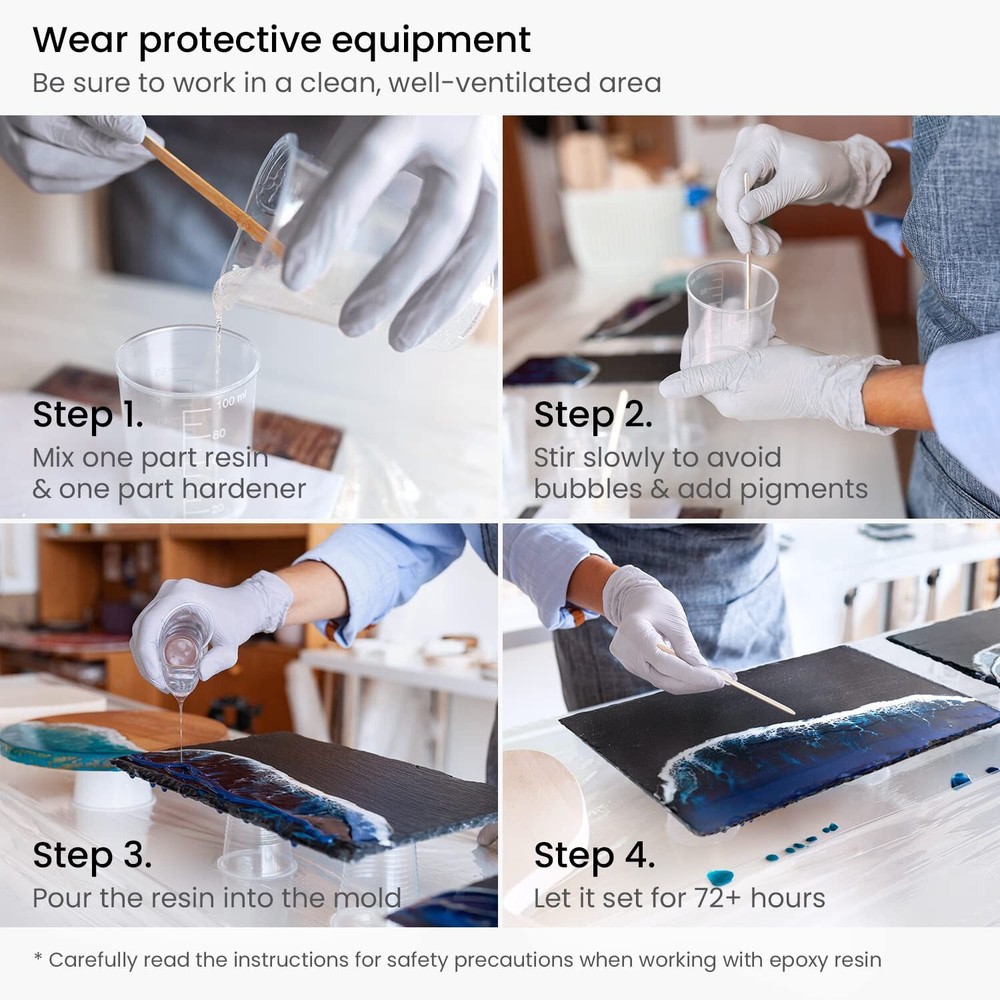 Design unique resin art with our 24-piece kit! Create coasters, cups, ashtrays, pen holders, and more by utilizing the tools included in this kit. Perfect for creating your own Christmas and birthday gifts for loved ones. Our kit and resin supplies feature epoxy, which is combined with various color pigments of mica to create unique art that can be applied to epoxy resin molds. The kit includes an 8-oz bottle of epoxy resin and also comes with a hardener for a durable finished piece! Tons of accessories included! This kit has everything you need to create the perfect piece of DIY art. Our set includes a plastic spatula, wooden craft sticks, resin mixing cups, dropping pipette, and even a pair of gloves to keep the mess off your hands! Instruction book included! For beginner artists, working with clear epoxy resin may seem overwhelming at first but is actually a super easy process once you get the hang of it! Our kit comes with a handy instruction book so you can learn all about this unique art process. Craft Supplies for Arts and Crafts Lovers: was built to support artists everywhere by providing top-of-the-line craft tools. Find tons of art products to help you explore the world of DIY crafts. If you have any issues with our products, please reach out, and we’ll make it right.