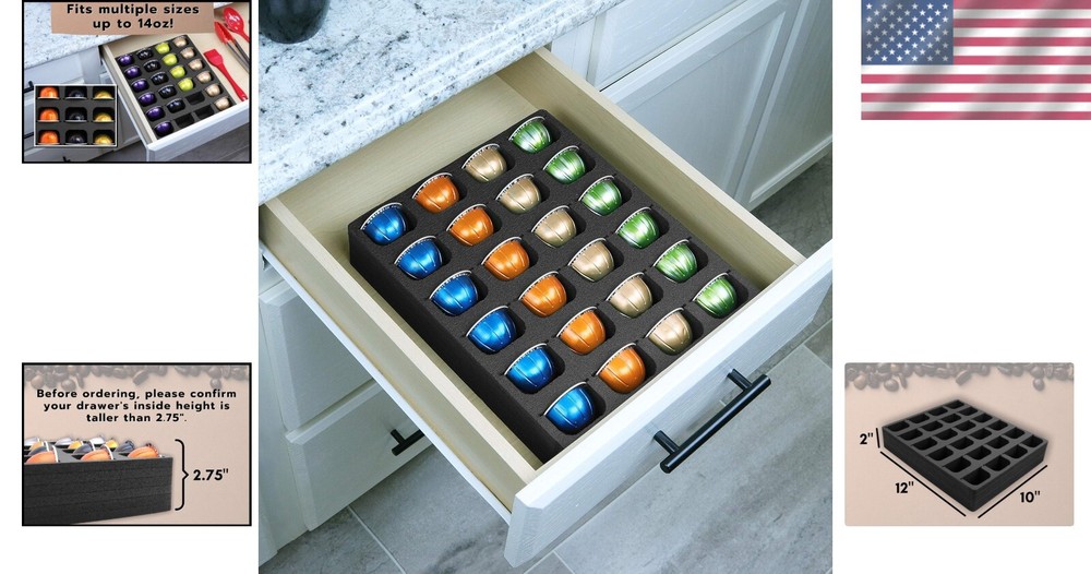 Waterproof Espresso Capsule Storage Tray – 24 Compartment Black Organizer Insert ‹ › ‹ › ‹ › ‹ › ‹ › ‹ › ‹ › ‹ › ‹ › ‹ › Waterproof Espresso Capsule Storage Tray 24 Compartment Black Organizer Insert Features: Attractive black high-density foam drawer organizer with 24 compartments. Compatible with Nespresso Vertuo Vertuoline capsules (up to 14-ounce size). Designed to fit many standard drawers (see size requirements). Elegant black foam construction that is lightweight yet durable. Non-slip, anti-rattle design that is super-easy to clean. Ideal for home, office, kitchen, break room, conference room, and more! Benefits: Control coffee capsule clutter effortlessly. Neatly organize your favorite capsules for easy access. Maximize countertop or drawer space beautifully. Stylish design allows for attractive display on desks or countertops. Waterproof material ensures durability and easy cleaning. Why Choose Our Waterproof Espresso Capsule Storage Tray? Transform your coffee experience with our beautifully designed Espresso Capsule Storage Tray. Say goodbye to clutter and hello to organization! With 24 convenient compartments tailored for Nespresso Vertuo Vertuoline capsules, you can keep your favorite coffee delights within easy reach. Crafted from elegant, high-density waterproof foam, this organizer not only looks stunning but is also practical for any environment—be it your home kitchen, office break room, or conference space. Its non-slip design prevents rattling, ensuring your capsules stay secure while the easy-clean feature means more time enjoying your brew and less time cleaning. Don’t let your caffeine stash go unappreciated—order our Waterproof Espresso Capsule Storage Tray today and express your love for espresso like never before! Shipping Free & Fast Shipping - We offer free shipping to most of the USA with a normal delivery time of 3-7 days. However, due to the current situation, additional delivery time (up to 3 weeks) may be required for some items. Alternative Carriers - We may use alternative carriers (e.g. USPS, FedEx, UPS, etc.) to ensure your package arrives safely and on time. Due to the use of multiple carriers, we are unable to provide a tracking number automatically. Handling Time - Orders are processed and shipped within 1-2 business days of receiving cleared payment. Shipping Restrictions - Shipping to Alaska, Hawaii, Puerto Rico, Guam, and other US territories may incur shipping charges or delivery restrictions. Please contact us before ordering, or your order can be refunded/cancelled. State Restrictions - There may be restrictions based on your state of purchase. For example, certain items may not be shipped to California due to state regulations. Contact for Tracking Updates - If you require tracking updates or have any concerns about the delivery of your order, please feel free to contact us, and we will be happy to assist you. Return 30-Day Hassle-Free Returns - We want you to be completely satisfied with your purchase. If you are not, you can return the item within 30 days of receiving it for a full refund or exchange. Easy Return Process - To start a return, simply contact us and we will provide you with a prepaid return shipping label and detailed instructions. Restocking Fee - There are no restocking fees for returns. However, the buyer is responsible for return shipping costs if the return is not due to a seller's error. Refund Processing Time - Refunds will be processed within 5 business days of receiving the returned item in its original condition. Payment We accept all major credit cards, PayPal, and Apple Pay for your convenience. Your payment information is secure and encrypted to ensure a safe and seamless transaction. Please complete your payment within 3 days of purchase to avoid any delays in shipping. Feedback Your feedback is extremely important to us. We strive to provide the best products and customer service possible. If you are satisfied with your purchase, please take a moment to leave us a positive review. If you have any concerns or issues with your order, please contact us before leaving negative feedback. We are committed to resolving any problems and ensuring your satisfaction. Contact Us If you have any questions or concerns, please feel free to reach out to our customer support team. You can contact us through the eBay messaging system. We are available Monday to Friday, 9:00 am to 5:00 pm EST, and we will do our best to respond to your inquiry within 24 hours. Buy it now and enjoy a pleasant shopping experience! UPC: Not Set Unit Quantity: 1.44 oz Material: Foam,High Density Foam,Waterproof Foam Features: Dishwasher Safe,Easy to Clean,Waterproof,Lightweight,Non-Slip,Anti-Rattle Mounting: Insert Mount,Insert Set Includes: Insert,Organizer Department: Unisex Brand: Unbranded Item Height: Nespresso Capsule Organizer Item Length: Nespresso Capsule Organizer Item Width: Nespresso Capsule Organizer Type: Coffee Capsule Organizer Color: Black Size: 10" x 12" Number of Shelves: 1 Number of Compartments: 24 Shape: Rectangle Number of Tiers: 1 MPN: Not Set Style: Contemporary Rack Type: Drawer Insert Country/Region of Manufacture: Not Set Wood Tone: None Item Depth: 12 in Item Diameter: None Capacity: None Capsule/Pod Capacity: 24 Item Weight: 1.44 oz Model: Not Set Unit Type: oz Personalize: Not Set