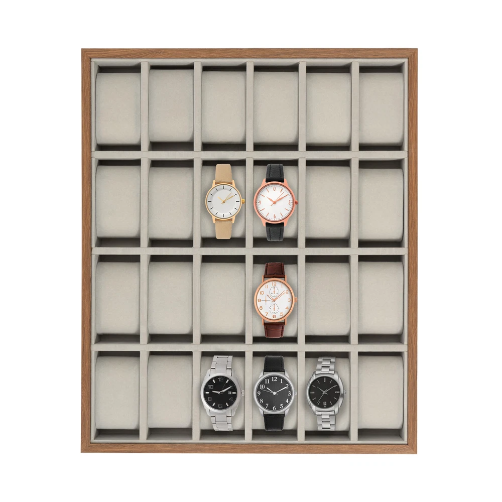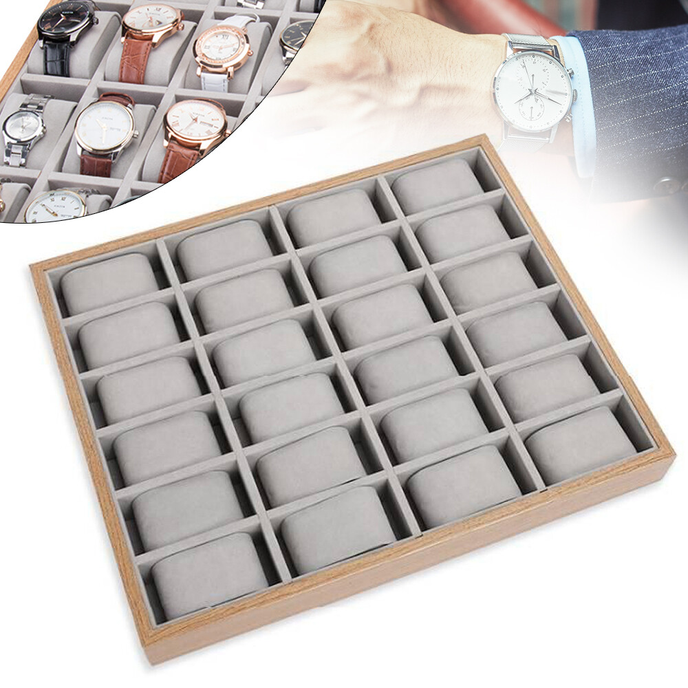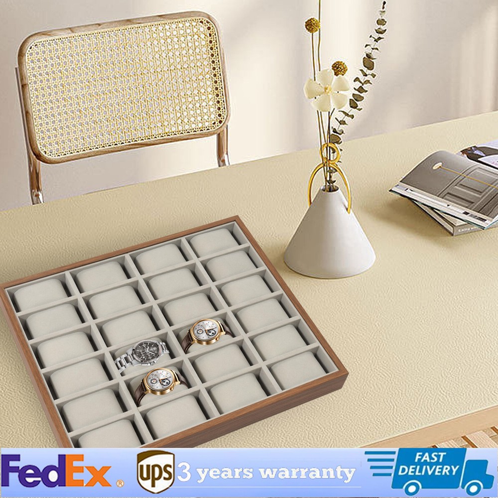 Features: Made of wooden watch display tray with exquisite workmanship. Tastefully protects, stores, and organizes your watches,bracelet. Best for displaying your watches whatever in a shop or on your dressing table. 24 Slots Wood Watch Box Jewelry Storage Case Organizer Display Box Holder Tray Welcom to ristarstore! Description Watches are a symbol of your aesthetics an d a manifestation of punc tuality, and those who love them can provide them with a better storage bo x. Our 24-compartment wooden w atch box can safely store and aesthetically display your favorite timepieces, helping maintain their original state without scratches or hiding them somewhere when you are not wearing them. Key Features Exquisite Display Cabinet: The rectangular frame with walnut grain and the light gray lining make this box appear natural, exquisite, and elegant, which can set off your watch well. It can not only free your watches from the fate of being forgotten in the drawer, but also be a beautiful decoration on your dressing table. High-end Material: It uses sturdy density boards as the frame to ensure stability, and the soft flannelette lining can effectively protect your watch and other accessories from damage. 24 Compartments: The 24 compartments, each of 3.54 * 1.77 inches in size, can accommodate most sizes of watches while keeping them orderly, which saves you space and gives you a neat makeup desktop. Detachable Pillows: These watch pillows can comfortably lift the watch to prevent collision with the watch case. They can be removed to make room for other accessories, such as cufflinks, earrings, and bracelets. Semi-open Design: Its semi-open design provides you with a wide field of view to find the watch you want with just a glance. If you have a solar watch, it can also absorb solar power in the box. It can clearly and elegantly display your watch, making it convenient for you to choose a watch that matches your clothing. Easy to Clean: The density board with the veneer is not easily stained with dust or water stains. If necessary, you can wipe it with a towel or blow away the dust with a hair dryer to make it look new. Ideal Gift: This beautiful and practical watch box is an ideal gift to your husband, dad, mother, wife, friends, and colleagues for Father's Day, Birthday, Valentine's Day, Wedding, Christmas, New Year, etc. Protective Package: To prevent the product from being damaged during transportation, we packed it in a bubble bag to protect your product to the maximum extent possible. Details Anti-scratch Pad: The padded bottom protects the box and desktop from scratches and reduces noise when moving the box. Smooth Frame: The delicate material and exquisite veneer treatment make its frame very smooth, without any burrs, optimizing your sense of use. Application It is ideal for personal use, store displays, and home decor. You can place it in your closet, dressing table, storage display window, etc. to store your watches, jewelry, and other valuables. Specifications Color: Grey, Walnutcolor Style: Elegant Shape: Rectangle Finish: Veneer Technology Target Audience: Women, Men Material: Density Board, Flannelette Recommended Uses For Product: Bracelet, Watch, Earring Mounting Type: Table Top Number of Items: 1 Number of Compartments: 24 Each Compartment Size(L*W) : 9*4.5cm/3.54*1.77in Each Cushion Size:7.2*4.5*3.2cm/2.83*1.77*1.25in Product Size: 40*33*4.5cm/15.75*12.99*1.77in Package Size: 33*40*5cm/12.99*15.75*1.97in Gross Weight: 1.78kg/3.9lbs Package Included 1* 24-Compartment Watch Box 24* Removable Watch Pillows Notes Please allow the slight color difference caused by the shooting light and 1-3cm error due to manual measurement, and make sure you do not mind before you order. DESCRIPTION 6234 Payment Delivery details Terms of sales About us Contact us Payment We accept ebay payment 。 Fees such as import duties, taxes are not included in the item price or shipping costs. These charges are the buyer's responsibility. Delivery details Shipping: 2-9 working days to: USA Terms of sales We maintain high standards of excellence and strive for hundred percent customer satisfaction. Feedback is very important to us. We hope that you contact us immediately before you give neutral or negative feedback, so that we can address your concerns. It is impossible to address issues if we do not know about them! About us Your satis faction is our ultimate goal. We work hard to earn your trust and future business. Our certified technicians have tested each item before shipping. The unit comes with 1 year limited warranty on all manufacturing defects. a) If you receive a defective item, you may return it or ask for a discount. Please contact us within 14 days after you receive the package. b) What you returned must be intact and in its original packaging as re? u. Customer is responsible for shipping costs of the returned item. c) We will cover the cost of shipping back t with the shipping rate indicated in the registration page. We will send you a new unit or refund the full payment you paid. Thank you. Contact us Business Hour Business Hour: Monday To Friday: 8:30 AM to 5:00 PM (Beijing China time) Due to time zones, our reply to your questions may not be immediately. But within above working time, we will reply your email within 24 hours. If it's non-workdays, please kindly be patient and wait till Monday. Please contact us with ebay message. Please feel free to contact us if you have any questions. Monday To Friday: 8:30 AM to 5:00 PM (Beijing China time) Due to time zones, our reply to your questions may not be immediately. But within above working time, we will reply your email within 24 hours. If it's non-workdays, please kindly be patient and wait till Monday. Please contact us with ebay message. Please feel free to contact us if you have any questions. Brand TBvechi Country/Region of Manufacture Unknown Color As Pictures Showing Type Watch Tray MPN Does not apply Material Wood Capacity More than 