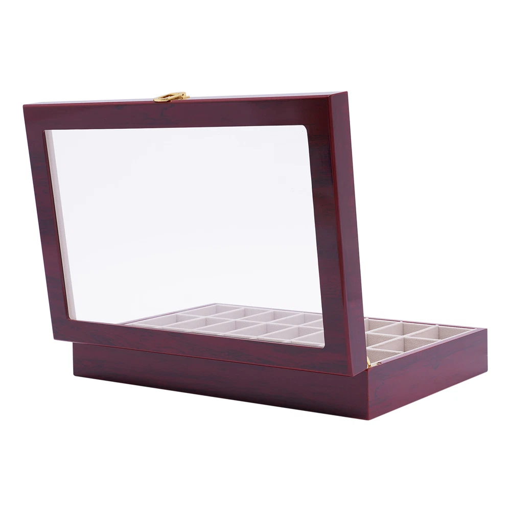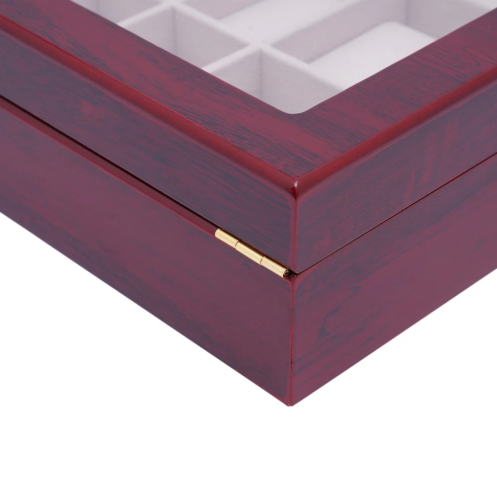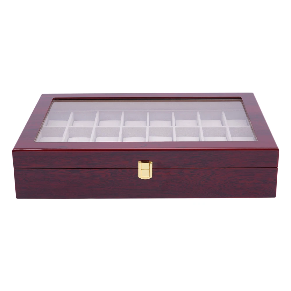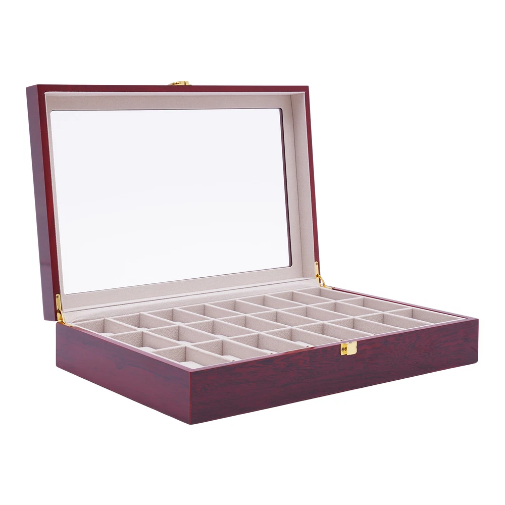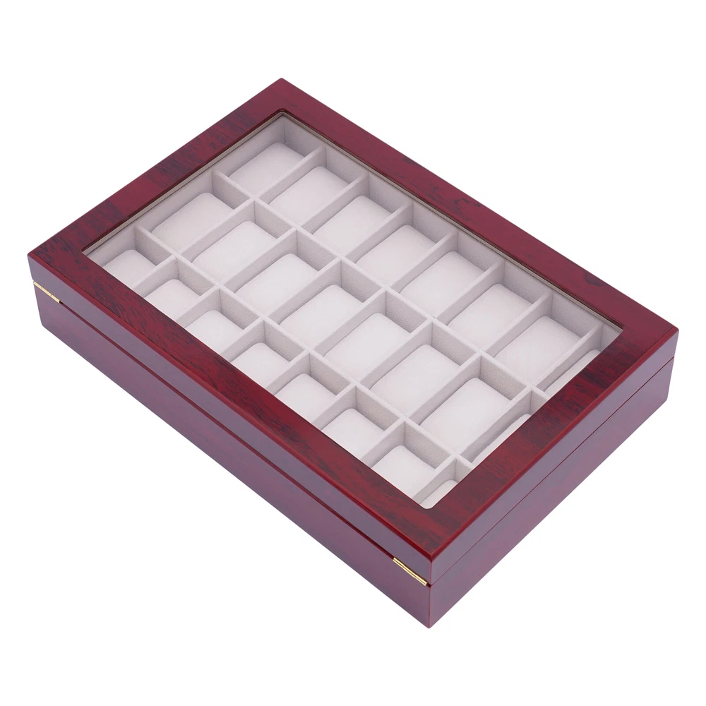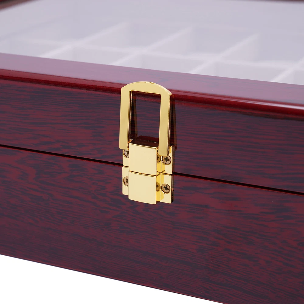 Love this watch box! The sleek wooden design with glass top looks elegant on my dresser. Fits all 24 of my watches securely with soft flannelette lining—no scratches! The lock keeps them safe, and the quality feels premium. Super fast shipping too—highly recommend for any watch collector!