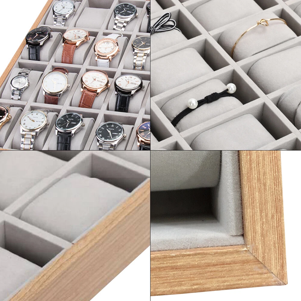 24 Slots Watch Display Box Wooden Jewelry Storage Case Organizer Tray Retail New Specification: Material:Wooden+Flannel 24 Slots: Length:33cm/12.9" Width:39.8cm/15.7" Height:4.5cm/1.8" [Conversion: 1cm=0.3937 inch, 1 inch=2.54 cm] Features: Made of wooden watch display tray with exquisite workmanship. Tastefully protects, stores, and organizes your watches,bracelet. Best for displaying your watches whatever in a shop or on your dressing table. Package Included: 1 x Watch Display Tray(Watch not included) Payment Delivery details Terms of sales About us Contact us Payment We accept ebay payment 。 Fees such as import duties, taxes are not included in the item price or shipping costs. These charges are the buyer's responsibility. Delivery details Shipping: 2-9 working days to: USA Terms of sales We maintain high standards of excellence and strive for hundred percent customer satisfaction. Feedback is very important to us. We hope that you contact us immediately before you give neutral or negative feedback, so that we can address your concerns. It is impossible to address issues if we do not know about them! About us Your satis faction is our ultimate goal. We work hard to earn your trust and future business. Our certified technicians have tested each item before shipping. The unit comes with 1 year limited warranty on all manufacturing defects. a) If you receive a defective item, you may return it or ask for a discount. Please contact us within 14 days after you receive the package. b) What you returned must be intact and in its original packaging as re? u. Customer is responsible for shipping costs of the returned item. c) We will cover the cost of shipping back t with the shipping rate indicated in the registration page. We will send you a new unit or refund the full payment you paid. Thank you. Contact us Business Hour Business Hour: Monday To Friday: 8:30 AM to 5:00 PM (Beijing China time) Due to time zones, our reply to your questions may not be immediately. But within above working time, we will reply your email within 24 hours. If it's non-workdays, please kindly be patient and wait till Monday. Please contact us with ebay message. Please feel free to contact us if you have any questions. Monday To Friday: 8:30 AM to 5:00 PM (Beijing China time) Due to time zones, our reply to your questions may not be immediately. But within above working time, we will reply your email within 24 hours. If it's non-workdays, please kindly be patient and wait till Monday. Please contact us with ebay message. Please feel free to contact us if you have any questions. Features Fast shipping from local warehouse!!! Tip If you have any question , please contact us Color Wood color Brand unbranded Type Watch Tray Capacity More than 12 Watches (30 Slots) MPN does not apply Conversion 1cm=0.3937 inch, 1 inch=2.54 cm Material Wood Vintage Yes