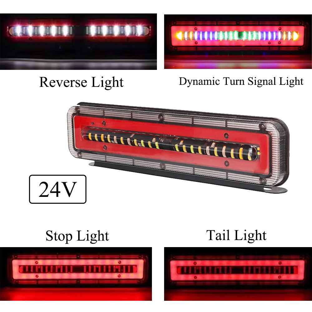 Features: 【Multifunction design】Includes stop, tail, indicator, reverse lights as well as a dynamic turn signal light, the rear taillight offers multiple functionalities in single unit that is competent for different circumstances. 【Super bright LED lights】The LED rear taillight features super bright LEDs per light, providing excellent visibility and safety. 【Heavy-duty construction】Updated heavy-duty,waterproof whole-body structure designed for longer-lasting performance. 【Wide voltage range】Operates on a 24V power supply, ensuring compatibility with various vehicles while it is of low power consumption. 【Universal fit】This LED tail light is compatible with trailers, trucks, UTEs, 4WDs, caravans. Specifications: Product Name: LED Rear Tail Light Material: ABS and LED Light Color: Red, White, Amber and Multi-colors as Turn Signal Light Voltage: DC 24V Product Dimensions: 30cm / 11.81 Inches Fitment: Compatible with Trailers, Trucks, UTEs, 4WDs, Caravans Package Included: 2 x LED Tail Lights