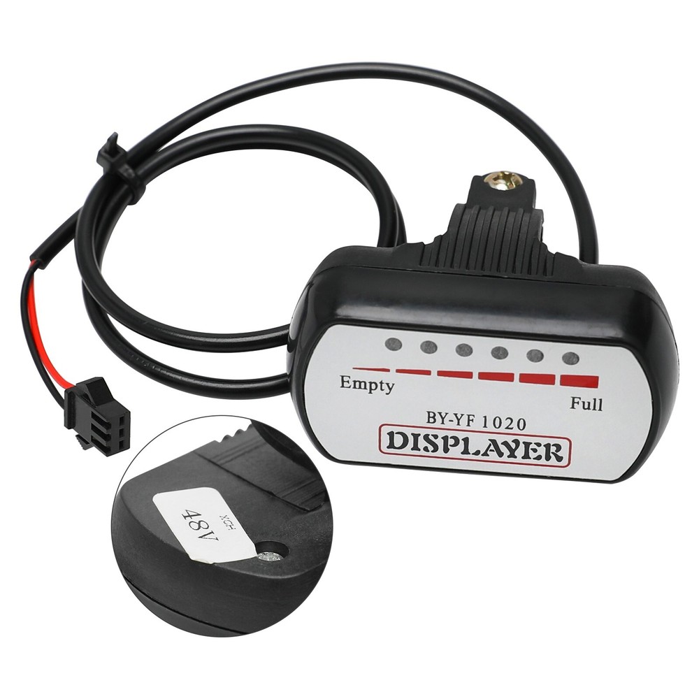 Product Specification: Product Type:Display Battery Meter Condition:100% Brand New Main Color: Black Material:Plastic Voltage:24V/36V/48V Rated Working Current : 10ma The Maximum Working Current : 30m A Off-State Leakage Current : <1μ A Working Temperature:-20℃~ 60℃ Storage Temperature : -30℃~ 70℃ Length : 68mm /2.68 " Width : 39mm /1.54 " Mounting : Handle (No Screw Included) Connection:There are 2 wires coming out of the device Red + BATT : Connect to battery PLUS.However , it is best to connect this wire to the ignition switch circuit so that the device starts up together with the controller after switching the key / button Black GND : Connect to the battery MINUS.CAUTION . If you have a BMS - you have to connect the cable to GND somewhere between the BMS and the controller , not between the BMS and the battery. Features: v Battery level indicator . It is based on SOC measurement , i.e . battery voltage measurement. v The device is mounted on the steering wheel with a handlebar. Packing List: 1 * Display Battery Meter Note: ü Please check these picture s and the size specifications for compatibility before purchasing . Also,please be aware that if an item doesn't fit due to a failure in pre-purchase checking, we are not be able to take responsibility for the return shipping cost. Model is just for reference , not definitely correct. Any question s ,welcome to contact us . ü If you have any problems with the received items, we kindly request that you reach out to us directly before considering leaving a neutral or negative feedback. We will strive to provide you with the best service. Thank you for your understanding and cooperation.Sincerely.