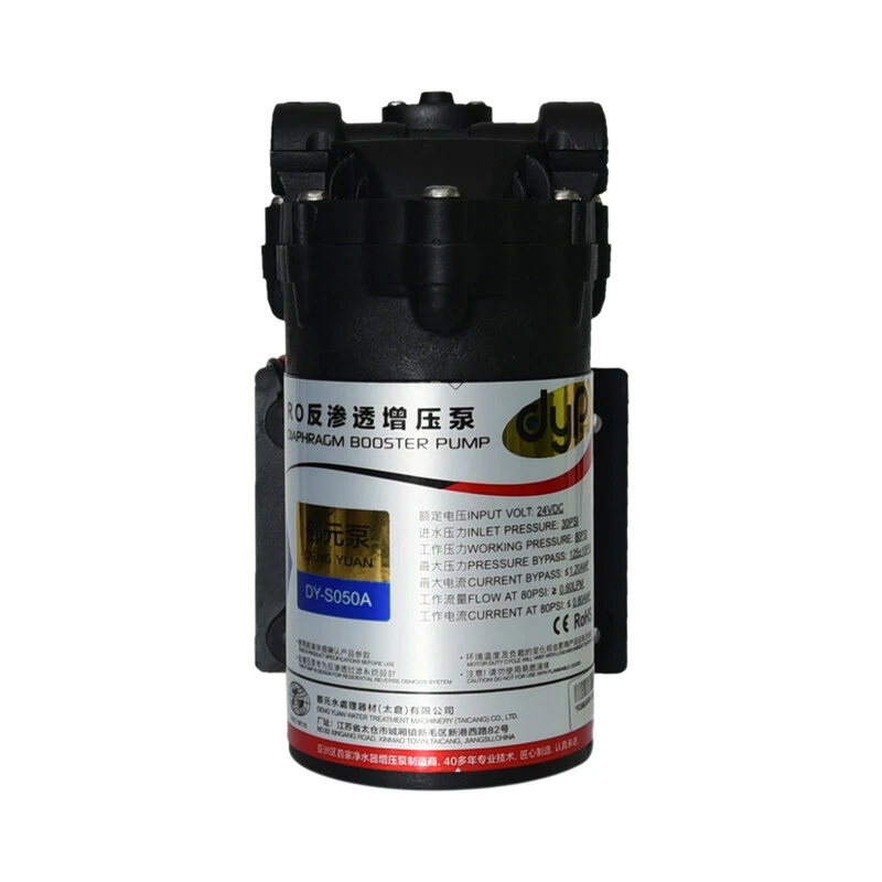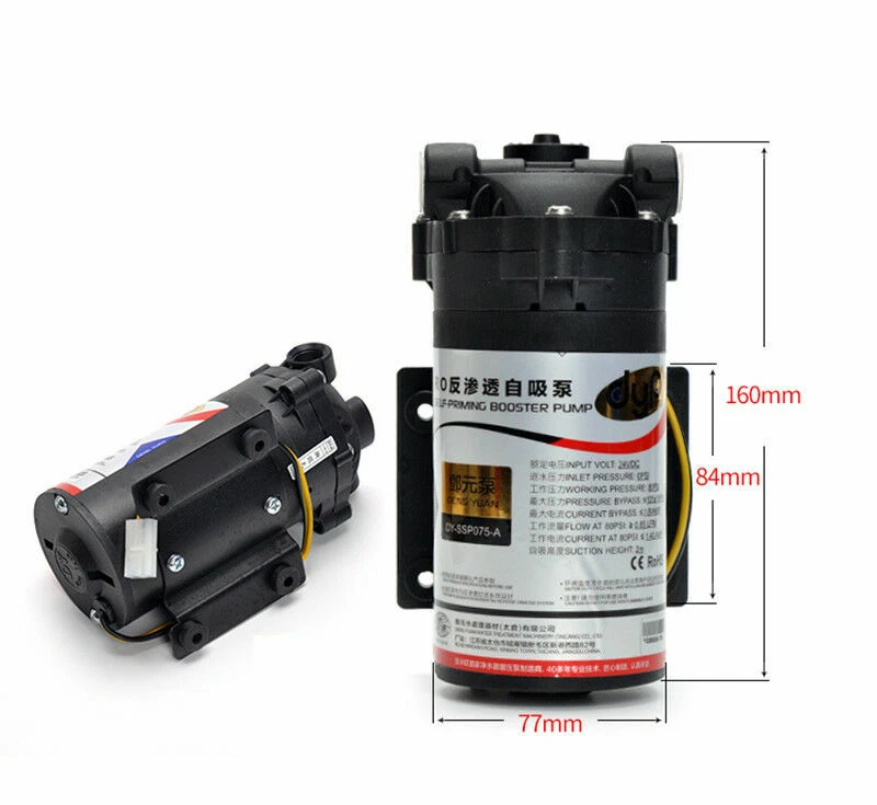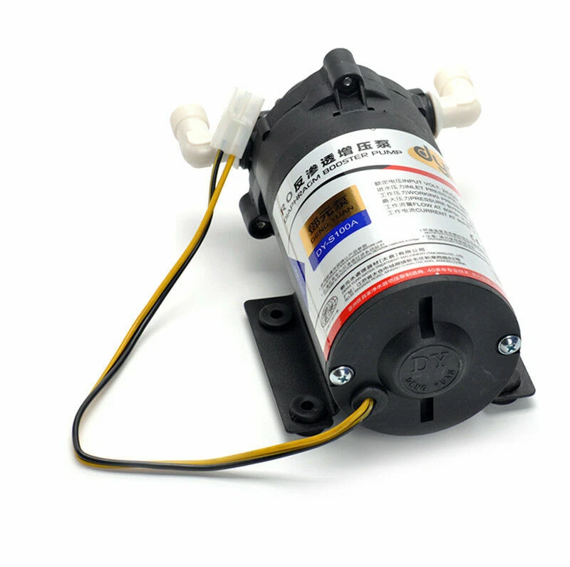 24V Water Purifier Diaphragm Pump RO Booster Pump 50G 75G 100G 400G Product Description: Specification: Product Name: Water Purifier Booster Pump Rated voltage: DC 24V Inlet pressure: 30PSI Working pressure: 60PSI Working flow: 0.6/0.8/1.0/2.5L/min Weight: 1.5-2.2KG Note: If you need an adapter pls purchase it separately.