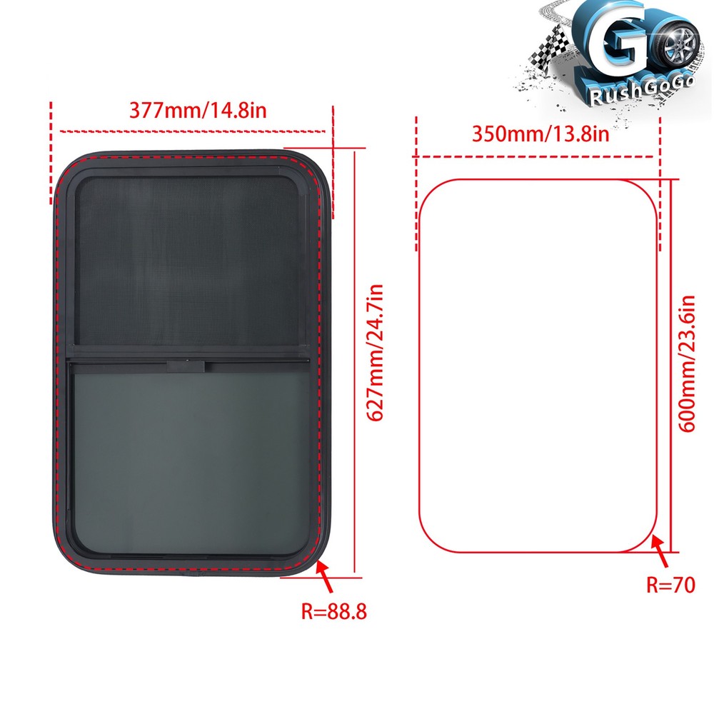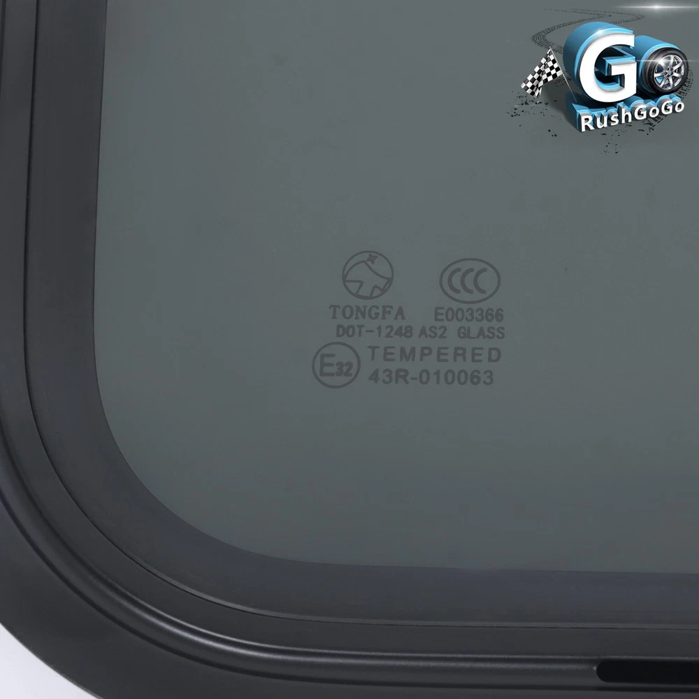 Manufacturer Part Number: AS743375MM Size: 24"W × 15"H Lock: Plastic lock, more impact resistant Wall thickness: 30 mm Certification: DOT and E-mark certification Brand: auto-summer Country of Origin: China Glass: 4MM Tempered glass UPC: Does not apply Part Type: Windows gtin13: Does not apply Dewatering hole: Yes Warranty: 1 Year Material: Aluminium alloy profile window frame,Glass fibre Installation: Self-tapping screws clamp wall fixed installation