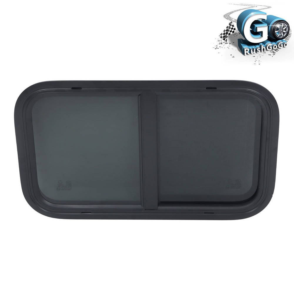 24"W × 15"H RV Camper Window w/Black Trim Ring w/Plastic Lock Horizontal Sliding