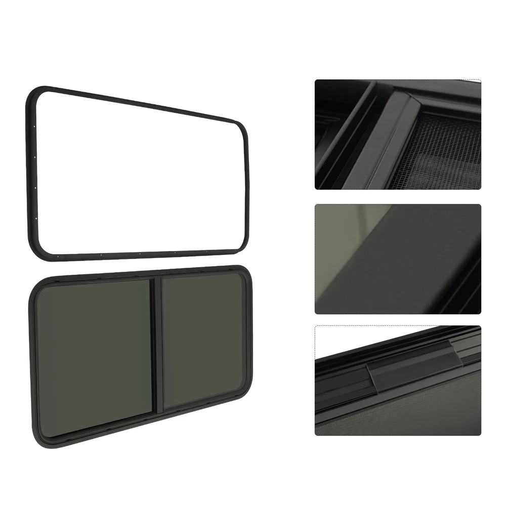 Fits (As a Reference) For Universal RV with Sheet Metal thickness of 2-6mm/0.08- 0.24inch or 48-55mm/1.89-2.17inch Package Included 1 x RV Window 1 x Mounting Trim Ring 24"X 20" Universal RV Window Horizontal Privacy Sliding Window w/Trim Ring Black 24"X 20" Universal RV Window Horizontal Privacy Sliding Window w/Trim Ring Black Specifications Applicable Models: Universal RV with Sheet Metal thickness of 2-6mm/0.08- 0.24inch or 48-55mm/1.89-2.17inch Condition: New Material: Aluminum Alloy , Tempered Black Glass Color: Black Shape: Rectangular Installation Position: Both Sides of the RV Way of Use: Direct Replacement Assembly Method: Closed Surface Treatment: Plastic and Powder Spray Number of Drainage: 8 Glass Transmittance: 20% Gross Weight: 5.5kg/12.13lbs Net Weight: 5.22kg/11.51lbs Packing Size: 70*59*9cm/27.56*23.23*3.54inch Product Size:64.36*54.16cm/25.34*21.32inch Product Size without Fixed Ring: 61*50.8cm/24*20inch Removable Window Size: 30.5*50.8cm/12*20inch Length of Center Column: 51.68cm/20.35inch Drainage Groove Size: 4*20mm/0.16*0.79inch Distance from Drain Gutter to Center Column: 7cm/2.76inch Key Features Anti-mosquito and Breathable: This RV window is equipped with a screen window, and the holes of the screen window are very fine. This screen prevents mosquitoes from flying in when you want to open the window for ventilation. High Privacy: This window is made of tempered black glass. After installation, the environment inside the RV cannot be clearly seen from the outside, so your privacy can be well protected when you are resting. It also comes with a fixed lock that locks the window when it is closed for your safety. Sturdy and Durable: The windows are made of high-quality aluminum alloy, which has high strength and is very strong. The metal surface is treated with plastic spray and powder, which is anti-corrosion and durable. Attractive Appearance: The black frame and tinted glass with rounded corners give your vehicle a stylish and modern look. Wide Applications: This window is universals, they can be installed anywhere you need to fill holes, as long as your RV sheet metal thickness is between 2-6mm/0.08- 0.24inch or 48-55mm/1.89-2.17inch Highlights Brand New, With High Quality Gutter Design Waterproof and Dustproof , Anti-aging Tempered Black Glass, Ultraviolet-proof Horizontal Sliding Windows Quick and Easy Installation Aluminum Alloy, Sturdy and Durable Universal Window, Direct-fit Replacement Fine Workmanship Long Service Life Notes We strongly recommend professional installation. Please contact us if you have any questions. Please allow the slight color difference caused by the shooting light and 1-3cm error due to manual measurement, and make sure you do not mind before you place the order. Fits (As a Reference) For Universal RV with Sheet Metal thickness of 2-6mm/0.08- 0.24inch or 48-55mm/1.89-2.17inch Package Included 1 x RV Window 1 x Mounting Trim Ring Payment Delivery details Terms of sales About us Contact us Payment We accept ebay payment 。 Fees such as import duties, taxes are not included in the item price or shipping costs. These charges are the buyer's responsibility. Delivery details Shipping: 2-9 working days to: USA Terms of sales We maintain high standards of excellence and strive for hundred percent customer satisfaction. Feedback is very important to us. We hope that you contact us immediately before you give neutral or negative feedback, so that we can address your concerns. It is impossible to address issues if we do not know about them! About us Your satis faction is our ultimate goal. We work hard to earn your trust and future business. Our certified technicians have tested each item before shipping. The unit comes with 1 year limited warranty on all manufacturing defects. a) If you receive a defective item, you may return it or ask for a discount. Please contact us within 14 days after you receive the package. b) What you returned must be intact and in its original packaging as re? u. Customer is responsible for shipping costs of the returned item. c) We will cover the cost of shipping back t with the shipping rate indicated in the registration page. We will send you a new unit or refund the full payment you paid. Thank you. Contact us Business Hour Business Hour: Monday To Friday: 8:30 AM to 5:00 PM (Beijing China time) Due to time zones, our reply to your questions may not be immediately. But within above working time, we will reply your email within 24 hours. If it's non-workdays, please kindly be patient and wait till Monday. Please contact us with ebay message. Please feel free to contact us if you have any questions. Monday To Friday: 8:30 AM to 5:00 PM (Beijing China time) Due to time zones, our reply to your questions may not be immediately. But within above working time, we will reply your email within 24 hours. If it's non-workdays, please kindly be patient and wait till Monday. Please contact us with ebay message. Please feel free to contact us if you have any questions. On Feb 23, 2025 at 19:13:07 PST, seller added the following information: