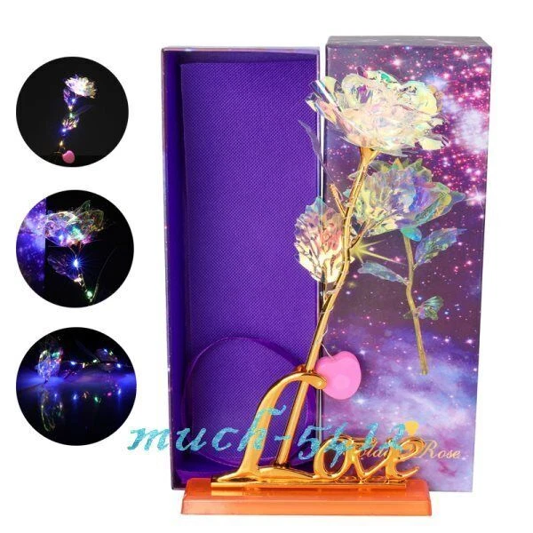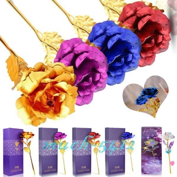 Foil Dipped Rose 24k Gold Rose Portable Gold Dipped Rose Artificial Rose Flower The item is a simple and elegant romantic long stem rose flower, which is mainly made of durable gold foil, never wither and never fade, and it is perfect to represent a longing for a pure and enduring love. Therefore, it is really a wonderful Valentine's gift or wedding favor to express the sincerest love to your lover 🌹Red Rose Whisper🌹 -- Love, Passion, Beautiful love. 🌹Golden Rose Whisper🌹-- Noble, Beautiful, Apologetic. 🌹Red and Golden Rose Whisper🌹-- Happiness. 🌹Blue Rose Whisper🌹-- Miracles, Pure, impossible. 🌹Purple Rose Whisper🌹-- Deep Love, Mysterious and Noble. #8902-8903-8904-3938 24K GOLD FOIL ROSE: 🌹24K Gold Dipped Rose Flower-- Petal and leaf are made of plastic with thin 24K gold foil plated, the flower rod is made of Polyethylene with gold plated. Come with a gift box and packaging, ideal present for any festival and someone you care about. 🌹Gold Dipped Rose In Full Bloom-- Outlast a bouquet of fresh blooms, never faded flower means everlasting love and friendship and family affection. 🌹Rose Whisper-- Roses are the universal language of love. The rose is a combination of love and beauty, the embodiment of the god of beauty and the blood of the god of love. 🌹Perfect Gift-- Come with a gift box, best gift for Valentine's Day, Mother's Day, Thanksgiving' Day, Birthday, Christmas, for lover and friends. Specification: Color: Gold/Red/Blue/Purple Material: Durable gold foil. Total length: approx. 25cm Leaf length: approx. 5cm Flower diameter: approx. 8cm Flower bud diameter: approx. 6cm Elegant romantic long stem rose flower, never wither and never fade. Perfect to represent a longing for a pure and enduring love. Especially suitable for you to express the sincerest love to your lover on Valentine's Day, Tanabata festival or wedding party. (note: the product internal skeleton is of polyethylene plastic material, which is very light, not metal) Package Includes: 1 x Dipped Foil Gold Plated Rose 1 x Gift Box #8901 ROSE WITH LED AND STAND: 1.100% brand new and high quality! 2. Valentine's Day, Mother's Day, the best gift for Christmas. 3. Rose has always been a symbol of beauty, love and appreciation. 4. 99% gold foil leaves, peduncle with polyethylene 24K gold plating. 5. Gift package, well and safe. 6. A perfect gift for your spouse wife girlfriend to show your sincere love. A best gift for your mom to say" Thank you" and "You're loved always." Great gifts for anniversary, birthday, Christmas, Valentine's Day, Mother's Day, wedding. 9. Weight:8.94g Note: Due to different lighting and shooting conditions, the color of the image may differ from the actual product. Please refer to the actual product. Package include: 1*rose 1*box 1*love base Payment Delivery details Terms of sales About us Contact us Payment Payments: Paypal, Google Pay, Visa, Master Card, Amerian Express, Discover. Delivery details All items are shipped from US warehouse located at NJ . We ship to your eBay or Paypal address. Please make sure your eBay or Paypal address is correct before you pay. Terms of sales Free return About us Pls contact our customer service firstly if have any problems , we will help to solve the issue, and could offer free return service for full refund or free replacement after confirming. You can buy from us with confidence Contact us If have any problems, please feel free to contact us.