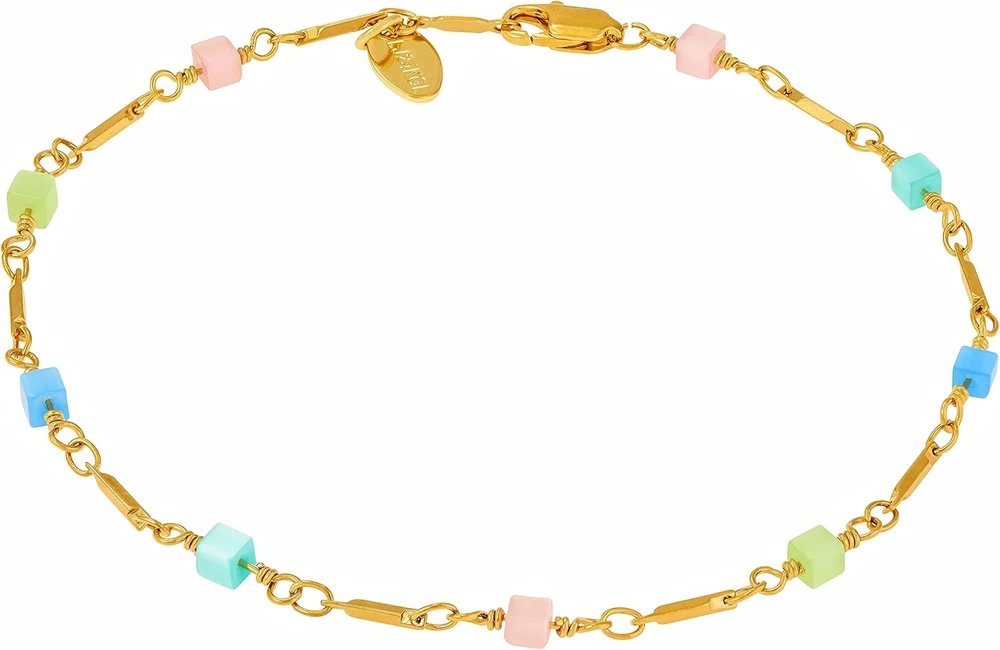 Womens Gold Anklet Colorful 24k Gold Plated Ankle Bracelet for men & women Product Description YOU CAN BUY EXPENSIVE SOLID GOLD JEWELRY , but would you wear it to the beach? Probably not, right? Wear our anklets anywhere, anytime! Easy to replace if lost or stolen. Wear them at a party or even high class formal occasions. Our customer once said, "Lifetime Jewelry is the next BEST thing to solid gold ". And we couldn't agree more! We are a family run small business, kicking it since 1987 We are real people who use our own products every day We expect the best for our families and want the same for yours We cut no corners in our products, and will cut no corners in our support to you Proudly made in the USA, since 1987 How to Care for Your Fine Fashion Jewelry Handle with Love : Treat your jewelry delicately to preserve its beauty. Gentle Cleaning : Use a soft, dry cloth for cleaning. Prior to this, remove any oils with a touch of alcohol or vinegar. Avoid Abrasives: Refrain from using abrasive substances, as they can potentially harm the gold plating, regardless of its thickness. Here's a fun fact: You can also clean your gold plated jewelry with beer! Simply submerge the piece in beer for a few minutes, rinse it off with running water, and then gently polish it with Lifetime Jewelry polishing cloth or a soft cloth. It's an unconventional but effective way to maintain your jewelry's luster. With the above steps, your beautiful jewelry will continue to sparkle and delight for years to come. Enjoy your precious pieces! Item model number 156 (balls) & 158 (cubes) anklet Style Colorful Cubes Metal stamp 24K Gem Type no gemstone Material Metal Metal gold plated base Model number Anklet 158 Length 11 inches Item Display Length 11.0 Inches Department womens Package Dimensions 3.5 x 3 x 0.59 inches Clasp Lobster Claw 3.0 inches x 3.5 inches x 0.59 inches. Shipping from the USA All of our products are shipped from the USA, ensuring quick delivery to your destination. Payment We offer the following payment methods: PayPal, credit card, bank transfer, and eBay's secure payment system. Free Shipping & Free Returns Shipping within the USA is FREE. Additionally, any return is absolutely free for you. Risk-Free Purchase You have the option to return an item within 30 days without any justification. We cover the return shipping costs! Fast Shipping We ship immediately upon receipt of payment. Generally, the package is delivered within 2-3 days in the USA. If it takes longer, we will contact you. Quality and Costs Made in Europe, USA, China No customs fees or additional charges Total satisfaction guarantee Invoice with declared VAT available upon request in .pdf format Feedback Your feedback is very important to us. After you pay for your purchase, you will automatically receive positive feedback from us.