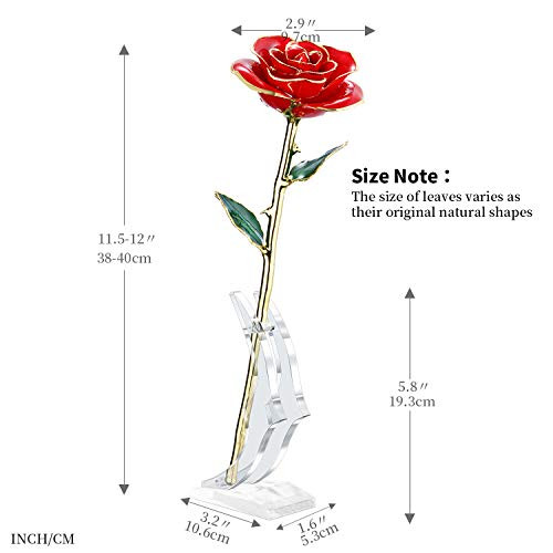 Batteries required: No Item Height: 1 gtin13: Does Not Apply Specific Uses For Product: Home Decor Seasons: All Included Components: 1 x 24k Gold Dipped Real Rose, 1 x Luxury Gift Box, 1 x Moon Stan Package Information: Box Item Package Quantity: 1 Type: Does Not Apply Manufacturer: Does Not Apply MPN: Does Not Apply Recommended Uses For Product: Decorative or gift for special occasions Number of Items: 1 Occasion: Mother's Day, Engagement, Wedding, Anniversary, Birthday, Valenti Container Shape: Box Container Material: Cardboard Item model number: m-gd1d-red Material: Real Rose & 24k Gold Dipped Item Width: 1 Item Length: 1 Unit Count: 1 Count EAN: Does Not Apply Item Weight: 1 Pounds Brand: Does Not Apply Special Feature: 24k Gold Dipped Real Rose Indoor Outdoor Usage: Indoor Color: Red UPC: 785104467965 Product Dimensions: 1.6"D x 3.2"W x 12"H