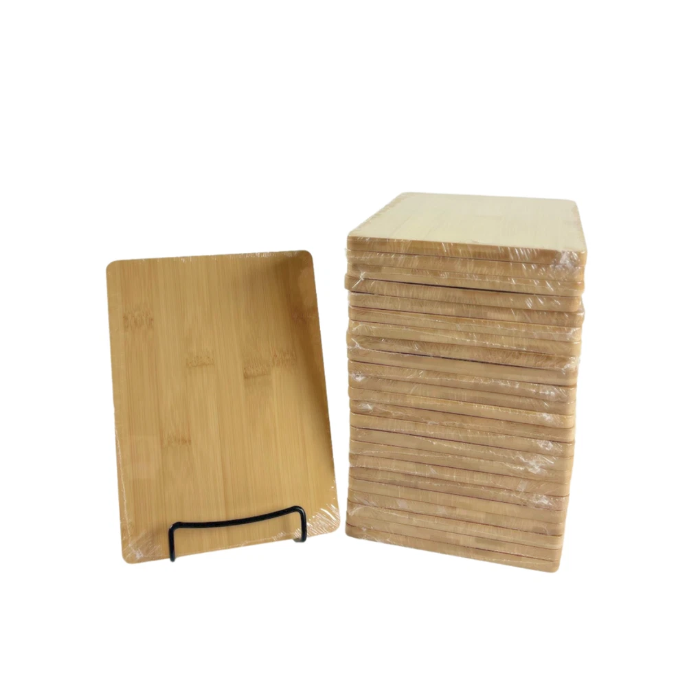 Plain Bamboo 8X6" cutting board / 0.35" thick Premium Bamboo Cheese Board measure approximately 8" x 6" x 0.35" - 24 Pieces 【 Creative Board 】 This 8x6 set includes 24 pieces without handles. The 8x6 bulk set is ideal for newcomers to engraving who want to gauge market interest. This sample set will greatly assist in fulfilling your business's needs. Unleash your creativity with our durable bamboo boards! 【 Bulk Value 】 Buying our blank bamboo boards in bulk will save you tons of money in the long run. The individual price of our bamboo boards is significantly lower than buying them individually, as we offer them at a discounted rate in bulk. Be kind to your wallet by purchasing our bamboo boards in bulk! 【 Easy to Handle 】 Our bamboo boards are crafted from renewable, natural bamboo of exceptional quality. Known for their sturdiness and porosity, akin to wood but with greater durability, these boards are effortless to clean and maintain. Unlike other options, they require minimal upkeep, with regular washing being sufficient. For extended longevity, a simple application of mineral oil post-use is recommended. 【 Versatile Board 】 This versatile mini board offers an individual surface area for serving a variety of foods such as cheese, bread, and fruit. Its reversible design allows for convenient use with different types of food. Crafted from bamboo, these cutting boards boast moisture resistance and exceptional durability. Moreover, they are gentle on knives, ensuring they stay sharp for longer periods. 【 Great Application 】 This adaptable chopping board is ideal for a multitude of uses, including laser engraving customization, corporate gifting, and food preparation. It's not just a practical tool; it's also a vessel for preserving family traditions. So as you use it for various purposes, remember to also cherish and preserve those cherished family recipes, especially those passed down from generation to generation.