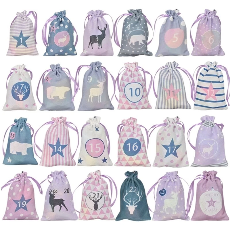 Features: brand new and high quality Designed with sophisticated and unique advent calendar bags will creat the festive mood, perfect for home decoration. With rope and clips, you can use the Christmas Advent Calendar Bags on the Christmas tree,wall,window. Easy to use, you can easily count down to Christmas by putting candy or gifts in their bags every day. Perfect for Christmas party decorations, such as Christmas gift bags, candy bags, goody bags. Christmas Advent Calendar Bags with drawstring, perfect decoration for Christmas. Specifications: Type: Advent Calendar Bags Material: Color: As picture shown Size:app. 10 x 15cm / 3.93 x 5.9in Quantity: 1set Package Includes: 24 x Advent Calendar Bags 24 x clips x Drawstring Rope x Hanging Rope note: 1cm=10mm=0.39inch No retail package. Please allow 1-2cm error due to manual measurement. pls make sure you do not mind before you bid. Due to the difference between different monitors, the picture may not reflect the actual color of the item. Thank you!