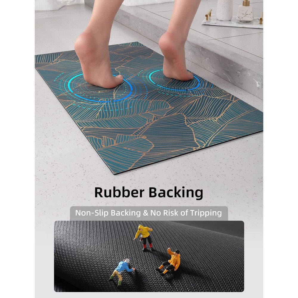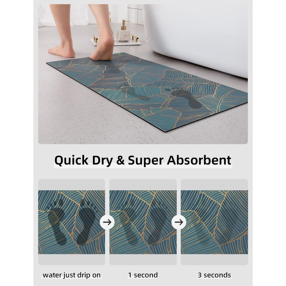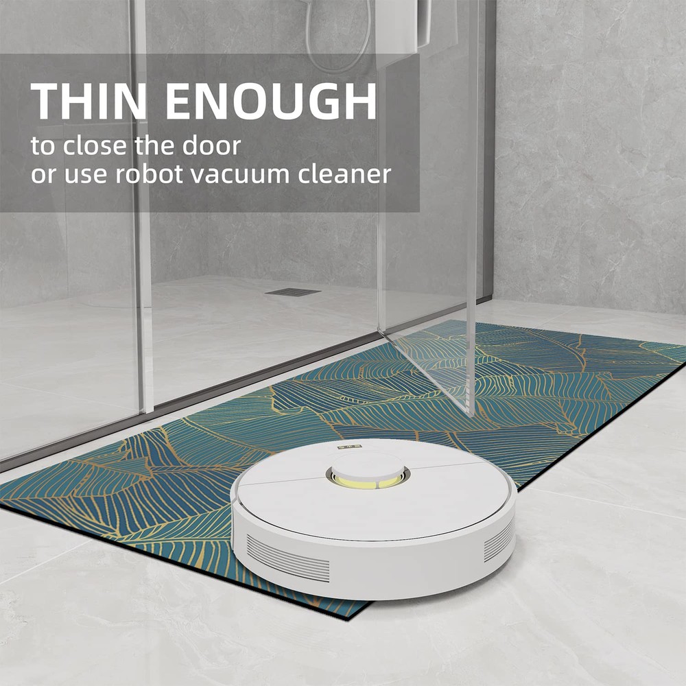 【Ultra Thin Bath Mat】This bathroom floor mats are designed with a suede fabric surface, which has a skin friendly touch and feels exceptionally comfortable to step on. The low-profile design makes it the perfect thin bathroom rug to fit under doors, thin bathroom mats minimize tripping hazards and are easy for doors or wheels to pass through. 【Strong Non-Slip】The bathroom rugs non slip are crafted from non-slip rubber back. It can grip on wet and smooth floor tightly and flatly without skidding or curling up, which have a strong adsorption and grip on dry and wet floor. Safety bath rugs for bathroom for kids and elders. 【Easy to Clean】Rubber bath mat can washed by flow water, you can just rinse it with shower nozzle or wipe with sponge, quick dry bath mat with a wet cloth then air dry, which saves time and effort. 【Durable & No Shedding】No microfibers, therefore you will never meet troubles caused by traditional microfiber bath mat like pilling, fading, shedding, and out of shape. The smooth surface designed to resist dirt and hair. You will never be bothered by fiber dropping or fuzzy pilling problems like traditional bathroom floor mats. 【Versatile Occasion】Low profile design make it a perfect thin bathroom rugs fit under door, the non slip bath mat perfectly made for bathroom shower, kitchen mat, bathroom runner rug, bathtub mat, sink mat. Innovative design and patterns can be matched with any decoration, which is very suitable for modern homes.