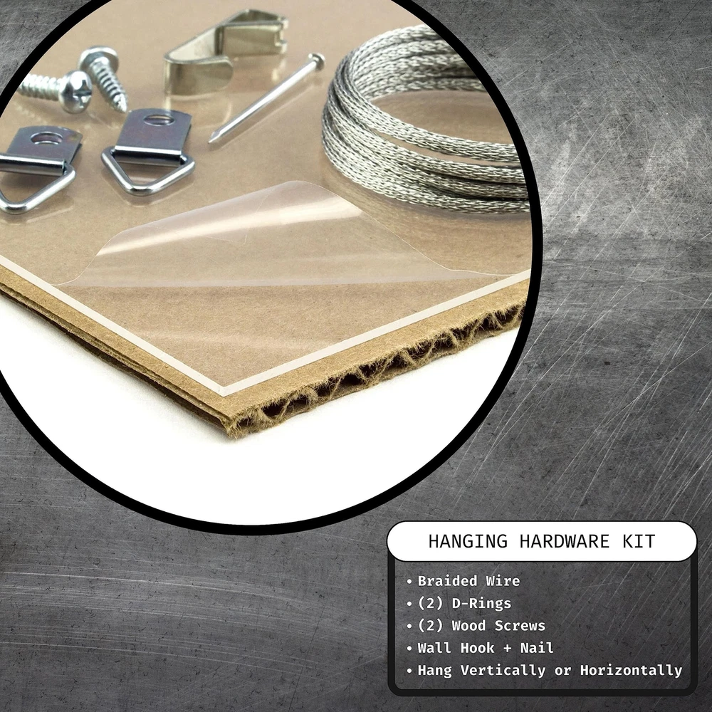 Victorian style; gold with ornate detail; painted finish Frame includes: clear acrylic facing, rigid cardboard backing and wire hanging hardware kit (some assembly required) Frame holds a 24 by 36 inch photo/print/poster (viewable area reduced by .25" on each side due to frame lip) Frame moulding is 1.375 inches wide; solid wood construction Frame is designed for WALL HANGING only (hanging hardware allows for portrait or landscape orientation)