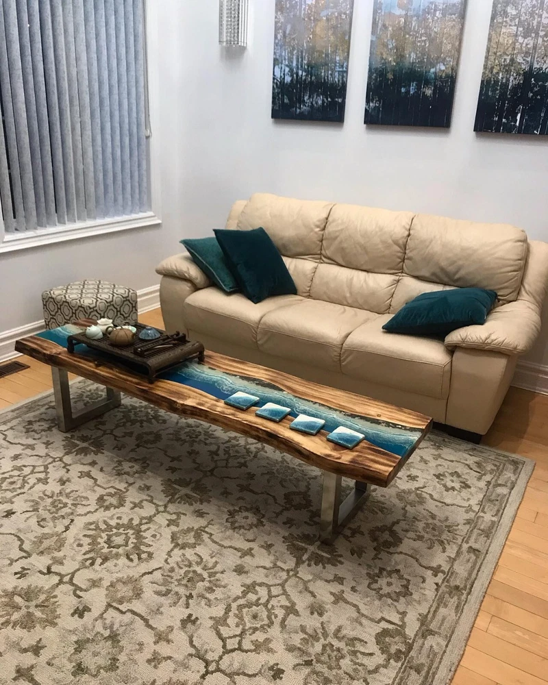 Welcome To Stone-Craft-Creations Shop Description Very unique Art by Indian Artist ,Coffee/Side Table top Used Material: Epoxy Resin Size: 48"x24" Inch Color: As Photo Shape: Rectangle Pattern: Handmade Room: Bedroom, Dining Room, Hallway, Home Office/Study, Kid’s Bedroom, Kitchen, Laundry/Utility Room, Living Room,Patio, Playroom Packaging: Wood & Foam Export Packing Shipping: Air Can be customize ,Please message your desired size Can be Customize, Please message your desired shape and size . Epoxy Color can also change as per buyer requirement. This is a Epoxy Resin Gaming or Trading Desk made with Walnut which is beautified with colored pigment . The resin river table is brand new and the contemporary design would be a unique addition to your home. With its perfect combination of style and function this piece of furniture is sure to be the star of any room. This modern table will also make for an awesome gift for your friends or relatives. Each one is created with high quality resin and individually handcrafted. Resin is a highly reflective medium which will catch anyone’s eye walking into the room. All tables are finished to the highest standard. The epoxy resin is very strong & durable with specialised UV resistance. The tables are delivered flat packed. Simply bolt the legs. This listing is for a custom Live edge Wooden Table. We have access to thousands of live edge slabs of domestic and exotic species that are imported from around the globe. We use only the highest quality of hardwoods and materials in our work, and believe only in perfection. Kindly Note: As raw wood is used in its natural form and shape to make the table, the table shown in the photos has already been purchased so actual product may vary from the picture shown. Kindly Note: Any accessories/Chairs and legs shown in picture NOT included in given prices. if you want legs then you are to pay spare money. Please contact me if you have any kind of query. Kindly Note: Please contact me if you have any kind of query.Buyers are liable for any customs and import taxes that may apply. I'm not liable for delays due to customs.