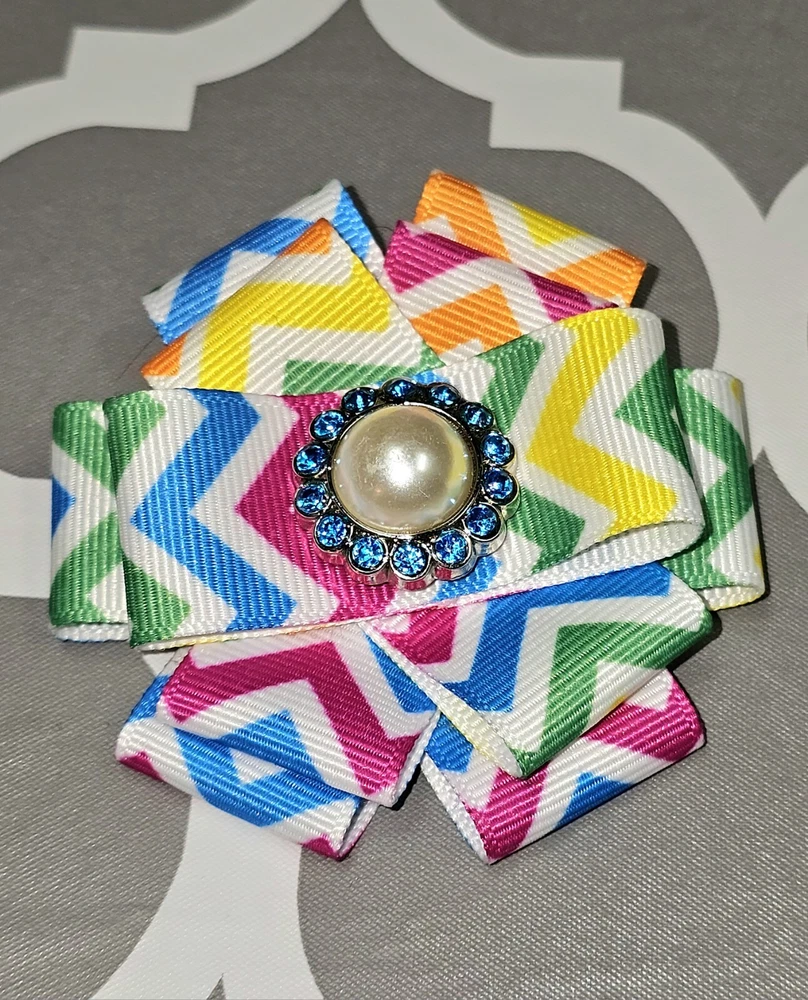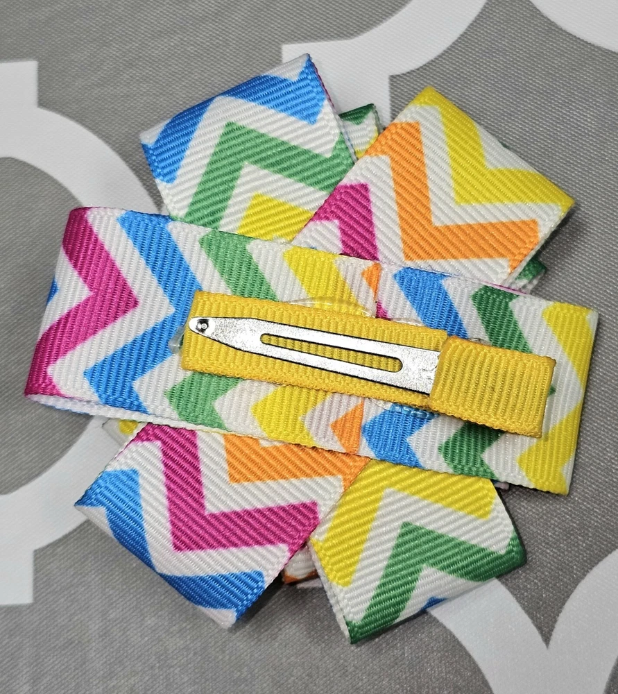 2.5" Gilr's Chevron Rainbow Ribbon Flower Hair Piece Girl's Hair Clip MultiColor