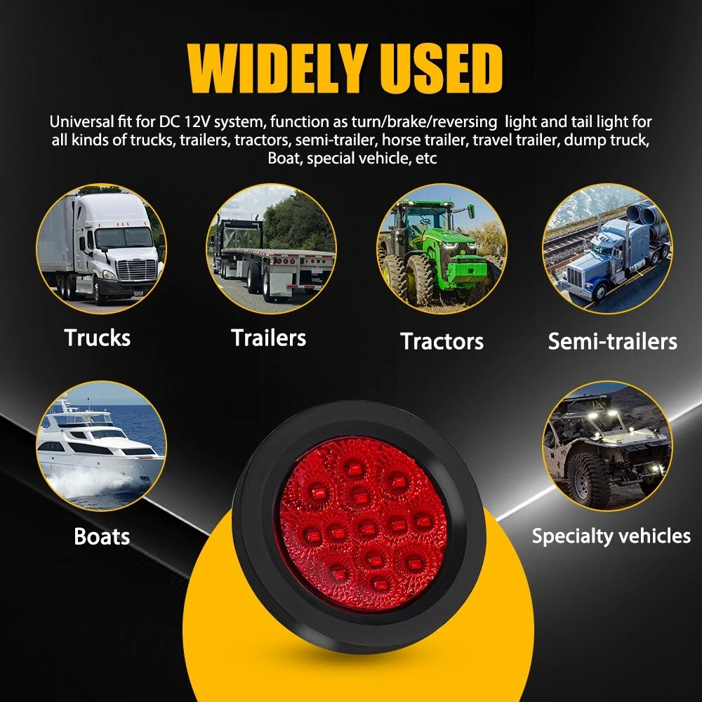 Fit for: Universally fit any vehicles with DC 12V-24V Such as Semi Truck & Trailer, Service Truck, Bus, Service Van, Utility Truck, Parade Float, Horse Trailer, Utility Trailer, Pick Up Truck, UTE, UTV. Specifications: Product Material: ABS+PC Lens Color: Red Light Color: Red Wiring Mode: White wire: Negative Black wire: Positive Voltage: 12-24V DC Connector Type: Pigtail Mounting Type: Flush-Mount Waterproof Grade: IP67 Lifespan: 50,000h+ Features: *High Brightness Each LED tail light is bright enough and energy-saving. *Superior Quality 2.5" Inch 4X DOT Round Red Trailer 13-LED Marker Lights w/ Grommet for Truck RV Fit for: Universally fit any vehicles with DC 12V-24V Such as Semi Truck & Trailer, Service Truck, Bus, Service Van, Utility Truck, Parade Float, Horse Trailer, Utility Trailer, Pick Up Truck, UTE, UTV. Specifications: Product Material: ABS+PC Lens Color: Red Light Color: Red Wiring Mode: White wire: Negative Black wire: Positive Voltage: 12-24V DC Connector Type: Pigtail Mounting Type: Flush-Mount Waterproof Grade: IP67 Lifespan: 50,000h+ Features: *High Brightness Each LED tail light is bright enough and energy-saving. *Superior Quality Made of high-quality material to ensure its low energy consumption, good waterproof and shock resistance. *Waterproof The tail light has an IP67 waterproof rate, which works even under extreme conditions such as rain and snow. *Wide Application This pair of LED tail lights can be used in any vehicle with DC 12V-24V, such as Semi Truck & Trailer, Service Truck, Bus, Service Van, Utility Truck, Parade Float, Horse Trailer, Utility Trailer, Pick Up Truck, UTE, UTV. *Warm Notice Please check the detailed information of the product carefully before purchasing. Packaging Include: 4 x 2.5" Round 13 LED Clearance Side Marker Light 4 x 2.5" Round Black Grommet 4 x 2-Pin 90° Plugs connector Item Specifics Brand : Unbranded Fitment Type : Direct Replacement Manufacturer Warranty : 1 Years Universal Fitment : No Type : Tail Light Assembly Features 1 : High Brightness Features 2 : Superior Quality Features 3 : Waterproof Features 4 : Wide Application Country/Region of Manufacture : China Packaging Include 1 : 4 x 2.5" Round 13 LED Clearance Side Marker Light Packaging Include 2 : 4 x 2.5" Round Black Grommet Packaging Include 3 : 4 x 2-Pin 90° Plugs connector Product Material : ABS PC Lens Color : Red Light Color : Red Wiring Mode White wire : Negative Wiring Mode Black wire : Positive Voltage : 12-24V DC Connector Type : Pigtail Mounting Type : Flush-Mount Waterproof Grade : IP67 Lifespan : 50,000h+ Lighting Technology : LED Payment (1) Instant PayPal payment is the preferred method of payment. (2) We also accept payment via PayPal, DebitCard, Visa, MasterCard, Discover. (3) We will only ship to the confirmed PayPal shipping address given with the payment. (4) If you want to ship to other address, please change your PayPal shipping address before you make payment. (5) To avoid initiating an unpaid item claim, please pay within 7 days. Shipping (1) We will ship your item(s) within 24 hours. (2) We ship this item to US usually via USPS first class mail. It usually takes 3-6 working days to deliver. Returns (1) We offer free return & money back guarantee. If you are not satisfied with your purchase for any reasons, you can return the item for refund or replacement/exchange. All returns must include the original packaging. (Please refer to our return policy for details.) (2) If you don't return goods within 60 days from date of purchase, your right to cancel will be revoked. Any items damaged because of incorrect installation will not be refunded. Please contact us for return or troubleshooting help prior to returning any products. (3) Unauthorized reselling of AUXITO products is strictly prohibited and we can't honor the warranty if purchasing from the unauthorized reseller. Contact Us [Our office hours are MONDAY - Saturday 9:00PM - 6:00PM PST, but we will response you once we get your message .There will be some delay on respons if you send message or E-Mail on Sundy.] (1).Negative feedback will not help resolve any problems you have, please contact us via eBay messages before leaving negative feedback, our customer service will make best effort to help you with the issues. (2).We maintain high standards of excellenceand strive for 100% customer satisfaction! Feedback is very important to us. We request that you contact us immediately BEFORE you give us neutral or negative feedback, so that we can satisfactorily address your concerns. FAQ Why swith to LED? LEDs not only give your vehicle a clean, modern look but, with proper use, will outlast any halogen bulb and HID bulb! Low energy draw, high lumen output, and instant on/off LED technology out shines stock bulbs in every way. Which bulbs are used in my vehicle? Check Sylvania automotive lamp replacemnt guide, you can select the year, make, and model of your vehicle, then select the application you want to replace or upgrade from stock. What does CAN Bus mean? CAN Bus means Controller Area Network Bus. This system monitors your vehicle and reports operating conditions. CAN Bus systems are commonly found in European vehicles such as BMW, Audi, Mercedes, Volkswagen, Porsche, and in many American vehicles. While most late model American vehicles have CAN Bus systems, it is always good to check with your vehicle dealer to see which system your vehicle has before purchasing electrical products. When do you need Warning Canceller? Some vehicles with cmplex internal computers(such as Audi,BMW,Jaguar,Mercedes,etc.) might report on-dash errors or flickering on the headlights. The warning canceller fixes the dashboard warning and flickering effect. Bulb Out Dashboard Error: On some vehicles, the dashboard will report as if you have a headlight bulb missing or burnt. It does not affect the headlights functioning, but the light on-dash will be on. The warning canceller fixes the issue. Flickering Issue: This hap