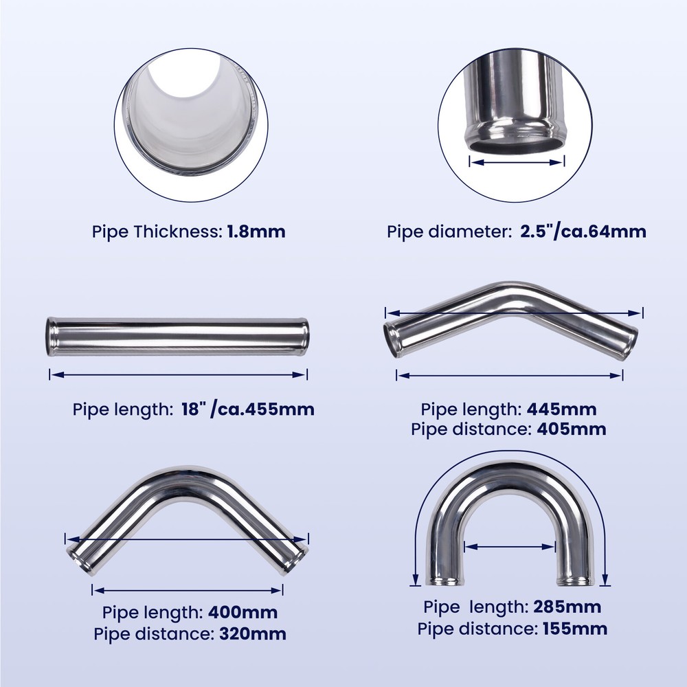 cmtat Home Contact us Promotion WHY CHOOSE US Most Competitive Price Manufacturer We know our products Easy Return Quick, Simple Guaranteed Fitment Always the correct part 2.5"Aluminum Universal Turbo Intercooler Pipe Piping Duct Kit w/Bolt Clamps Blue Fast Shipping International Shipping 30 Days Return Policy Secure Shopping DESCRIPTION Description: Pipe Thickness: 1.8mm--Durable quality size Pipe length: 18'' Application:Universal fits all Turbo Projects Made out of high quality of 6061 aluminum Manual polishing finished,and the bolt clip is easy to install Specification: Condition: New Type: Turbo Intercooler Pipe Fitment Type: Direct Replacement Material: 6061 Aluminum Manufacturer Warranty:2 Year Features: Anti-rust and Anti-preesure Easy to install and uninstall Have a longer service life Package Including: 2x 90 Degree Aluminum Pipe 2.5" 2x Straight Aluminum Pipe 2.5" 2x 135 Degree Aluminum Pipe×2 2.5" 2x U Aluminum Pipe×2 2.5" 6x Straight Silicone Hose 2.5" (Blue ) 2x 90 Degree Silicone Hose×2 2.5"(Blue ) 16x Clamps 2.5" (You will get exactly as shown in the picture above) Notice: * Professional installation is highly recommended (No Instruction Included) * For any needs please contact us. SHIPPING US Domestic Shipping Notice - All items will be dispatched within 24hrs(Mon-Fri) Our carrier collects all the parcels at 4:30am PDT, any payment paid after 5:00am PDT will be shipped the next day at 4:30am PDT. If you paid Item Shipped On Est.Delivery Time Before Apr. 1st at 4:30am Apr. 1st at 5:00am Apr. 5th - Apr. 7th After Apr. 1st at 4:30am Apr. 2nd at 5:00am Apr. 6th - Apr. 8th If our estimated delivery time and eBay’s are contradictory,please refer to the standard delivery time of ours. Estimated Delivery Time From To Service Est.Delivery Time US US UPS or Fedex Ground 3-5 Business days Outside of US DHL FedEx 4-7 Business days International Shipment For international shipment, we do not cover any import taxes or duties. Import tax is charged by the government, not us. Our item price and shipping cost do not include any import tax which will be charged by the shipping company when you got the parcel. Please be noted that is not the extra shipping fee. WARRANTY Free 2 Year Warranty: All SpeedingParts products have 2 year warranty (unless otherwise stated).In the very unlikely event that you have a problem with our product, please contact us via eBay messages. Easy Return: If you are unhappy with your purchase for any reason, you can return it to us in an un-used condition in the original packaging within 30 days of purchase and we'll give you a refund or exchange. The refund/Exchange will not include postage/eBay costs. Please note you MUST contact us to obtain a Return Authorization Number before returning any part. Any parcel without the Return Authorization Number will be rejected. If your item is faulty or was incorrect, you must contact our sales representative before returning the parcel and we will endeavour to solve the problem effectively. Video or picture is required to show the item condition before we issue the Return Authorization Number. Important notice: 1. Any returned item(s) without Return authorization number will be rejected. 2. Please return your item(s) in original packaging and ensure that all packages are securely wrapped 3. We will not accept responsibility for loss or damage of goods during transit, please ensure that the insurance cover option is taken where possible 4. Upon receipt, all products will be inspected at our discretion in 3-5 business days. Then, the updated result will be informed. If you have made a mistake on purchase and wish to cancel the order before it is dispatched please contact us by ebay message as quickly as possible. Note: All parcel will be collected by carrier at 8:00am on Monday to Friday. FAQ Will this fit my car? We have used the eBay compatibility list as a guide for buyers to use, but the eBay data system is not accurate and incomplete sometimes. Please make sure you have read through the whole listing and paid attention to “note” and “notice”. If there is any uncertain, please use the eBay message to check with our sales first. How much does delivery cost and how long will it take? You can check the delivery cost in the listing “Shipping and payments” section by selecting your country and entering your zip code. If it is not specified, please provide us your shipping address and zip code via eBay message. For US domestic shipping, the delivery time is around 2-3 business days. The international shipment delivery time is around 4-7 business days. What payment methods do you accept? We currently only accept payment via PayPal. You can also use PayPal as a guest and pay using a debit or credit card. When will my order be dispatched? We will arrange the shipment in 1 business day after the payment is cleared. The tracking number will be updated on eBay in 24 hours after the shipment. Please notice that there is no shipment during weekend and holidays. Can I amend my order? Sorry no. Once the payment is cleared, we cannot amend any item(s), quantities, or add or remove items. We are also unable to change the delivery address. Therefore, please double check all the order information before making payment. What do I do if I have not received my order? Please simply contact us via eBay messages, and then, we will get back to you as soon as possible with the update. Usually, we will follow up every shipment till customers get their order. What do I do if my product is faulty? Please simply contact us via eBay messages, and then, we will get back to you as soon as possible. It will speed up the process if you could provide us some pictures or video to illustrate the issue details. OTHER ITEMS YOU MIGHT ALSO LIKE OTHER ITEMS YOU MIGHT ALSO LIKE Universal Aluminum Turbo Intercooler 2.5" Inlet / Outlet & Pipe Hose Tube Kit Universal Turbo Intercooler 27" x 7" x 2.5" + 2.5" 64mm Turbo Pipe Kit Aluminum Turbo Intercool