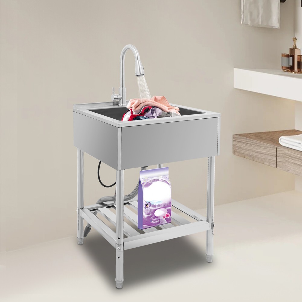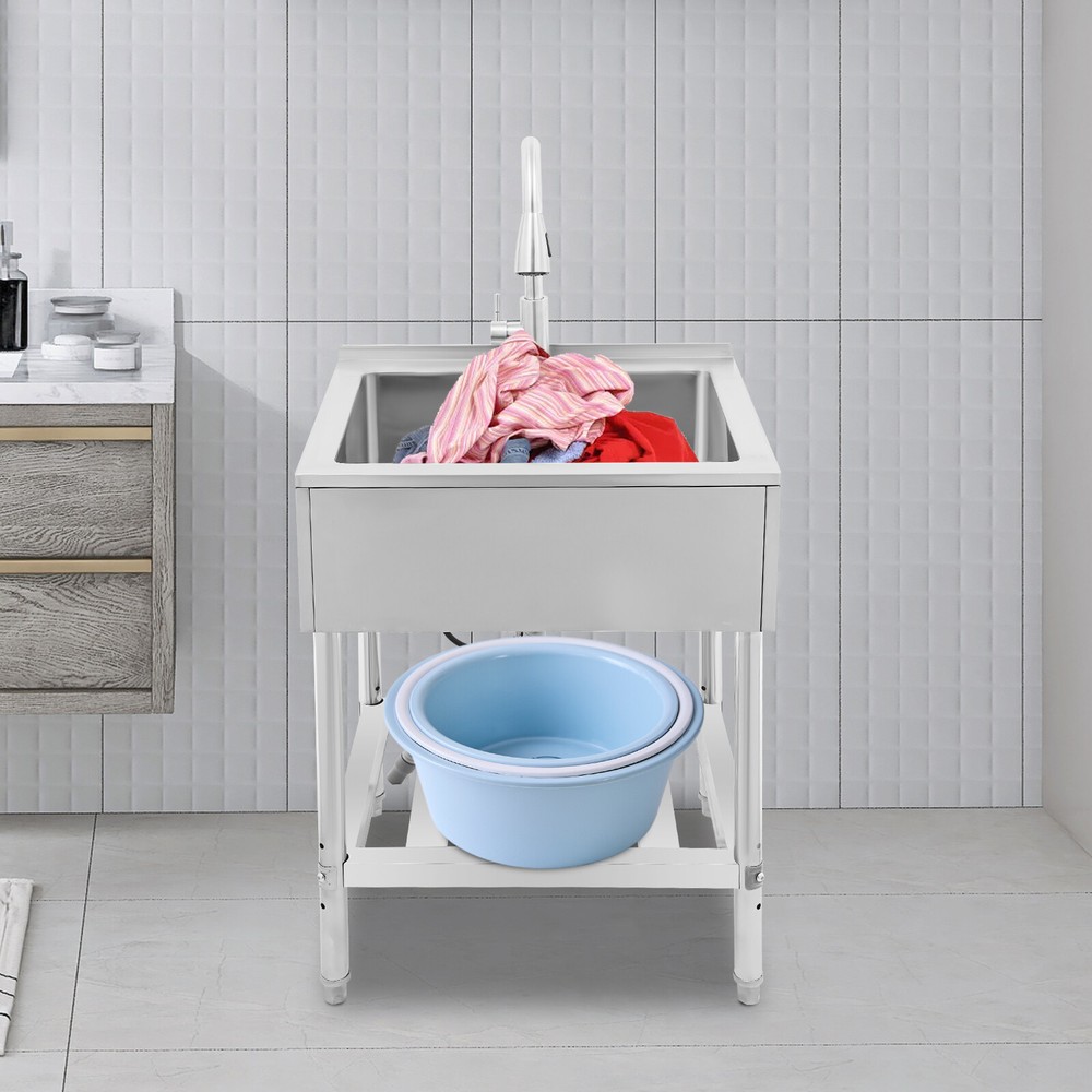 $ 111.56Stainless Steel Single Basin Kitchen Sink Home Laundry Sink with Faucet & Stand!