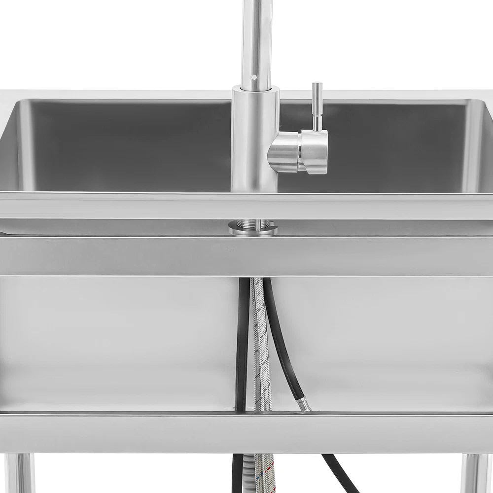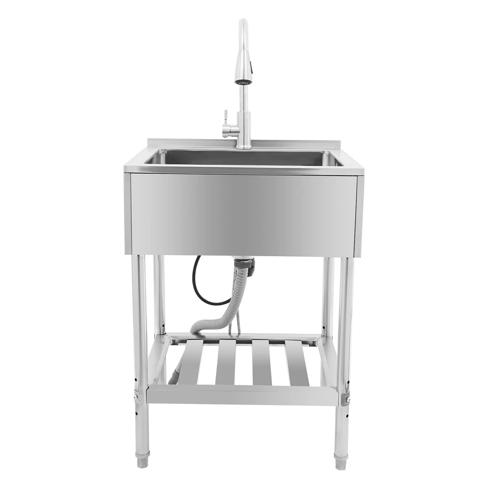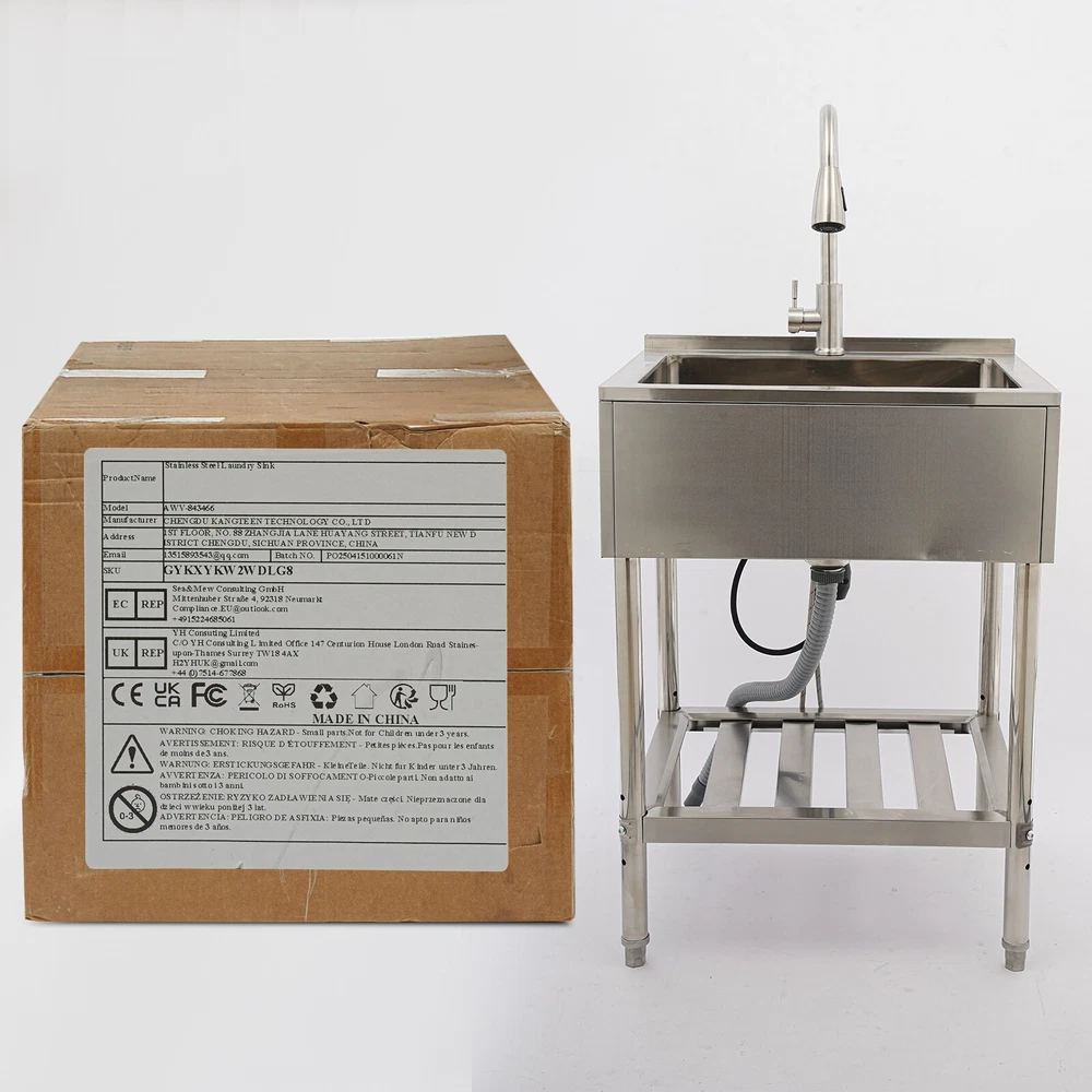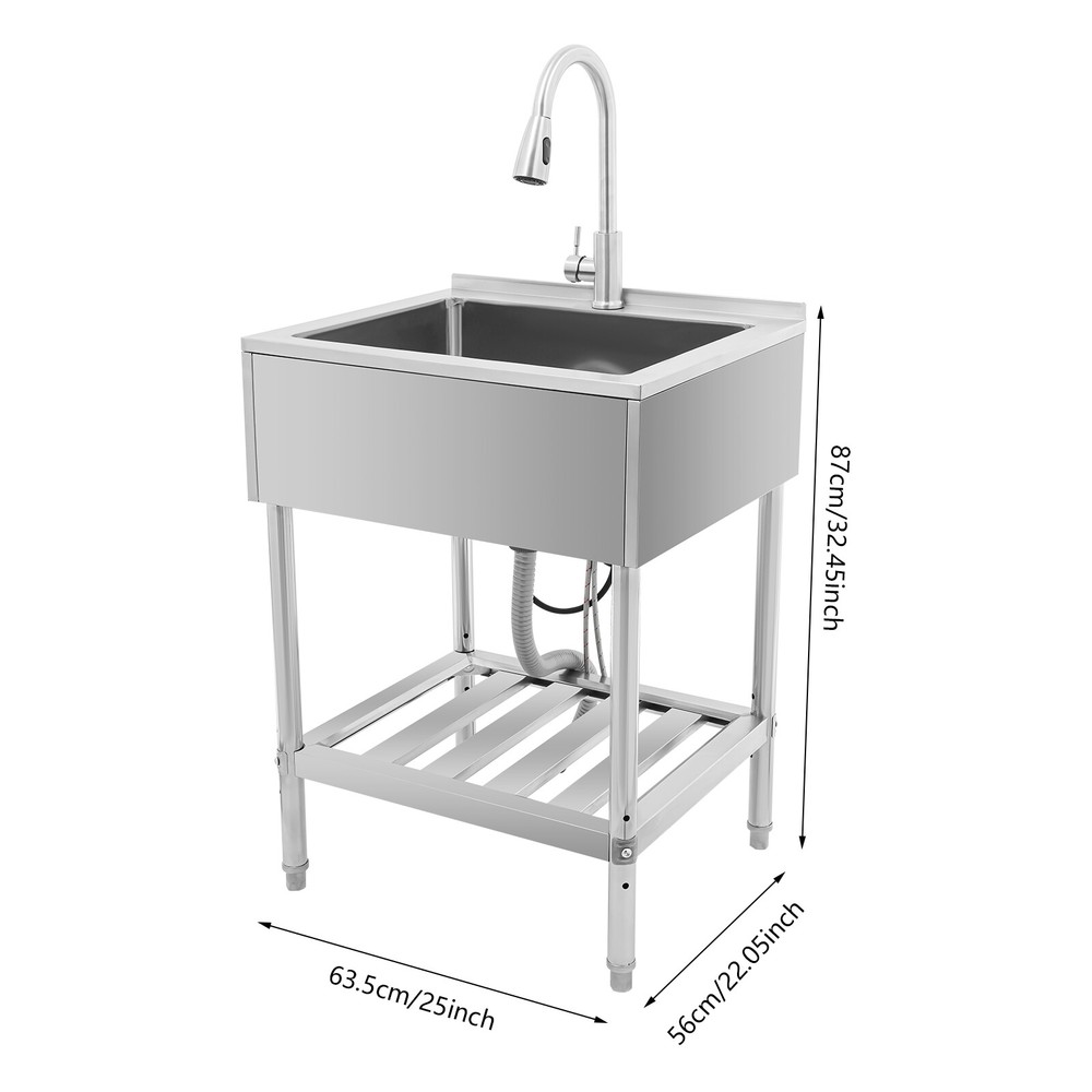 Specifications Color: Silver Style: Modern Shape: Rectangle Material: Stainless Steel Process: Wire Drawing Assembly Required: Yes Mounting Type: Freestanding Faucet 360° Rotatable: Yes Thickness: 6mm/0.24inch Faucet Retractable Length: 26cm/10.24inch Inlet Pipe Length: 60cm/23.62inch Drain Pipe Length: 69cm/27.17inch Inlet Pipe Interface: 2cm/0.79inch Outlet Pipe Interface: 5cm/1.97inch Load Bearing Capacity: 100kg/220.46lbs Product Size: 63.5*56*87cm/25*22*34.25inch Packaging Size: 58*72*42cm/22.83*28.35*16.54inch Gross Weight: 7.9kg/17.42lbs Package Included 1*Sink 1*Faucet 1*Gravity Ball 1*Drain Pipe All Needed Accessories Freestanding Stainless Steel Sink Single Bowl Sink W/ 360° Retractable Faucet Description This Water Sink Is Made of High-quality Stainless Steel and Wire Drawing Process, Making It Sturdy and Durable. It Comes with a Large Single Sink with a Pull-out Faucet to Make Cleaning Easier and Faster. the Bottom Shelf Saves You More Space and Makes Your Place Cleaner and Neater. the Faucet with an Adjustable Temperature Handle, Water Flow Adjustment Button, and High-quality Bubbler Gives You a More Comfortable Washing Experience. Key Features High-quality Material: It Is Made of Stainless Steel with the Wire Drawing Process That Makes This Product Sturdy, Durable, and Resistant to Corrosion and Rust. Thoughtful Design: the Lattice-type Bubbler Allows for a Soft, Splash-free, Water-saving Outlet, Thus Giving You a More Comfortable Skin-friendly Experience. Large Sink: It Allows You to Put More Plates, Pots, Vegetables, Fruits, and Meat Once a Time, Saving You Time for Cleaning Them One by One. Convenient Washing: the Retractable and Rotatable Faucet with Different Washing Modes Allows You to Wash and Rinse from Different Angles and Water Flow, Making Washing Easier for You. You Can Also Adjust the Water Temperature with the Single Handle to Have a Comfortable Washing Experience. Extra Storage Tier: the Bottom Bracket Allows You to Place Vegetables, Fruits, Pots, Bowls, Ladles, and Basins(All Are Not Included), Which Is Convenient and Ensures Easy Access. Stable Structure: Thickened Round Tubes and Square Tubes, and Screw-reinforced Connection Provide Stable Support for This Product Without Being Easily Shaken. Easy to Clean: the Smooth Stainless Steel Surface Is Hard to Stick Residues and Oil, so You Can Easily Rinse It with Water and Wipe It with a Damp Cloth. Ideal Gift: with a Generous Appearance and Good Performance, It Would Be a Wonderful Surprise for Your Family and Friends at the Housewarming and Other Festivals. Details Elevated Bottom: It Ensures Good Ventilation and a Good Storage Environment of the Bottom Tier While Making It Easier to Clean the Floor. Filter Basket: It Can Keep Large Solid Residues Inside the Sink and Protect the Pipe from Blocking. Gravity Ball: It Can Make the Faucet Retract Automatically by Gravity Without Any Power Consumption, Which Is Very Convenient and Environmentally Friendly. Application It Is Suitable for the Kitchen, Milk Tea Shop, Dessert Shop, Pet Shop, Restaurant, Hotel, Cafe, bar, Laundry, and Other Domestic or Commercial Places. Specifications Color: Silver Style: Modern Shape: Rectangle Material: Stainless Steel Process: Wire Drawing Assembly Required: Yes Mounting Type: Freestanding Faucet 360° Rotatable: Yes Thickness: 6mm/0.24inch Faucet Retractable Length: 26cm/10.24inch Inlet Pipe Length: 60cm/23.62inch Drain Pipe Length: 69cm/27.17inch Inlet Pipe Interface: 2cm/0.79inch Outlet Pipe Interface: 5cm/1.97inch Load Bearing Capacity: 100kg/220.46lbs Product Size: 63.5*56*87cm/25*22*34.25inch Packaging Size: 58*72*42cm/22.83*28.35*16.54inch Gross Weight: 7.9kg/17.42lbs Package Included 1*Sink 1*Faucet 1*Gravity Ball 1*Drain Pipe All Needed Accessories Notes Please Check the Size Carefully Before Ordering. Please Do Not Clean It with Hard Tools like Steel Wire Balls for a Longer Service Life. If You Want to Get a Better Installation Result, We Recommend That You Hire a Professional Plumber to Install It. Please Allow the Slight Color Difference Caused by the Shooting Light and 1-3cm Error Due to Manual Measurement, and Make Sure You Do Not Mind Before You Order. Payment Delivery details Terms of sales About us Contact us Payment We accept ebay payment 。 Fees such as import duties, taxes are not included in the item price or shipping costs. These charges are the buyer's responsibility. Delivery details Shipping: 2-9 working days to: USA Terms of sales We maintain high standards of excellence and strive for hundred percent customer satisfaction. Feedback is very important to us. We hope that you contact us immediately before you give neutral or negative feedback, so that we can address your concerns. It is impossible to address issues if we do not know about them! About us Your satis faction is our ultimate goal. We work hard to earn your trust and future business. Our certified technicians have tested each item before shipping. The unit comes with 1 year limited warranty on all manufacturing defects. a) If you receive a defective item, you may return it or ask for a discount. Please contact us within 14 days after you receive the package. b) What you returned must be intact and in its original packaging as re? u. Customer is responsible for shipping costs of the returned item. c) We will cover the cost of shipping back t with the shipping rate indicated in the registration page. We will send you a new unit or refund the full payment you paid. Thank you. Contact us Business Hour Business Hour: Monday To Friday: 8:30 AM to 5:00 PM (Beijing China time) Due to time zones, our reply to your questions may not be immediately. But within above working time, we will reply your email within 24 hours. If it's non-workdays, please kindly be patient and wait till Monday. Please contact us with ebay message. Please feel free to contact us if you have any questions. Monday To Friday: 8:30 AM to 5:00 PM (Beijing China time) Due to time zone