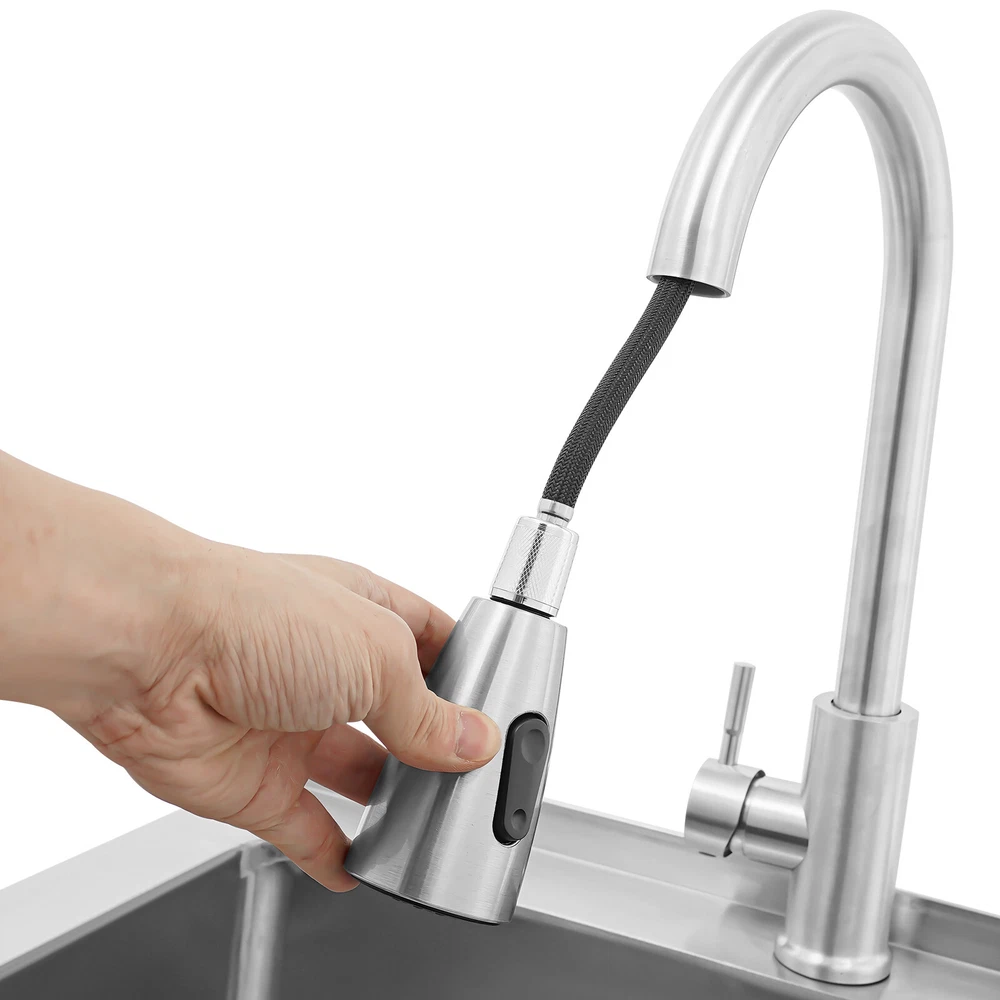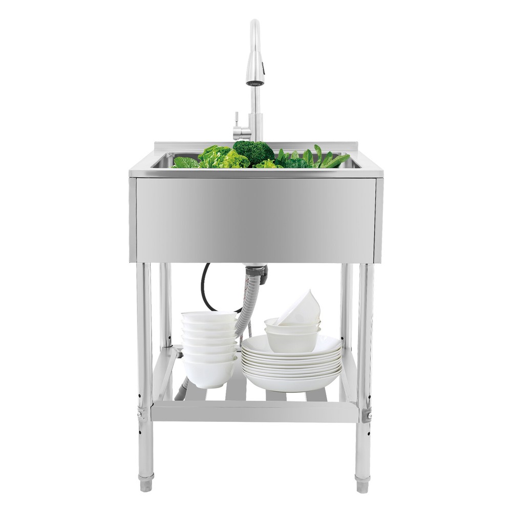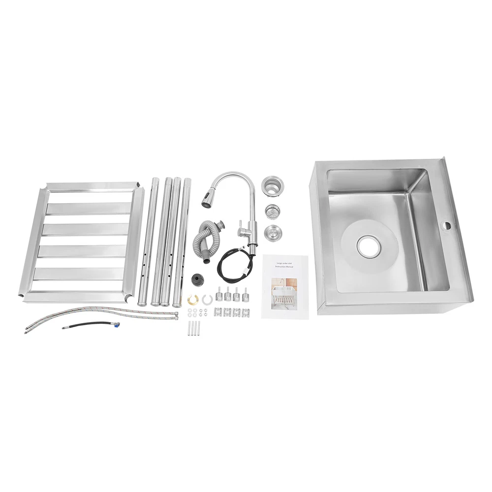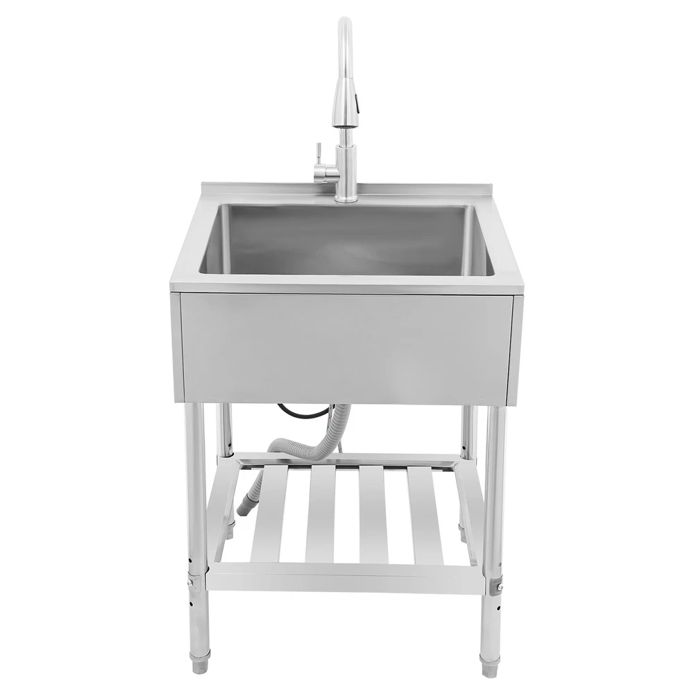 Specifications Color: Silver Style: Modern Shape: Rectangle Material: Stainless Steel Process: Wire Drawing Assembly Required: Yes Mounting Type: Freestanding Faucet 360° Rotatable: Yes Thickness: 6mm/0.24inch Faucet Retractable Length: 26cm/10.24inch Inlet Pipe Length: 60cm/23.62inch Drain Pipe Length: 69cm/27.17inch Inlet Pipe Interface: 2cm/0.79inch Outlet Pipe Interface: 5cm/1.97inch Load Bearing Capacity: 100kg/220.46lbs Product Size: 63.5*56*87cm/25*22*34.25inch Packaging Size: 58*72*42cm/22.83*28.35*16.54inch Gross Weight: 7.9kg/17.42lbs Package Included 1*Sink 1*Faucet 1*Gravity Ball 1*Drain Pipe All Needed Accessories Freestanding Stainless Steel Sink Single Bowl Sink W/ 360° Retractable Faucet Description This Water Sink Is Made of High-quality Stainless Steel and Wire Drawing Process, Making It Sturdy and Durable. It Comes with a Large Single Sink with a Pull-out Faucet to Make Cleaning Easier and Faster. the Bottom Shelf Saves You More Space and Makes Your Place Cleaner and Neater. the Faucet with an Adjustable Temperature Handle, Water Flow Adjustment Button, and High-quality Bubbler Gives You a More Comfortable Washing Experience. Key Features High-quality Material: It Is Made of Stainless Steel with the Wire Drawing Process That Makes This Product Sturdy, Durable, and Resistant to Corrosion and Rust. Thoughtful Design: the Lattice-type Bubbler Allows for a Soft, Splash-free, Water-saving Outlet, Thus Giving You a More Comfortable Skin-friendly Experience. Large Sink: It Allows You to Put More Plates, Pots, Vegetables, Fruits, and Meat Once a Time, Saving You Time for Cleaning Them One by One. Convenient Washing: the Retractable and Rotatable Faucet with Different Washing Modes Allows You to Wash and Rinse from Different Angles and Water Flow, Making Washing Easier for You. You Can Also Adjust the Water Temperature with the Single Handle to Have a Comfortable Washing Experience. Extra Storage Tier: the Bottom Bracket Allows You to Place Vegetables, Fruits, Pots, Bowls, Ladles, and Basins(All Are Not Included), Which Is Convenient and Ensures Easy Access. Stable Structure: Thickened Round Tubes and Square Tubes, and Screw-reinforced Connection Provide Stable Support for This Product Without Being Easily Shaken. Easy to Clean: the Smooth Stainless Steel Surface Is Hard to Stick Residues and Oil, so You Can Easily Rinse It with Water and Wipe It with a Damp Cloth. Ideal Gift: with a Generous Appearance and Good Performance, It Would Be a Wonderful Surprise for Your Family and Friends at the Housewarming and Other Festivals. Details Elevated Bottom: It Ensures Good Ventilation and a Good Storage Environment of the Bottom Tier While Making It Easier to Clean the Floor. Filter Basket: It Can Keep Large Solid Residues Inside the Sink and Protect the Pipe from Blocking. Gravity Ball: It Can Make the Faucet Retract Automatically by Gravity Without Any Power Consumption, Which Is Very Convenient and Environmentally Friendly. Application It Is Suitable for the Kitchen, Milk Tea Shop, Dessert Shop, Pet Shop, Restaurant, Hotel, Cafe, bar, Laundry, and Other Domestic or Commercial Places. Specifications Color: Silver Style: Modern Shape: Rectangle Material: Stainless Steel Process: Wire Drawing Assembly Required: Yes Mounting Type: Freestanding Faucet 360° Rotatable: Yes Thickness: 6mm/0.24inch Faucet Retractable Length: 26cm/10.24inch Inlet Pipe Length: 60cm/23.62inch Drain Pipe Length: 69cm/27.17inch Inlet Pipe Interface: 2cm/0.79inch Outlet Pipe Interface: 5cm/1.97inch Load Bearing Capacity: 100kg/220.46lbs Product Size: 63.5*56*87cm/25*22*34.25inch Packaging Size: 58*72*42cm/22.83*28.35*16.54inch Gross Weight: 7.9kg/17.42lbs Package Included 1*Sink 1*Faucet 1*Gravity Ball 1*Drain Pipe All Needed Accessories Notes Please Check the Size Carefully Before Ordering. Please Do Not Clean It with Hard Tools like Steel Wire Balls for a Longer Service Life. If You Want to Get a Better Installation Result, We Recommend That You Hire a Professional Plumber to Install It. Please Allow the Slight Color Difference Caused by the Shooting Light and 1-3cm Error Due to Manual Measurement, and Make Sure You Do Not Mind Before You Order. Payment Delivery details Terms of sales About us Contact us Payment We accept ebay payment 。 Fees such as import duties, taxes are not included in the item price or shipping costs. These charges are the buyer's responsibility. Delivery details Shipping: 2-9 working days to: USA Terms of sales We maintain high standards of excellence and strive for hundred percent customer satisfaction. Feedback is very important to us. We hope that you contact us immediately before you give neutral or negative feedback, so that we can address your concerns. It is impossible to address issues if we do not know about them! About us Your satis faction is our ultimate goal. We work hard to earn your trust and future business. Our certified technicians have tested each item before shipping. The unit comes with 1 year limited warranty on all manufacturing defects. a) If you receive a defective item, you may return it or ask for a discount. Please contact us within 14 days after you receive the package. b) What you returned must be intact and in its original packaging as re? u. Customer is responsible for shipping costs of the returned item. c) We will cover the cost of shipping back t with the shipping rate indicated in the registration page. We will send you a new unit or refund the full payment you paid. Thank you. Contact us Business Hour Business Hour: Monday To Friday: 8:30 AM to 5:00 PM (Beijing China time) Due to time zones, our reply to your questions may not be immediately. But within above working time, we will reply your email within 24 hours. If it's non-workdays, please kindly be patient and wait till Monday. Please contact us with ebay message. Please feel free to contact us if you have any questions. Monday To Friday: 8:30 AM to 5:00 PM (Beijing China time) Due to time zone