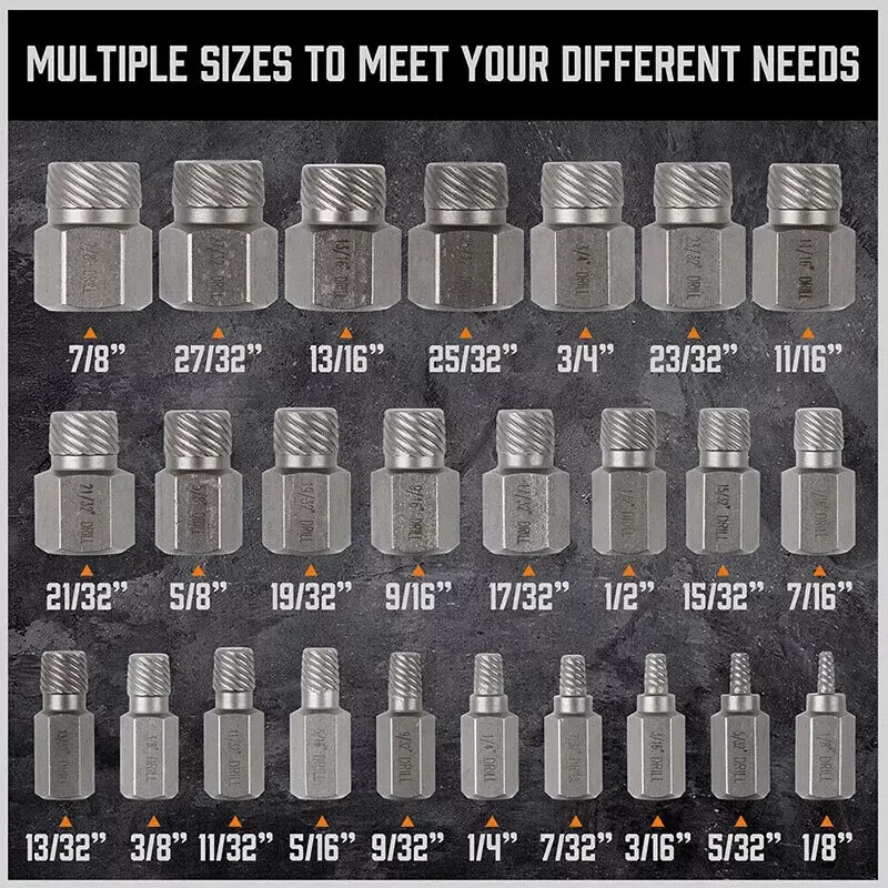 Features: [Extremely High Quality]: Premium chrome molybdenum steel industrial grade extractors are ideal for removing broken screws, bolts, nuts, studs, fittings, threaded pipes and pins and is perfect for any mechanic’s tool kit. [Precision]: Precisely machined aggressive multiplane teeth with left hand spiral design provides extra gripping power and faster threading. [Convenient and Safe, Easy to Operate]: High-visibility size markings on each extractor for quick selection of the right drill bit for extraction applications. [Unique and Simple Design]: Specially designed hexagon head for applying maximum torque with sockets and wrenches Specification: Brand: Unbranded Item Type: Screw Extractor Material: Steel Color: Black Set or Single Item: Set Number of Items in Set: 25Pcs Drive: Electrical Suitable For: Drill, Drywall Compound, Grout Application: Grinding and Cutting, Mixing, Grinding/Sanding, Cutting Condition: 100% Brand New Packing List: 1/8"(M3.5), 5/32"(M4), 3/16"(M5), 7/32"(M5.5), 1/4"(M6.5), 9/32"(M7.5), 5/16"(M8), 11/32"(M9), 3/8"(M10), 13/32"(M11), 7/16"(M11.5), 15/32"(M12), 1/2"(M13), 17/32"(M14), 9/16"(M14.5), 19/32"(M15.5), 5/8"(M16), 21/32"(M17), 11/16"(M18), 23/32"(M18.5), 3/4"(M19.5), 25/32"(M20), 13/16"(M21), 27/32"(M22), 7/8"(M23) How to Use It: Step 1: Select a drill bit that is smaller diameter than the screw or fastener to drill a whole aligned straight with the screw. Step 2: Insert the screw extractor clockwise into the bored whole of your stuck fastener until snug. Step 3: With a ratchet or wrench turn counterclockwise to remove the stuck fastener. Payment Serious bidding, please. Orders will be cancelled and an unpaid item dispute will be filled if payment is not received within 10 days after purchase. Shiping We will ship your order within 24 hours after receiving your verified payment (Excluding Weekends and Public Holidays) The estimated delivery time is within 3-7 working days (not including the weekend). United States:2-5 working days (not including the weekend) Before you pay, please make sure your address matches the address you would like us to ship to. Term Of Sales •We agree to return the goods and make a refund within thirty days, Return items must not be used or have any sign of abuse or intentional damage. •Buyer is responsible for all return shipping charges. •We reserve the right not to refund S&H when the item has been posted.