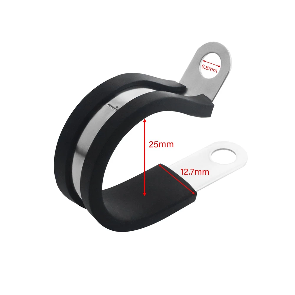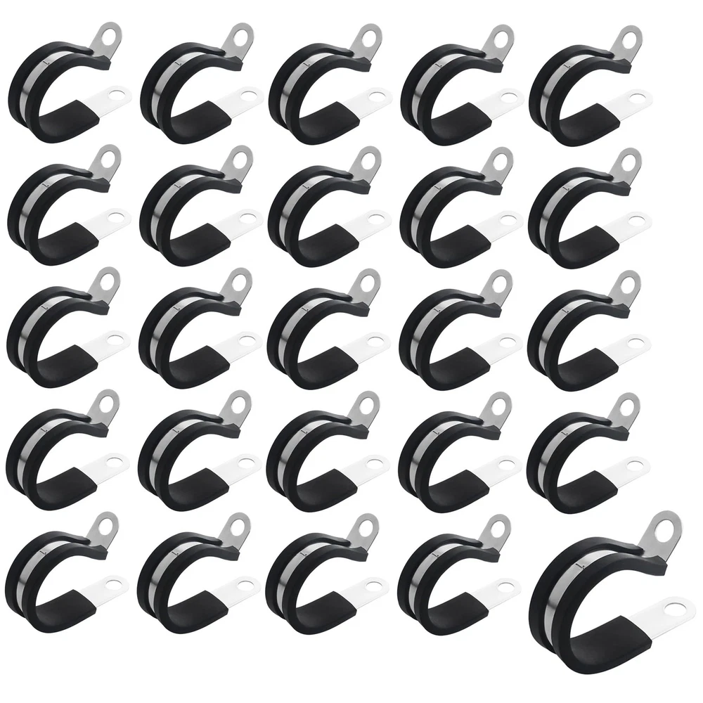25 PCS 1-Inch Rubber Cushioned Stainless Steel Cable Clamps for Secure Wiring