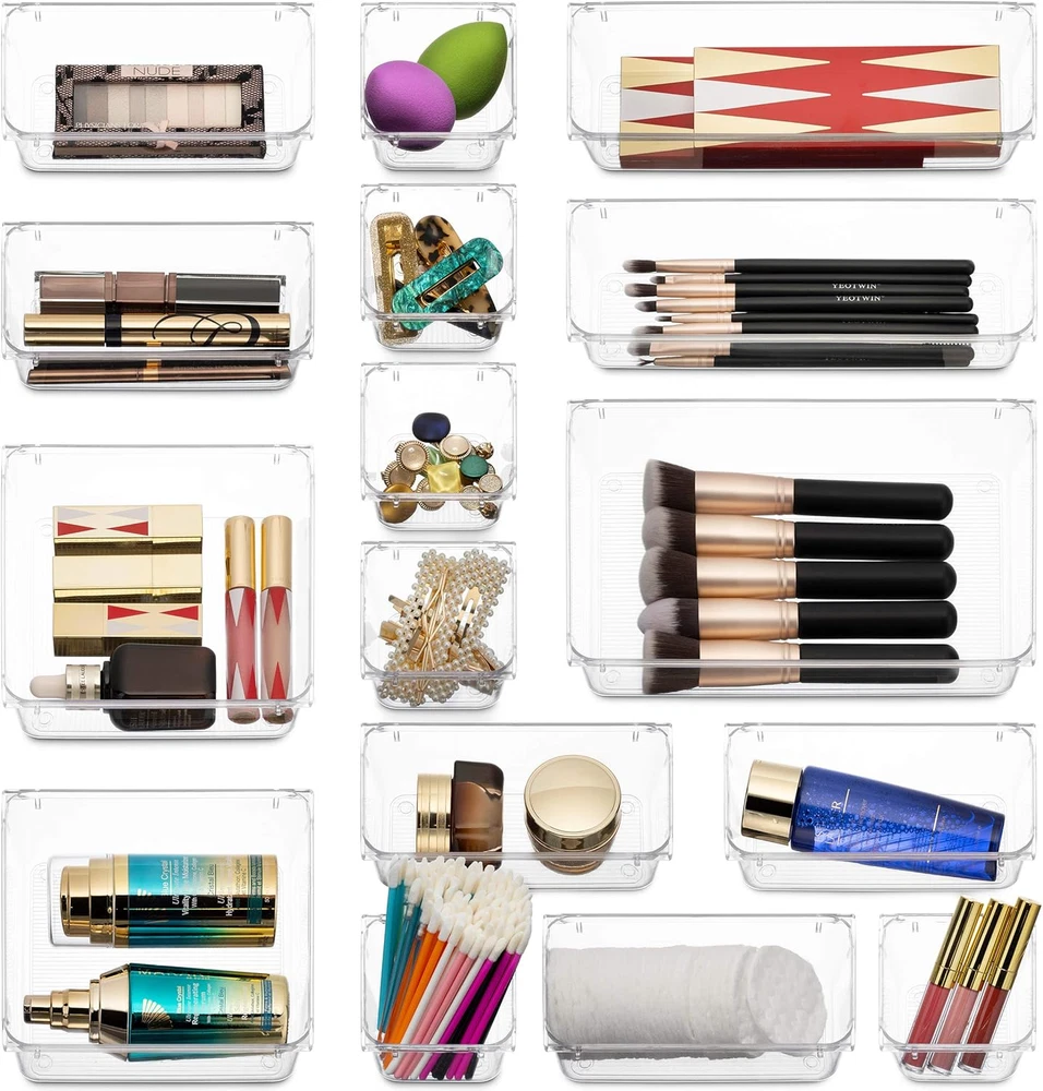 Store New Arrivals Add to Favorite View Feedback Contact Fast deliveries to the customer's home Quality customer service John Make the customers happy! 25 PCS Clear Plastic Drawer Organizers Set, 4-Size Versatile Bathroom and Vanity Drawer Organizer Trays, Storage Bins for Makeup, Bedroom, Kitchen Gadgets Utensils and Office Accessories Description Keep your Desks Drawers Dressers or Vanity neatly organized with these Multipurpose Clear Plastic organizer storage Trays. Practical design to help maximize your space. Use them side by side to keep items organized and easy to find. Ideal for kitchen drawers, vanity drawers, desk drawers, dresser drawers, pantry drawers. Great for closets, bedrooms, bathrooms, laundry rooms, craft rooms, mudrooms, offices, play rooms, garages, or any room of your home / apartment / condo / dorm room / RV or camper Great for storing organizing cosmetics, makeup tools, hair accessories, jewelry, office supplies, craft supplies, utensils, etc. Made of durable high quality BPA Free shatter-resistant plastic. Keep your Desks, Drawers, Dressers or Vanity neatly organized with these Multipurpose Clear Plastic organizer storage Trays. Practical design to help maximize your space. Use them side by side to keep items organized and easy to find. Ideal for kitchen drawers, vanity drawers, desk drawers, dresser drawers, pantry drawers. Great for closets, bedrooms, bathrooms, laundry rooms, craft rooms, mudrooms, offices, play rooms, garages, or any room of your home / apartment / condo / dorm room / RV or camper Great for storing organizing cosmetics, makeup tools, hair accessories, jewelry, office supplies, craft supplies, utensils, etc. Made of durable high quality BPA Free shatter-resistant plastic. Item model number SDOS16 Part Number SDOS16 Batteries Required? No Finish Polished Item Package Quantity 1 Color Clear Finish Type Polished Product Dimensions 0.39 x 13.39 x 29.53 inches Material Plastic Mounting Type Tabletop Mount Item Weight 350 Grams Specific Uses For Product Cosmetics Item Weight 12.3 ounces Batteries Included? No Special Features Lightweight Size 25 Piece Special Feature Lightweight Number of Compartments 25 Unit Count 25.0 Count Number Of Pieces 25 ABOUT US We offer the best prices around on high quality products. Our E-store includes media such as books, movies, music and games while offering electronics, toys, sporting apparel, clothing, tools, general home, garden items and more. SHIPPING We are always working hard to ensure your package arrives as soon as possible. Please understand that some factors like weather, high postal traffic, and the performance of shipping companies are outside of our control. We offer free shipping to the lower 48 states and ship within 2 business days of payment, usually sooner. We do not accept P.O. Boxes. Please provide a physical address. For shipping outside of the continental USA, we only use eBay's Global Shipping Program. The item is shipped to KY and then sent to the rest of the world. International customers are responsible for all duties and taxes. Continue to 'check out' to calculate costs for shipping the item to your country. Messages regarding eBay's Global Shipping Program MUST be directed at eBay EXCLUSIVELY. RETURNS We offer a 30-Day Return Policy on items in which you are not completely satisfied with. You have the option of a full-refund or an exchange of the item. No returns are available on items shipped outside of the USA PAYMENT We accept PayPal. CONTACT US This page content is yet to come Please ad us to your favorite seller and visit again later Thank You CUSTOMER SATISFACTION We try our very best to make sure every customer is completely satisfied. If there's a problem, message us! We're happy to help. WE ACCEPT