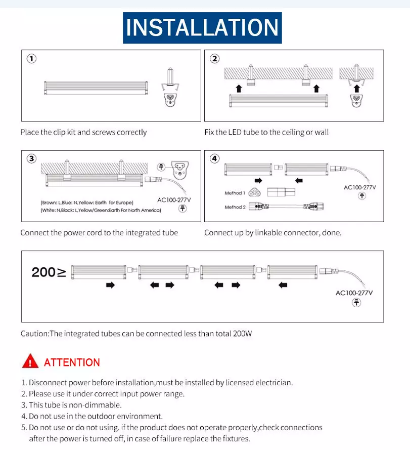 Features: special contractor &distributor pricing available&3years no hassle warranty. Specifications: Length: 4FT 36W Material:Aluminum Alloy+PC Color Temperature:6500K Lumens:4320Lm Power factor:>0.90 Base Type:Integrated (With Bracket) CRI: > 80 PC Cover:Clear Cover Voltage:AC 85-265V Light source: SMD2835 Operation temperature:-20C to 50C Light Distribution:270 Degree Frequency:60Hz to 50Hz Life time:>50,000 hrs Warranty:3 Years Applications: Widely used in supermarkets, offices, convenience stores, gas stations, warehouse, shops, hotels, motels etc. Includes: 25pcs led tube lights 25Pack 4 Foot LED Tube Light Bulbs 4FT 36W T8 Integrated LED Shop Lights Fixture Features: special contractor &distributor pricing available&3years no hassle warranty. Specifications: Length: 4FT 36W Material:Aluminum Alloy+PC Color Temperature:6000K Lumens:4320Lm Power factor:>0.90 Base Type:Integrated (With Bracket) CRI: > 80 PC Cover:Clear Cover Voltage:AC 85-265V Light source: SMD2835 Operation temperature:-20C to 50C Light Distribution:270 Degree Frequency:60Hz to 50Hz Life time:>50,000 hrs Warranty:3 Years Includes: 25pcs led tube lights Applications: Widely used in supermarkets, offices, convenience stores, gas stations, warehouse, shops, hotels, motels etc. Benefits: LED lighting uses significantly fewer Watts (W) than conventional lighting. But that's not the only Savings you enjoy when selecting LED lighting. Conventional bulbs have a shorter operating lifetime compared to LED lighting. If you are using conventional bulbs you will be purchasing up to four times as many bulbs or fixtures compared to a single LED replacement with a long operating lifetime. Buying and using conventional bulbs and fixtures also means that you incur three times more maintenance as well as replacement costs compared to LED lighting. Just think of the maintenance costs incurred getting to those hard to reach locations. LED lighting is also free of environmentally harmful Mercury as well as Halogen chemicals. Payment Delivery details Terms of sales About us Contact us Payment 1.We only accept payment by Paypal. 2.If you pay by paypal with E-check, it normally takes 5 business days to clear, Once your E-check payment clears, your item will be dispatched within 1-2 working days. 3.Payment must be received within 7 days after the auction ended. Delivery details 1.All orders ship within 24 hours after receiving your payment. 2. Fedex shipping from our US warehouse, takes about 3-5business days for delivery. 3.Please verify your address during checkout. We are not responsible for any wrong or undeliverable addresses. Terms of sales We strive to ensure 100% satisfaction for each and every one of our customers. we offer a 30-day 100% money-back guarantee on all eBay orders. If your item isn't just as you wished, simply send it back to us and we'll refund or replace your item. Please note that all returns must be authorized by our Customer Service department. please contact us though message first if you have any problem . About us 1.Our working time is Monday to Friday. 9.30-18.30 BeiJing time am. 2.We will reply you within 24 hours(1work days). 3.We are always been trying to provide best service and reliable products for every customer. Contact us 1. If you are dissatisfied for any reason, please do not be quick to leave negative/neutral feedback. We work hard to make sure EVERY CUSTOMER 100% SATISFIED and resolve any problem for you and always leave positive feedback to all our customers. 2. If you are satisfied with the product you received,please leave us positive feedback and 5 scores DSR. Country/Region of Manufacture China Type LED Features V Shaped MPN Does not apply Bulb Shape Code T8 Brand Unbranded Bulb Wattage 36W Lumens 4320lm Manufacturer Warranty 3 Year Warranty Light Color Cool White Bulb Shape T8 Integrate Tube Bulb Life Hours 50,000hours Output Voltage 85-277V Energy Star A+++ Material Aluminum LED Chip Code SMD2835 Lighting Technology LED Finish Clear Indoor/Outdoor Indoor Voltage 110 V Color Temperature 6000K EC Range A+++ - G