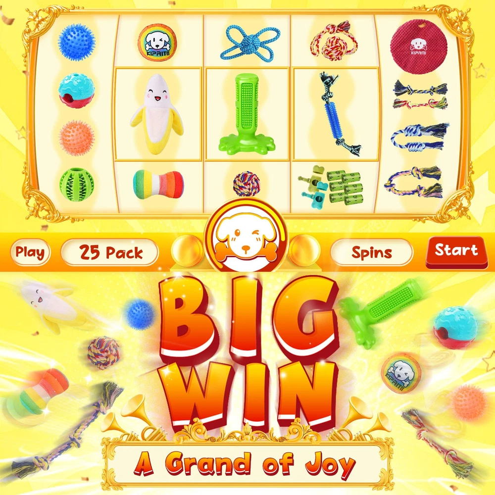 Variety is Our Game: Firstly, offering as many types of fun as a playground. Secondly, protecting your furniture, a win-win for both you and your dog. Finally, no need to mull over countless shelves; we’ve combined an all-in-pack for you 24/7 Happiness: You always want your dog to be happy 24/7 – dog toys pack can ensure this. Includes interactive rope & fetching toys, puppy teething and chew toys, training treat balls, and squeaky toys to stimulate curiousness Various Dog Toys Pack: 25 Pack pet toys for dogs, great for puppy and small dogs. Includes 8 rope dog toys, 2 dog treat balls, 3 rubber toys, 3 squeaky plush toys, 1 flying disc dog toy and 6 extra dog bag rolls & 2 bag dispensers Fulfills Both Owner & Dog Needs: Great for indoor play and outdoor energy . Strengthen bonds through interaction or let your dog entertain itself, giving you some peaceful moments. Provide joy for your dog while also promoting oral well-being Reliable Quality: We are committed to using natural materials because dogs are part of the family. We empathize with you and want to bring various joys and love to your dogs