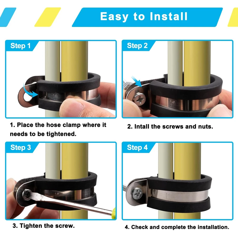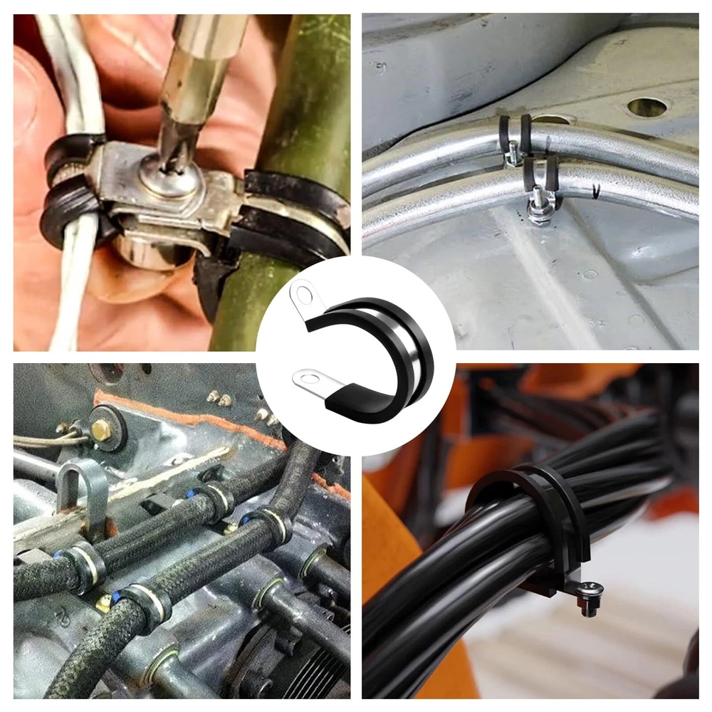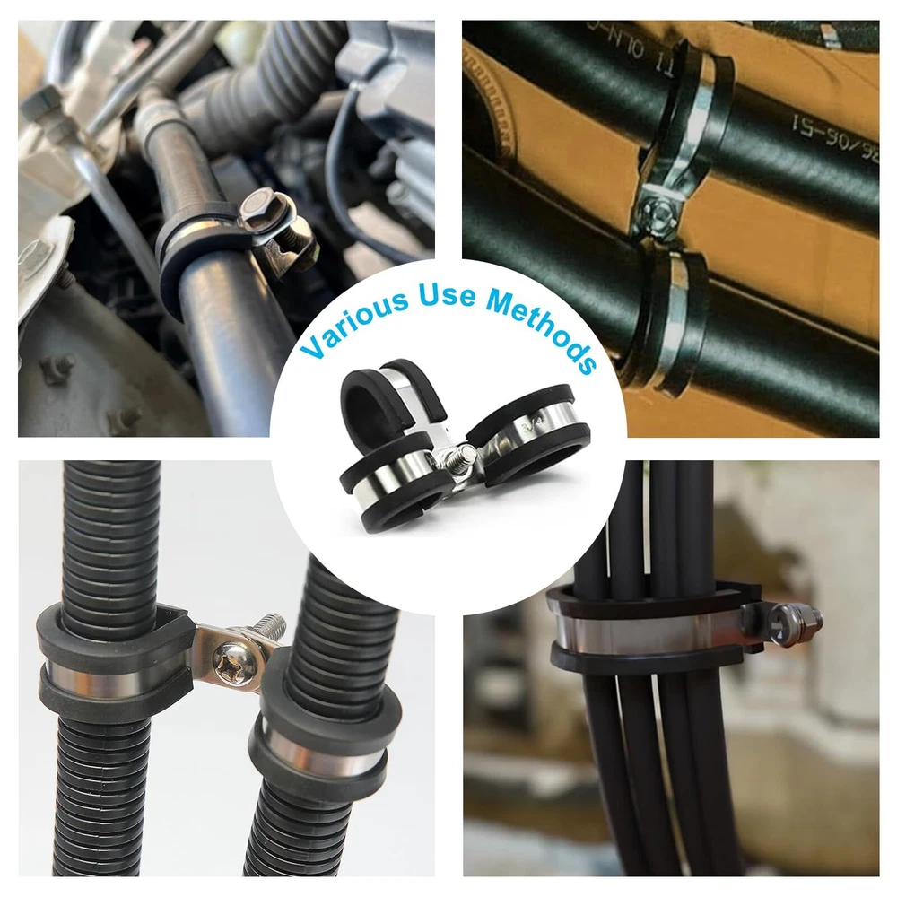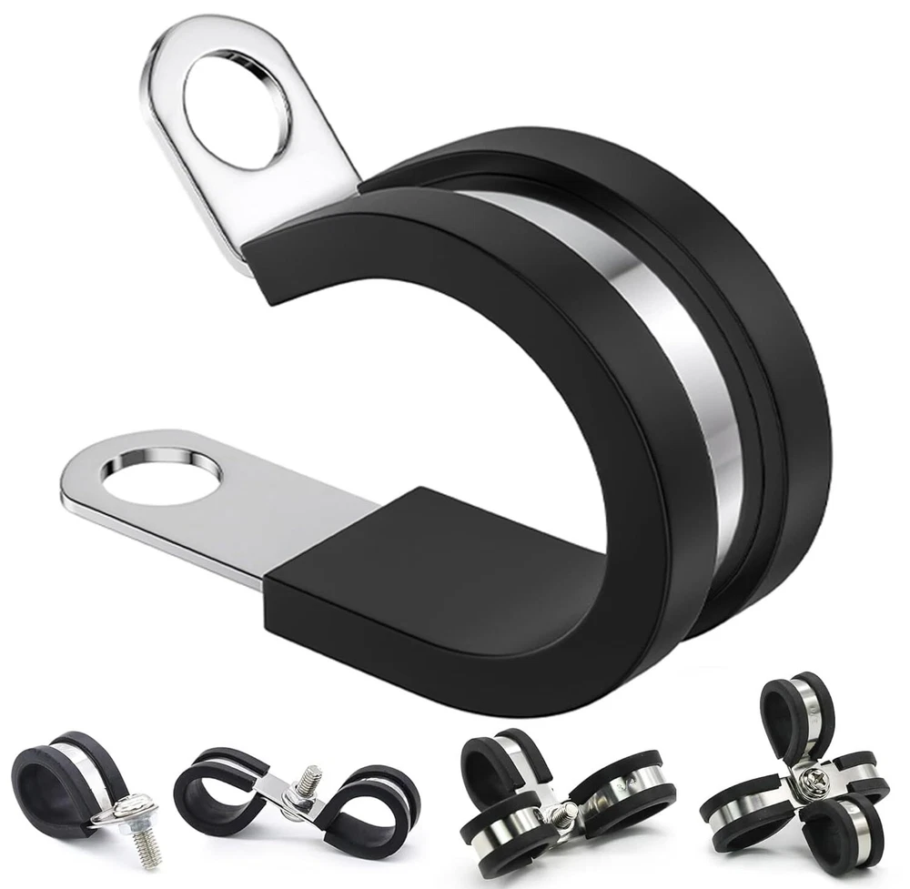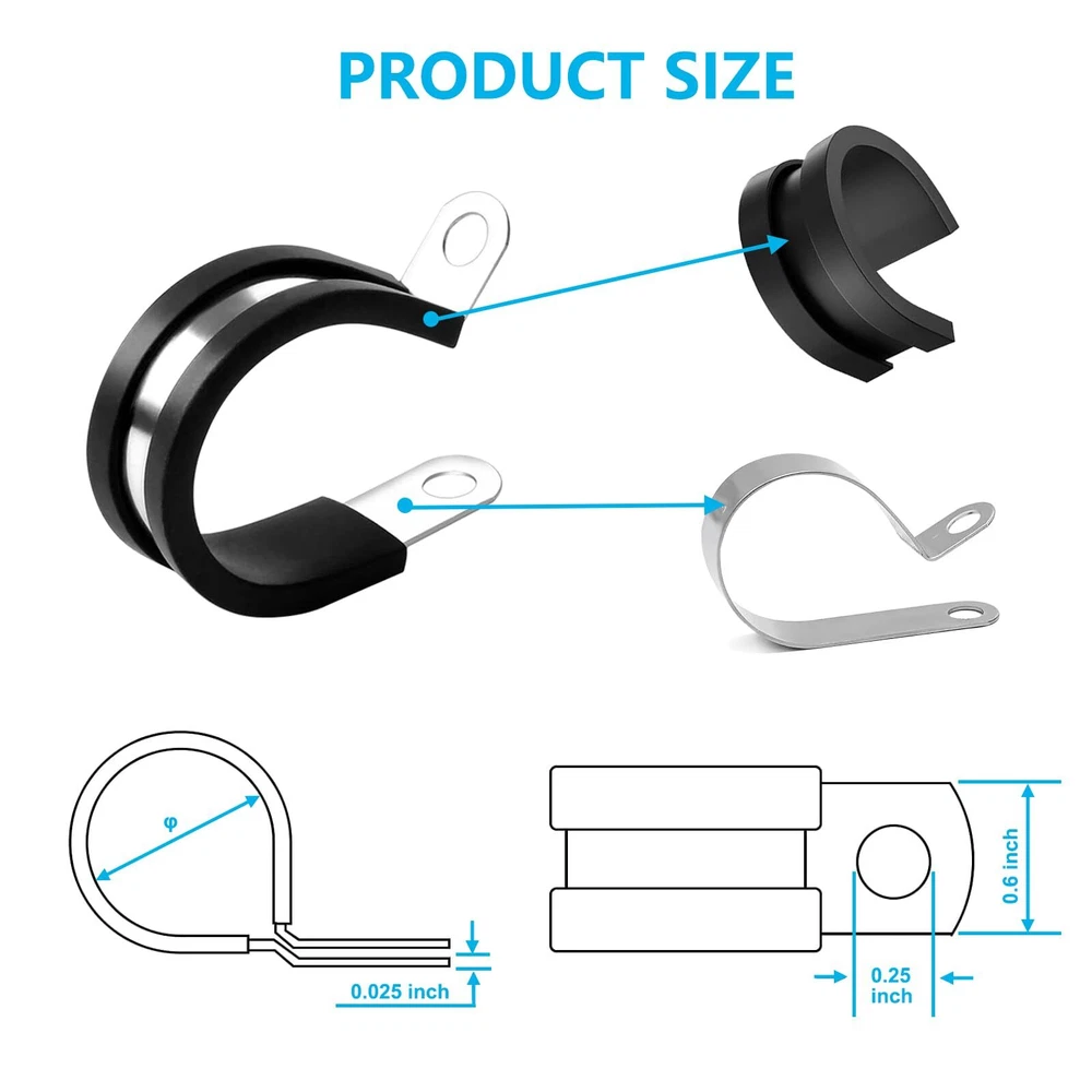 25 Pcs 1/2 Inch Stainless Steel Wire Clamps Rubber Cushioned Pipe Clamps