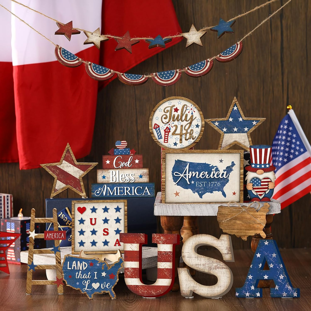 Store New Arrivals Add to Favorite View Feedback Contact Fast deliveries to the customer's home Quality customer service John Make the customers happy! 25 Pcs 4Th of July Tiered Tray Decorations Set Wood Patriotic Decoration Rustic American Flag Star Red White Blue Farmhouse Decor for Memorial Day 250Th Anniversary Home Indoor Birthday Party(Stylish) Description Ample Quantity: this package includes 25 wood 4th of July tiered tray decorations; This abundance in quantity ensures that every corner of your home can be lively and shine with a celebratory mood, all in complementing patriotic colors; Please note that tiered tray is not included Patriotic Theme: the wood 4th of July tiered tray decor set encapsulates the essence of Independence Day; The package includes elements like the word USA, map of the United States, star, and dwarf, painted in red, white, and blue; Each piece matches the patriotic atmosphere, creating a charming farming and rural aura in your home Enhance Aesthetic Appearance: these farmhouse tier tray decor set offer an easy and attractive way to enhance the aesthetic appeal of your home or office during the patriotic holidays; Turning these simple wood pieces into an integral part of your holiday traditions Quality Material: with the 4th of July tiered tray decor beautifully crafted from wood, enjoy stability and durability; Clear printing and a smooth surface free from burrs; These pieces are comfortable, reliable, and usable for a long time, offering long lasting aesthetic appeal to your home decor Versatile Display: :beyond just being items for your tiered trays, the wood 4th of July decor pieces are great fits for display on cabinets, dining tables, and fireplaces; Additionally, you could hang them on the wall, window, door, or a tree, complementing your decor with the right hooks and ropes, all to beautifully express your patriotic spirit Features: Chic gift: The fourth of July tiered tray decor makes a chic, meaningful gift that you can present to your families, friends, relatives, neighbors, colleagues, and classmates. They are thoughtful offerings for Memorial Day, 4th of July, and Labor Day, carrying patriotic feelings and adding to the celebratory spirit. Celebratory atmosphere: Create a festive, patriotic atmosphere in your home or office with these patriotic tiered tray decors. The patriotic colors and elements add a touch of charm and festivity, ideal for your Independence Day celebration. Specifications: Material: wood Color: red, white, blue Size: as the picture shown Package includes: 25 x Memorial Day tiered tray decor Notes: Manual measurement, please allow slight errors on size. The color may exist a slight difference due to different screen displays. Unit Count 25.0 Count Item Dimensions L x W x H 7.87"L x 5.51"W x 1.77"H Number of Items 25 Color Red, White, Blue Pattern Solid Material Wood Material Type Wood Is Dishwasher Safe No Style Stylish Item Weight 0.22 Kilograms Is Oven Safe No Shape Rectangular Style Name Stylish Tray Type Tiered Tray Occasion Housewarming Finish Types Painted Product Dimensions 7.87"L x 5.51"W x 1.77"H Product Care Instructions Wipe with Dry Cloth ABOUT US We offer the best prices around on high quality products. Our E-store includes media such as books, movies, music and games while offering electronics, toys, sporting apparel, clothing, tools, general home, garden items and more. SHIPPING We are always working hard to ensure your package arrives as soon as possible. Please understand that some factors like weather, high postal traffic, and the performance of shipping companies are outside of our control. We offer free shipping to the lower 48 states and ship within 2 business days of payment, usually sooner. We do not accept P.O. Boxes. Please provide a physical address. For shipping outside of the continental USA, we only use eBay's Global Shipping Program. The item is shipped to KY and then sent to the rest of the world. International customers are responsible for all duties and taxes. Continue to 'check out' to calculate costs for shipping the item to your country. Messages regarding eBay's Global Shipping Program MUST be directed at eBay EXCLUSIVELY. RETURNS We offer a 30-Day Return Policy on items in which you are not completely satisfied with. You have the option of a full-refund or an exchange of the item. No returns are available on items shipped outside of the USA PAYMENT We accept PayPal. CONTACT US This page content is yet to come Please ad us to your favorite seller and visit again later Thank You CUSTOMER SATISFACTION We try our very best to make sure every customer is completely satisfied. If there's a problem, message us! We're happy to help. WE ACCEPT