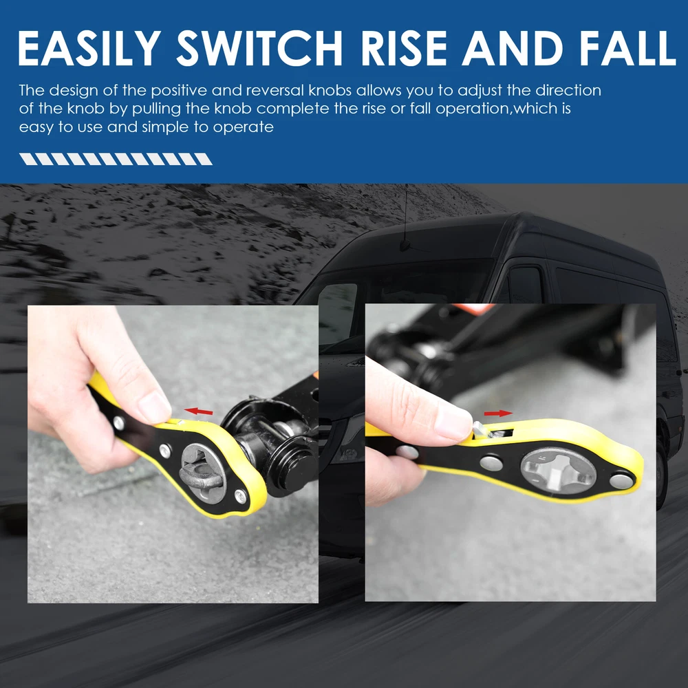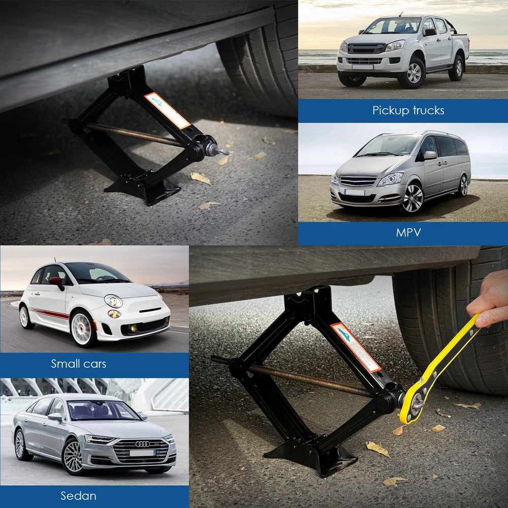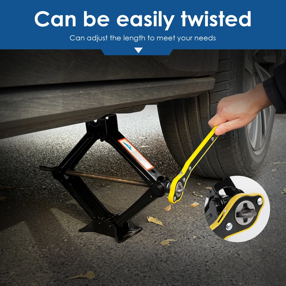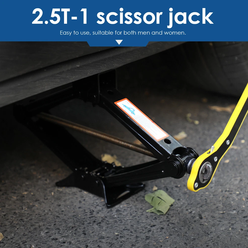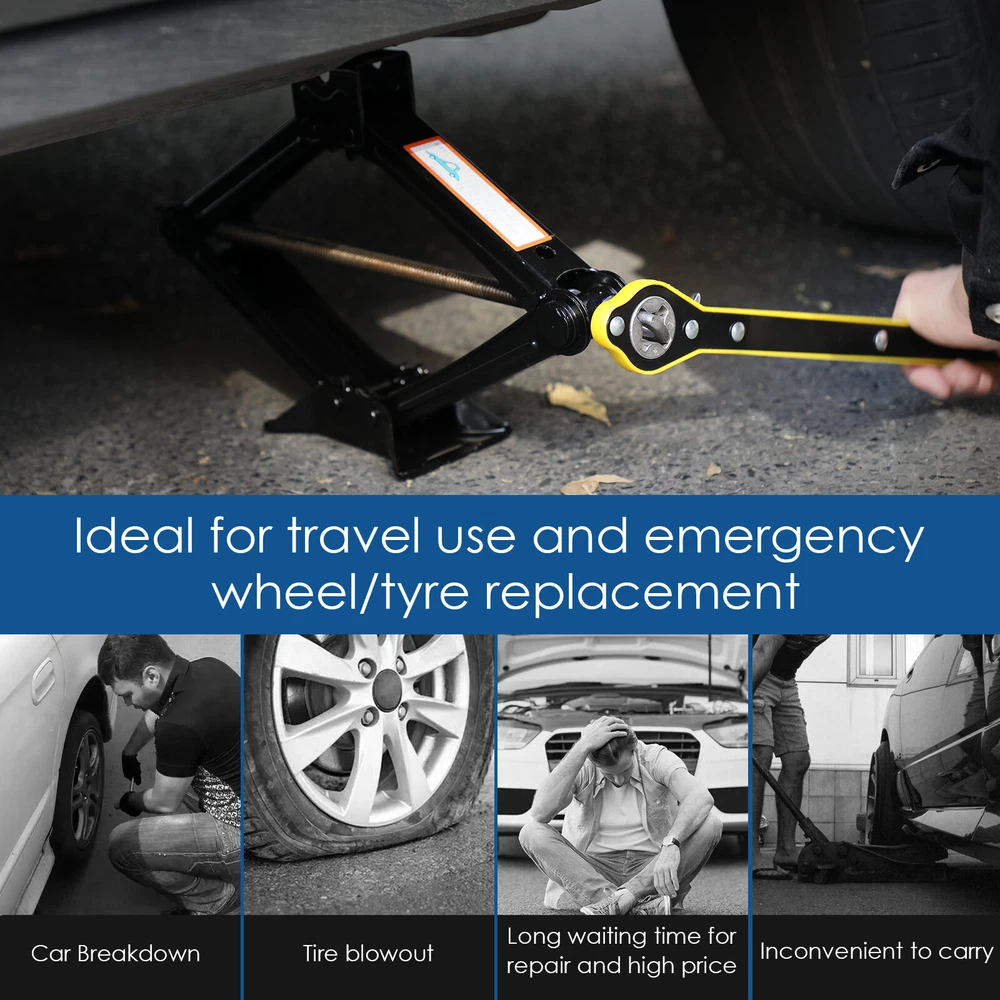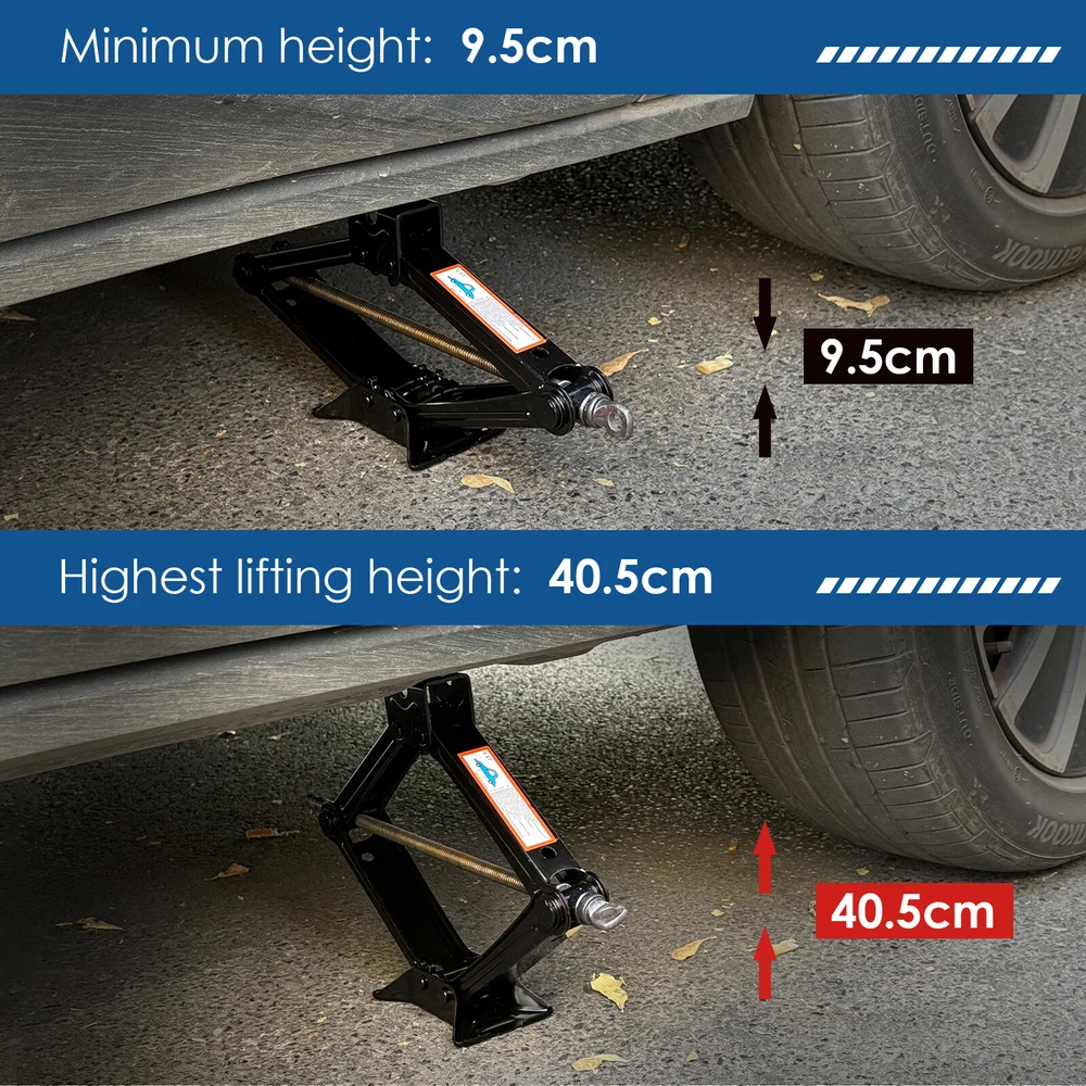Specification: Colour: Black Minimum height: about 95MM Maximum height: about 405MM Lifting capacity: 2.5 T Colour: Black Material: steel Feature: Labor-saving Wrench: The safe and labor-saving jack handle is simple and easy to use. Ideal for travel use and emergency wheel/tyre replacement. Both men and women can easily use it. Heavy-Duty Wrench: The telescoping wheel wrench is constructed out of premium 45#steel and chromeplate for strength and durability. Never rusts and is not easily deformed. Maximum Convenience: The wheel wrench comes with the telescoping arm to torque easily and can adjust the length to meet your needs, longer the handle and greater the torque, quite substantial. Ergonomic Handle: The telescoping wheel wrench features a textured handle for comfortable holding, torquing and maximum leverage. Best Wheel Helper: Designed for removing and tightening wheel nuts effortlessly, this practical wheel wrench serves as a perfect replacement for your standard lug wrench. Product List: 1x 2.5T scissor jack; 1x wrench On Jan 17, 2025 at 00:49:34 PST, seller added the following information: