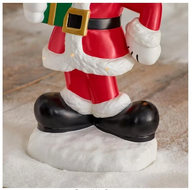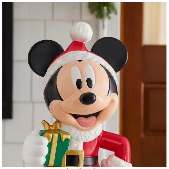 Perfect for fans of Disney, this adorable 2.5 ft. LED Mickey Holiday Porch Greeter makes a delightful addition to your holiday decorations. Mickey Mouse is ready for the holiday season and is decked out in a Santa suit and hat with a green present in hand. This light-up LED battery-operated greeter includes a timer for automating on/off settings. Indoor/Outdoor covered LEDs offer energy-efficient illumination Light-up Mickey measures 32 in. H x 14.38 in. W x 12.25 in. D Artfully crafted from blow mold Hand-painted detailing Requires (3) AA batteries, sold separately TRY-ME Includes (3) LR44 1.5V Button Cell Batteries, Non-Replaceable 6-hours on/18-hours off timer function included Suitable for decorating your home or outdoor covered spaces