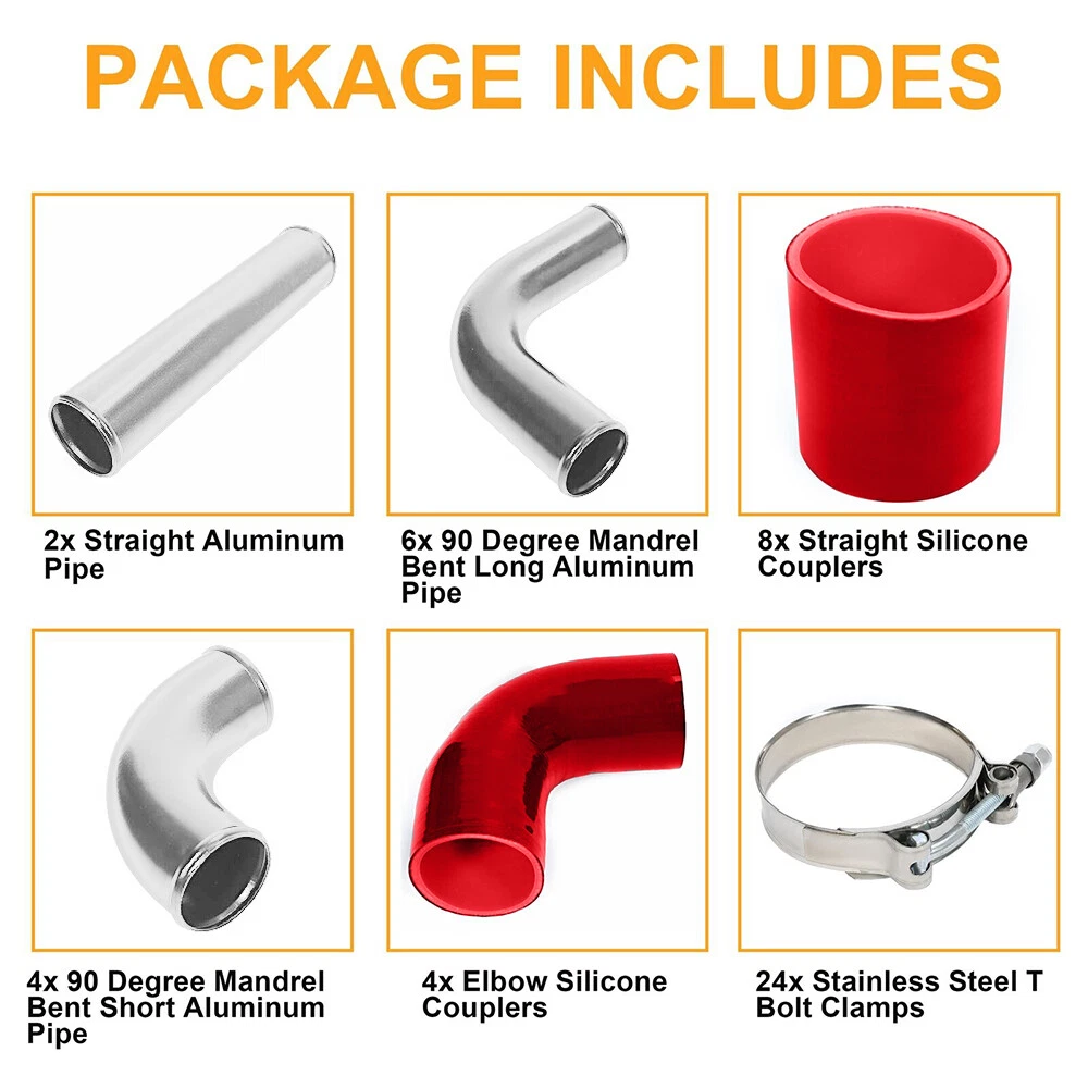 2.5" inch Universal 12Pcs Intercooler Piping Kit+ Red Coupler T-Bolt Clamp Red Autoparts-Accs Introduction: Autoparts-Accs has been providing the quality products in automotive parts & accessories for years. Being a professional e-Bayer that provides you guys the greater shopping experiences is out mission. Product 100% Brand New Product, Quality Ensured, Provide You the Best Confident and Support! 90 Days Warranty, Money Back Guarantee, No Risk, No Hassle! Shipping Free Shipping. Handling time: 2 Business day. Item is shipped to ebay address.Leaving correct.address can minimize delay. Tracking information. will be sent once item is shipped. Contact We have a friendly and dedicated support teams to handle any problems you come up with our products. Please contact us first via email or message for replacement, refund or technical problem caused by any reason. Description: Autoparts-Accs 12Pc Universal 2.5" Intercooler Pipe Piping Kit +T-Bolt Clamps +Silicone Coupler 👀 Higher Corrosion Resistance: The chrome plating effectively protects the base material from oxidation and corrosion, especially suitable for humid or chemically aggressive environments. 👀 Stronger Wear Resistance: The hardness of the chrome plating makes it more resistant to scratches and wear. 👀 Lustrous Appearance: Chrome surfaces are usually brighter and more reflective, offering a very striking and attractive look. 👀 Better Durability: Due to its resistance to corrosion and wear, chrome-plated items generally have a longer lifespan. 👀 Wide Applicability: Chrome plating can be applied to a variety of base materials, not limited to aluminum, offering greater material selection flexibility. Features: Made of High quality Aluminum 2.5" inch Piping Diameter Pipe Thickness: 1/16 in. (1.58 mm) Increase 65% Air Flow Comparing with other Standard Piping Triple reinforced silicone able to withstand high heat and pressure Will reduce vibration transfer due to hard impact shifting or engine movement Specifications: 100% Brand New Warranty :90 Day Free Reurn:30 Day Color: Chrome / Red as pics shown Surface finish: Oxidation Material: High quality T-6061 Lightweight Aluminum Piping 2.5" inch Piping Diameter Pipe Thickness: 1/16 in. (1.58 mm) Increase 65% Air Flow Comparing with other Standard Piping Triple reinforced silicone able to withstand high heat and pressure Will reduce vibration transfer due to hard impact shifting or engine movement Fitment: Universal Fitment,Upgrades for turbo car (modification require) Packing List: 2x Straight Aluminum Pipe 6x 90 Degree Mandrel Bent Long Aluminum Pipe 4x 90 Degree Mandrel Bent Short Aluminum Pipe 8x Straight Silicone Couplers 4x Elbow Silicone Couplers 24x Stainless Steel T Bolt Clamps ( as shown in the picture ). NOTE: (1) Items would be shipped within 24 hours with cleared payment(Exclude Weekend and Holidays) (2) Items wont be shipped to Puerto Rico(Please check your address before placing an order!) (3) Please allow 1-3mm differs due to manual measurement. Due to the different display and different light, the picture may not reflect the actual color of the item (4)It would be highly appreciated if you might contact us first once you have any problems concerning the items. And you can expect all the issues would be resolved ASAP! Payment Delivery details Terms of sales About us Contact us Payment 1.Payment must be received within 7 days after winning the item,UPI (Unpaid Item Case) will be filed automatically if buyers fail to make the payment in 7 days after item ends. 2.If you have difficulty paying for the item, please email us to cancel the order Delivery details 1.Items will be sent out in 48 hours on payment received from Monday to Friday. Orders during weekends and holidays will be posted in the following working day. 2.Please make sure your shipping address and the order information is correct before placing an order. We will not be responsible for item loss due to wrong or unknown address. Terms of sales 1.We accept 30 days return/refund guarantee 2.If the item you received is faulty, damaged or incorrect, or any further problems, you can return it for replacement or refund, please contact our customer service on eBay within 30 days from item received. 3.For damaged items on arrival, please contact us immediately, sending us an email with a photo is preferred. We will offer solutions to such cases. Full refund or replacement will be guaranteed. About us Welcome to Super Auto Parts Processing Plant! we have been providing the quality products in automotive parts & accessories for years. Being a professional e-Bayer that provides you guys the greater shopping experience is our mission. Contact us 1.Please contact us first if you have any questions such as product damaged, item not arrived, wrong item sent and item does not work. All those issues would be solved immediately with your satisfactory! 2. Please contact us first before you left us a negative/neutral feedback and we are pleased to solve the problems you met. 3.Please feel free to contact us if you have any problems and we would always be here for your need . Type Piping Kit Color Red Material Aluminum Other Part Number 2.5 Inch 2.5" Upgrade Replacement Performance Turbo Charged Kit Fitment Type Performance/Custom Manufacturer Part Number Does not apply Quantity 30 Superseded Part Number Coupler Clamp Aluminum Pipe Piping Pipes Intercooler DIY Custom Modified Item No Placement on Vehicle Front Brand autoparts-accs Shipping Notes We have multiple warehouses in US, and will choose the nearest one for shipping, according to your address and our inventory Item Condition New Interchange Part Number PK-M-12P25BK, CPL-M-12P25BR Manufacturer Warranty 3 Months Fitment Upgrades for turbo car (modification require) Finish Chrome Features Individual Items Included Adapter, T-Bolts, Clamps, Hoses OE/OEM Part Number Does not apply Performance Part No