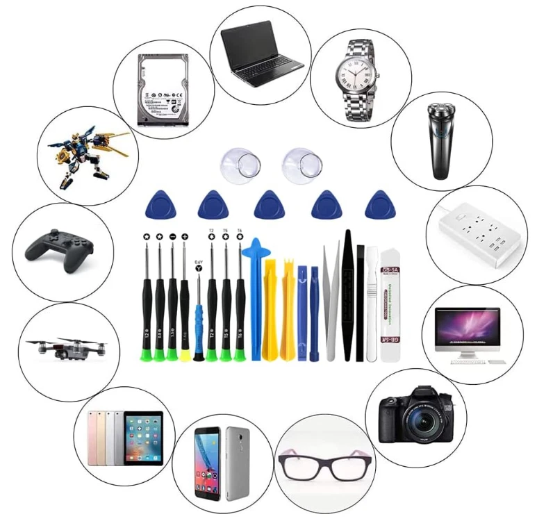 25 De Precision Destornilladores Desarmadores Para Celulares Herramientas Repara Best Combination: 25 pcs phone repair tool kit .Including 8* precision screwdriver, 14* Opening Pry Tool, 1* tweezers, 2* LCD Screen Suction Cup in different size meet all your operating demand. High Quality: This screwdriver set in durable stainless steel tip and plastic handle with rubberized grip,hardened plastic pry bars and triangle paddles,anti-static tweezers and scrapers. Anti-static and Magnetism: The Computer repair tweezers has anti-static coating helps protect electronic components from static damage.Screwdriver tips with strong magnetic can easily absorb screws and perfect handling of all the tiny electronic screws. Safety Personal Equipments:Repair it yourself with this smartwatch repair kit, you don't need to ask a friend for help or wait for a repair technician or find a repair center, so this professional electronics repair kit not only saves you money and time, it also protects your personal Privacy, you deserve it. Multipurpose:25 in 1 multifunctional professional repair tools suitable for assemble or disassemble all your ec devices. Like cellphones,computers, laptops, Android,iPhone,iPad, Samsung, HTC,LG,camera lens ,Hard Drives,Xbox,Game Handles,Razors and other electronic devices. SHIPPING: We offer FREE shipping on all orders! We ship within Three business days of payment, usually sooner. We use a selection of shipping services such as UPS, FedEx, USPS etc. We only ship to the lower 48 states, no APO/FPO addresses or PO Boxes allowed. Local pickups and combined shipping options are not provided at this time. PAYMENT: We accept payment by any of the following methods: PayPal Please pay as soon as possible after winning an auction, as that will allow us to post your item to you sooner! FEEDBACK: Customer satisfaction is very important to us. If you have any problem with your order, please contact us and we will do our best to make you satisfied. Thank you for shopping with us!
