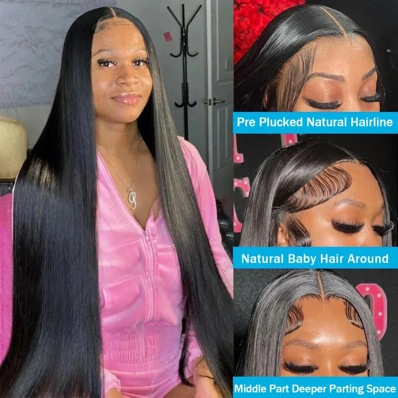 250 Density 13x6 40 Inch Brazilian Bone Straight Wigs HD Transparent For Women