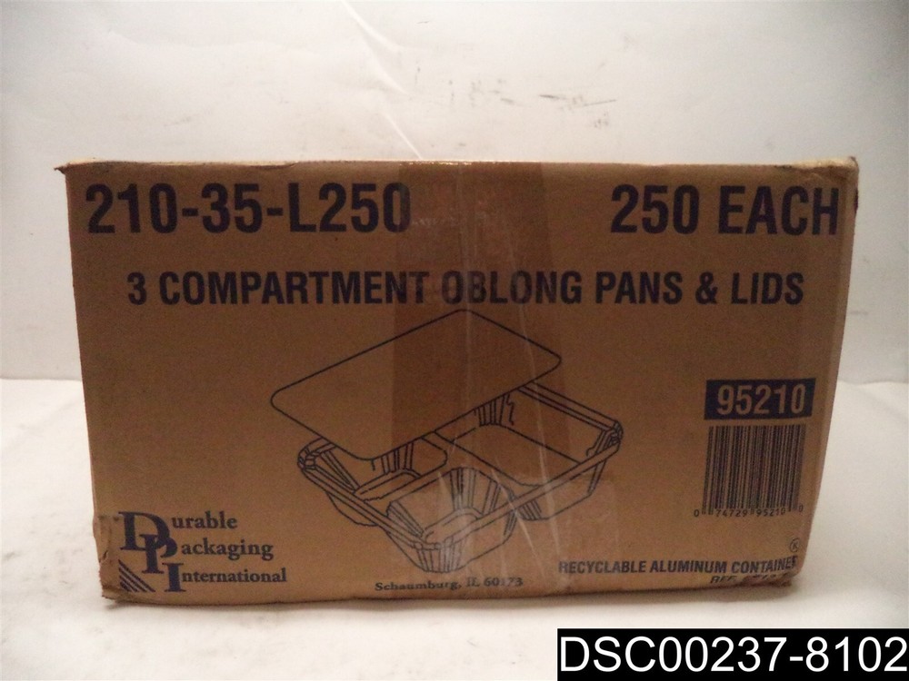 This item is:____SOME MAY BE DENTED: Qty= 250: 3-Compartment Aluminum T.V. dinner /Food storage trays with Board Lids #210-35-L250______________________________________________________________ This item is new, however, it may have scratches and marks from handling. See photos.__ Includes 250X what is shown in the picture. 1004 Warehouse Location:__Warehouse #1__Shelf_____4231_________________________ Sales tax will be added to items shipping to locations in Kansas. _____________________________________________________________________ _____________________________________________________________________ _____________________________________________________________________ By bidding and or purchasing this item(s) you (the buyer) agree to the following terms and conditions: 1. An item is defined as the following: The unit or units purchased in the ebay listing, (it could be a single unit, multiple units, a mixture of units, a variety of units, the incorrect unit or any combination of units not mentioned). It also includes the packaging, or lack thereof, the shipping label, and any contents place in the package by error. 2. The Seller is defined as Sellor and/or Consignor. 3. The buyer is defined as the entity that purchased the item from Sellor and/or Consignor. 4. If the buyer does not agree to these terms and conditions then do not purchase from us. 5. All items are sold AS IS No warranty or liability is expressed or implied. 6. The buyer agrees that: All items are shipped without insurance. It is the responsibility of the buyer to let us know if they want insurance on the item. Insurance cost is $2.00 for every $50 insured, in $50 increments. The buyer agrees that if no insurance is purchased and the item is not received or received damaged that no claim shall be brought against the seller. 7. We only ship to PayPal confirmed street addresses, no exceptions. No PO Boxes, APO, FPO or similar addresses. 8. The buyer agrees that the sale is considered complete once the carrier has picked up the item from the seller. 9. The buyer agrees that if there is a dispute that arises that the dispute will be settled in the State of Kansas under the laws of Kansas. 10. The buyer agrees that the item fits the buyers purpose prior to bidding. 11. The buyer agrees to indemnify and hold harmless the seller from any and all claims arising out of any conditions or defects for the item or items that they purchased 12. We only ship to the continental United States. The shipping price quoted is for the continental United States Only. All other locations will be charged extra. Out of county buyers agree to pay any additional charges that we ask them to pay including but not limited to import duties, shipping costs, packaging costs, time costs, and other costs. If the item is shipped via ebay global shipping program these terms and conditions still apply. 13. Claims made against the carrier for non-delivery, lost in transit or any other reason shall be made solely by the buyer without aid from the Seller. 14. In the event that any clauses or phrases contained here within are ruled out by a judge, the law, a lawyer, jurors, and or any other entity all others remain in effect. 15. If any claim is brought against the Seller the buyer agrees to pay for any and all costs including legal fees, travel, time, accommodations, and other costs. Late payment will result in the seller charging interest at the maximum legal rate. 16. In any event or circumstance the maximum liability to the Seller is the purchase price plus cost of shipping plus sales tax if applicable. This amount is not subject to inflation, interest, inconvenience fee or any other price adjustment. 17. The buyer agrees there will be no refunds for any reason outside of the Ebay return policy. 18. The buyer understands that our items are wholesale, overstock, unclaimed, foreclosure purchase or salvage goods. Most boxes have been opened for inspection and photos. If items are listed as new they may not come with original packaging. 19. The buyer agrees that they are trained, licensed, qualified, and understand how to properly use, dispose of and handle the product in accordance with law and regulations. 20. The buyer agrees that if any part of these terms and conditions is determined to be void that it does not void or alleviate the enforcement of the remainder of this contract. 21. Sellor and/or Consignor is not an authorized distributor, reseller or representative of the products featured on this website. All product names, trademarks, brands and logos used on this site are the property of their respective owners. The depiction, description or sale of products featuring these names, trademarks, brands and logos is for identification purposes only and is not intended to indicate any affiliation with or authorization by any rights holder.
