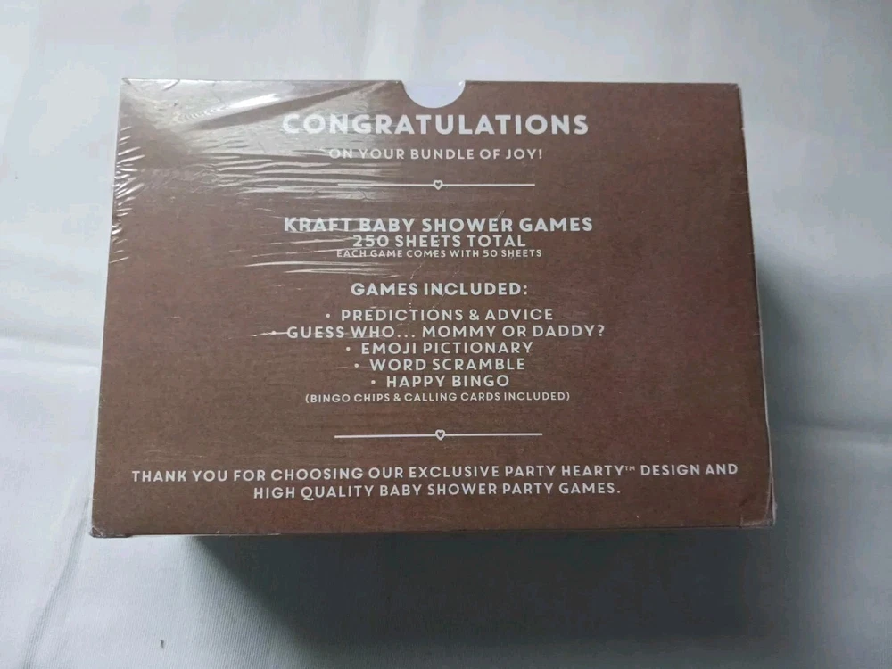 Get ready for a fun-filled baby shower with this pack of 250 Rustic Kraft Game Cards! Perfect for both boys and girls, these cards feature a variety of fun mini-games that are sure to keep your little ones entertained. The pack includes cards for popular games like Bingo and Scramble, and is sealed for your convenience. With a Party Hearty brand, these cards are made for fun and excitement. Ideal for kids' parties and family gatherings, these cards are a great addition to your party supplies. So why wait? Order now and get ready to provide your little ones with hours of entertainment!
