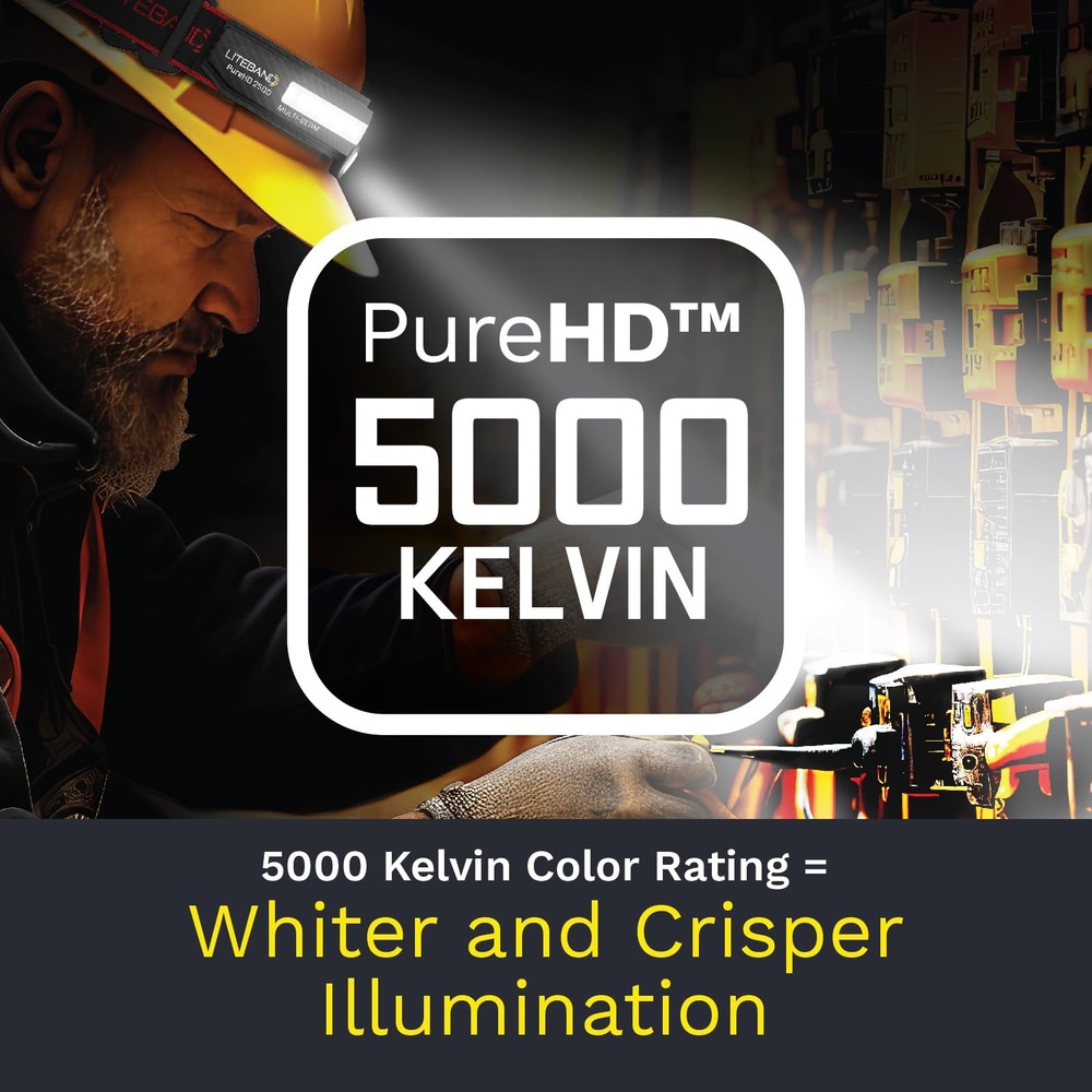 The Liteband PureHD 2500 Multi-Beam is a premium, professional-grade COB LED headlamp and rechargeable LED headlamp designed for tradespeople and technicians who require exceptional brightness, long-distance precision, and accurate color rendering for detailed work. Delivering a 1400-lumen 210° wide beam and an 1100-lumen focused beam with a 15° tilt, this high CRI headlamp provides panoramic visibility and a powerful spot beam reaching up to 250 meters, allowing users to see wiring, materials, and work surfaces with clarity that often motivates them to take on complex tasks in low-light environments. Before use, the headlamp only needs to be charged and adjusted for a secure, comfortable fit; once powered on, it immediately delivers the PureHD optical clarity needed for inspections, installations, and fine repair work. PureHD technology enhances visibility with >90 CRI color accuracy and a 5000K natural white output, while durable COB LEDs offer impact resistance and efficient runtime for demanding jobsite conditions. With 6 lighting modes—Wide Beam, Focused Beam, Multi-Beam, Red LED, Pulse, and Low—and the exclusive Start Select feature, users can always begin in the mode that best matches their workflow. When the shift or project is complete, the headlamp powers off and packs neatly with gear, ending the lighting sequence with a dependable tool ready for its next use. Built with an IPX5 weatherproof housing and powered by a long-lasting 3400mAh USB-C lithium-ion battery that delivers up to 28 hours of runtime on Low, the PureHD 2500 is ideal for electricians, mechanics, HVAC technicians, inspectors, outdoor professionals, and anyone who needs uncompromising performance in dark or complex environments. Available in Carbon Fiber, Red, and Hi-Vis Yellow. Every Liteband Multi-Beam Series LED headlamp combines panoramic 210° wide-beam illumination with a directional focused beam, giving users both full-area visibility and powerful long-range lighting in a single hands-free multi beam headlamp system. Before starting a job or activity, a quick charge and a simple adjustment of the balanced band or helmet clips ensures a secure, comfortable fit for anyone using this professional rechargeable headlamp. Once powered on, users can instantly access the lighting mode that supports their workflow—whether inspecting equipment, navigating trails, installing hardware, or handling emergency repairs—which often encourages them to work more confidently and efficiently in low-light environments. The 6-mode lighting platform with Wide Beam, Focused Beam, Multi-Beam, Red LED, Pulse, and Low offers flexibility for construction work, mechanical tasks, night inspections, outdoor travel, camping, running, climbing, hiking, fishing, and emergency repairs. The exclusive Start Select feature lets users choose their preferred start mode for consistent workflow, while the 15° tilt-adjustable spot beam helps direct light exactly where it’s needed with this versatile multi beam head lamp. A flexible IPX5 weatherproof housing protects against rain, dust, and tough jobsite conditions, while the long-runtime 3400mAh USB-C rechargeable head lamp lithium-ion battery supports extended use across all lighting modes. When you’re done and the worksite is safe, the trail is cleared, or camp is set, the headlamp is simply powered off and packed away, leaving it ready for the next job or outing. Ideal for professionals, tradespeople, mechanics, electricians, HVAC technicians, hunters, runners, and everyday adventurers, the Multi-Beam Series delivers adaptable lighting for any environment. PureHD, HIGH DEFINITION CRISP, BRILLIANT DETAIL - When details matter, the PureHD 2500 from Liteband delivers >90 CRI and 5000K of crisp and perfect clarity for the most demanding professional applications MULTI-BEAM ILLUMINATION, BALANCED, BOUNCE-FREE DESIGN: Liteband PRO 2500MB PureHD provides up Comfortable full up close and distance illumination with a 1400 Lumen COB LED 210°wide-angle beam Plus a 15-degree tilt, 1100 Lumen, focused beam feature for illumination up to 250 Meters 6 MODES WITH EXCLUSIVE START SELECT FEATURE: This headlamp is ultra-versatile with 6 modes including Wide Beam Only, Focused Beam Only, Wide and Focused Beam together, Red LED, and Pulse; Start Select feature allows you to choose the start mode of your choice LIGHTWEIGHT, HANDS-FREE COMFORT: Compact, low-profile, and comfortable to wear, Less than 8 oz clips safely onto any hardhat, with a headband that adjusts to any head size; Use for construction, running, camping, climbing, hiking, backpacking, and search and rescue RECHARGEABLE LITHIUM ION BATTERY & WEATHERPROOF HOUSING: These personal headlights are great for any plumber, outdoor worker, or mechanic and can withstand the elements with up to 22 hours of light (low) time and a fast-charging 3400mAh Extend rechargeable battery THE PROFESSIONAL CHOICE: IPX5 weatherproof rated and Class 2 safety-rated, our ultra-bright headlamp can be packed with your gear and hard hat, keeping you prepared and ready for anything Designed in Arlington Heights, Illinois, founded 2018. We appreciate you choosing Liteband. 2 Year PRO Limited Warranty.