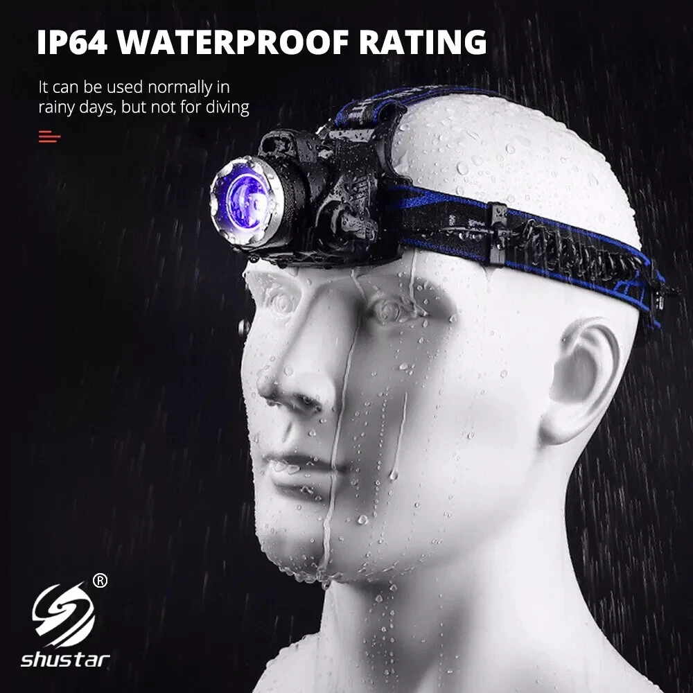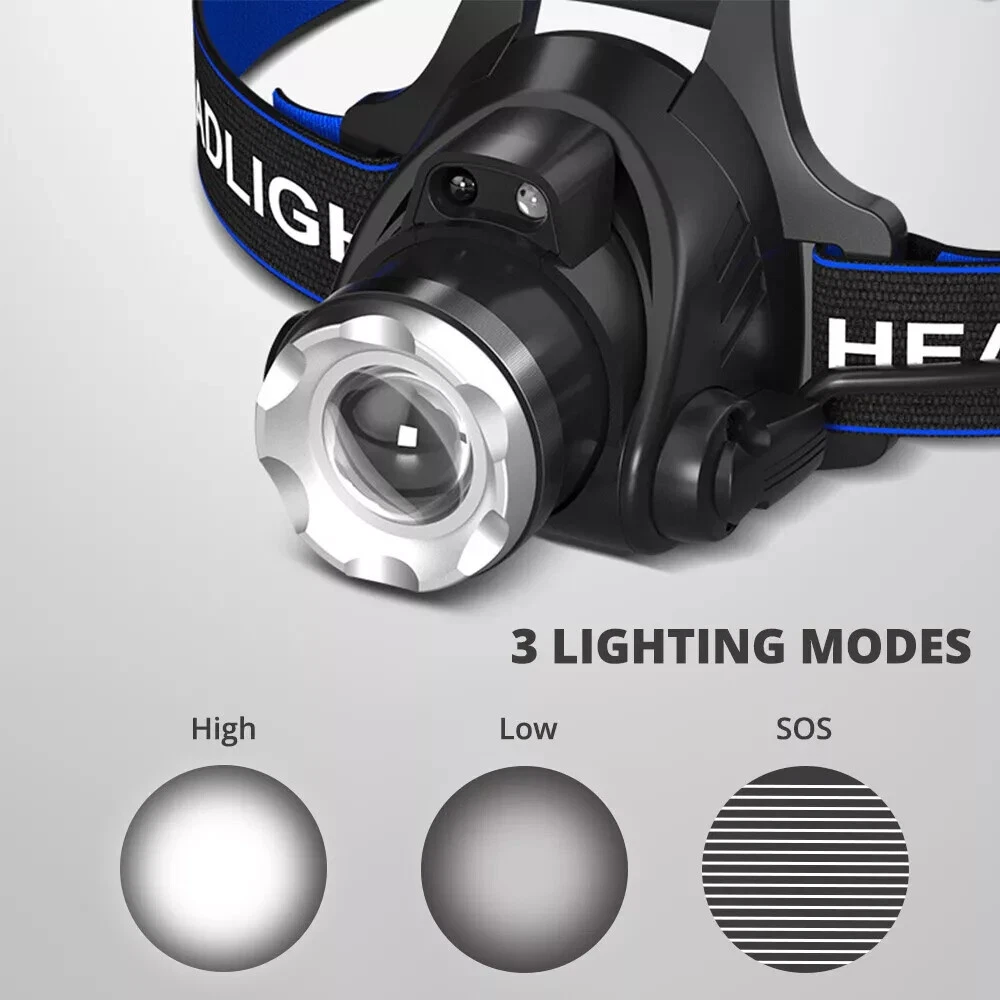 25000LM Powerful LED Headlamp Waterproof Headlight USB DC Charging Head Lamp Zoomable Head Front Light Use Rechargeable Battery More than 98% of buyers will choose to buy a set with a battery and a charger to avoid some problems that are expensive and can't be bought. High quality, full capacity, no virtual standard capacity. Recommend everyone to buy.LOOK AND FEEL GREAT WEARING IT - Super Comfortable and Stylish Head Straps are both Stretchy and Adjustable to Fit all Adults and Kids. With it's Stylish and Sleek Design - All your friends and family will want to wear one. * Model of LED: L2/V6 * Lumens: 8000/18000/25000 Lumens * Waterproofing design * Aluminum alloy casing * Aluminum alloy reflector * 3 switch Mode: Bright Light/Dim Light/Flashing Mode * Model of Battery required: rechargeable Battery * Colour : Black with Blue Band * Head Light Weight :175g * Adjustable Focus, Zoomable LED Headlamp * Switch: head press switch Main Features: Use 1 or2* rechargeable batteries. Intelligent circuit control, Telescopic Zoom,3 mode (strong, low, SOS). The headband can stretch adjust according to the size of your head. Conveniently put on or take off. The head It can adjust the illumination angle of 90 degrees. The red indicator light on the battery holder plays a good warning role in night walking or cycling! Suitable for sport lovers to do some such as hunting, cycling, Bicycle riding, To climb, Hike, Working, Fishing, Camping etc Package Contains: 1x Headlamp 1x USB Charger Cable 2x Battery(Not AA battery)