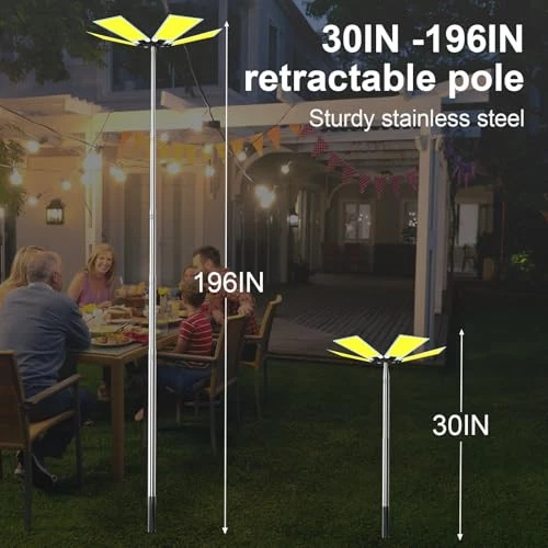 Return Policy Fast Delivery Trusted seller 25000lm LED Telescopic Camping Lights Portable Outdoor Camping Light Telescoping Pole Fishing Light at Night Flood Light Super Bright Emergency Light Backyard Lighting Product Description 1. Quintuple Brightness (5 Panels, 900 COB Lamp beads Super Bright) , Perfect for All Lighting Cases - This led light designed with adjustable 29 ~ 106 inches telescoping pole featured by 5 high intensive COB lampborads is complete enought bright to light up 2-3 basketball court. It's also a portable lighting equipment for outdoor activities (basketball football badminton competition), camping, picnic, backyard, night fishing 2. Providing 5 Cool Lighting Panels- This camping LED light features an excellent design with COB lamp pads and larger aluminum metal backs, which increases the brightness while increg the heat dissipation area, as well as helps to dissipate heat quickly. It can keep cool even if it works a whole day, without worrying about hurting your skin or burning of lamp. It also come with a ground inserted rod, allows you to insert your light into the ground. 3. Low Voltage & Safe - This LED outdoor light is powered by DC 12V voltage facilities, low voltage & low current, wouldn't hurt your skin, energy-efficient and environmentally friendly. Warm Tip: Do not directly connected with the 110V or 220V household voltage supply, unless it is transformed to 12V by household appliance transformer. You can try any 12V power supply equipment, such as manual generator, trolley battery, DVD speaker, accumulator jar, gasoline generator, car battery, etc. 4. Multi-Functional --- IP67 --- Protection safeguards against rain, dust, snow, and spills. Get incredible lighting at home, in the yard, on the street, or anyw else imaginable. 5. Easy to Carry and Store: A gun-shaped nylon bag is provided. All the accessories can be easily packed into the bag. The storage bag was deisigned with a long shoulder strap, allowed you to carry your light. Shipping Returns Payment Shipping Shipping is FREE to all addresses other than APO/PO boxes in the lower 48 states. All our stock ships from US-based warehouses. Shipped via USPS or UPS (depending on location and package weight) Unless stated otherwise, all orders will ship within 24-72 hours of your payment being processed. Check our feedback to see the great reviews of FAST shipping we offer. Returns Seller does not accept returns Payment We currently accept payment via eBay managed payments only. Once payment is cleared, we will dispatch your shipment within 1-3 business days. Please refer to the "Shipping" tab for more information regarding shipping speed to your destination.