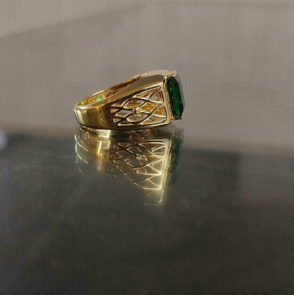 2.50Ct Emerald Simulated Green Emerald Men's Engagement 14K Yellow Gold Plated