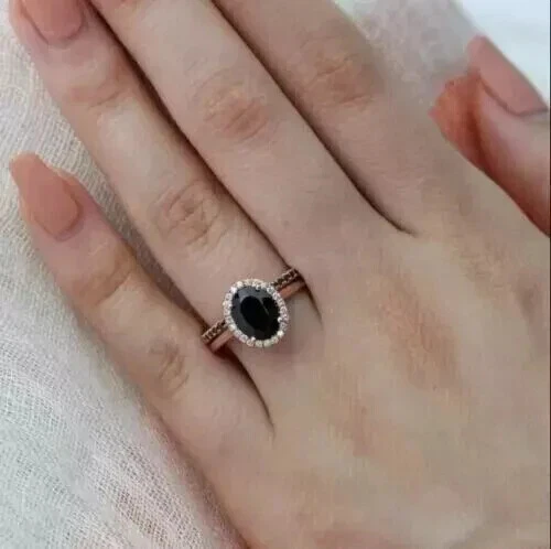 2.50Ct Oval Cut Simulated Diamond Wedding Bridal Ring Set 14k Rose Gold Plated