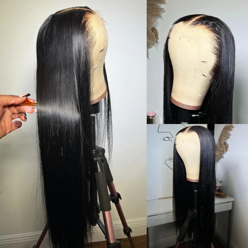 250Density Curly 5X5 Glueless wig Human Hair 30 40Inch Straight Lace Frontal Wig