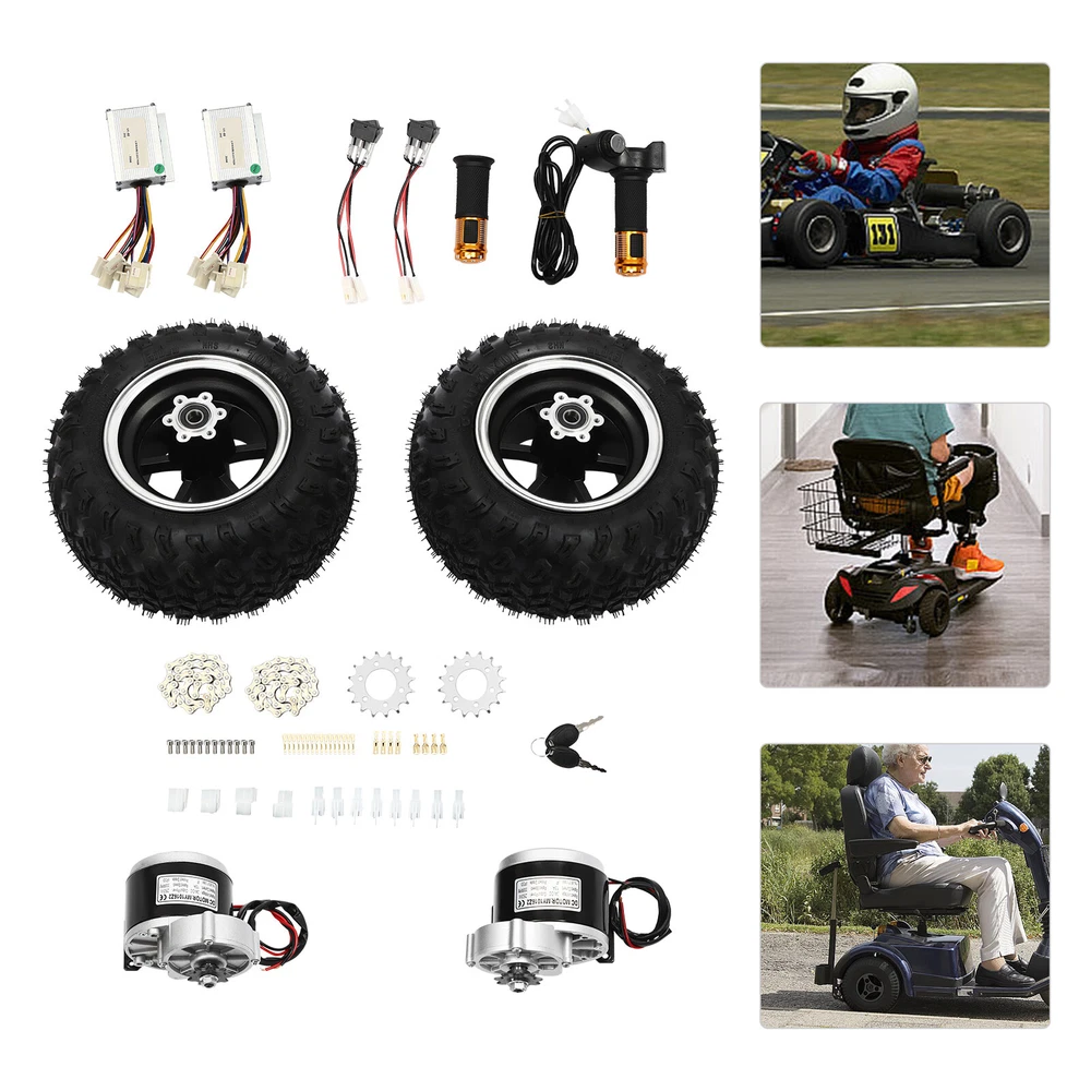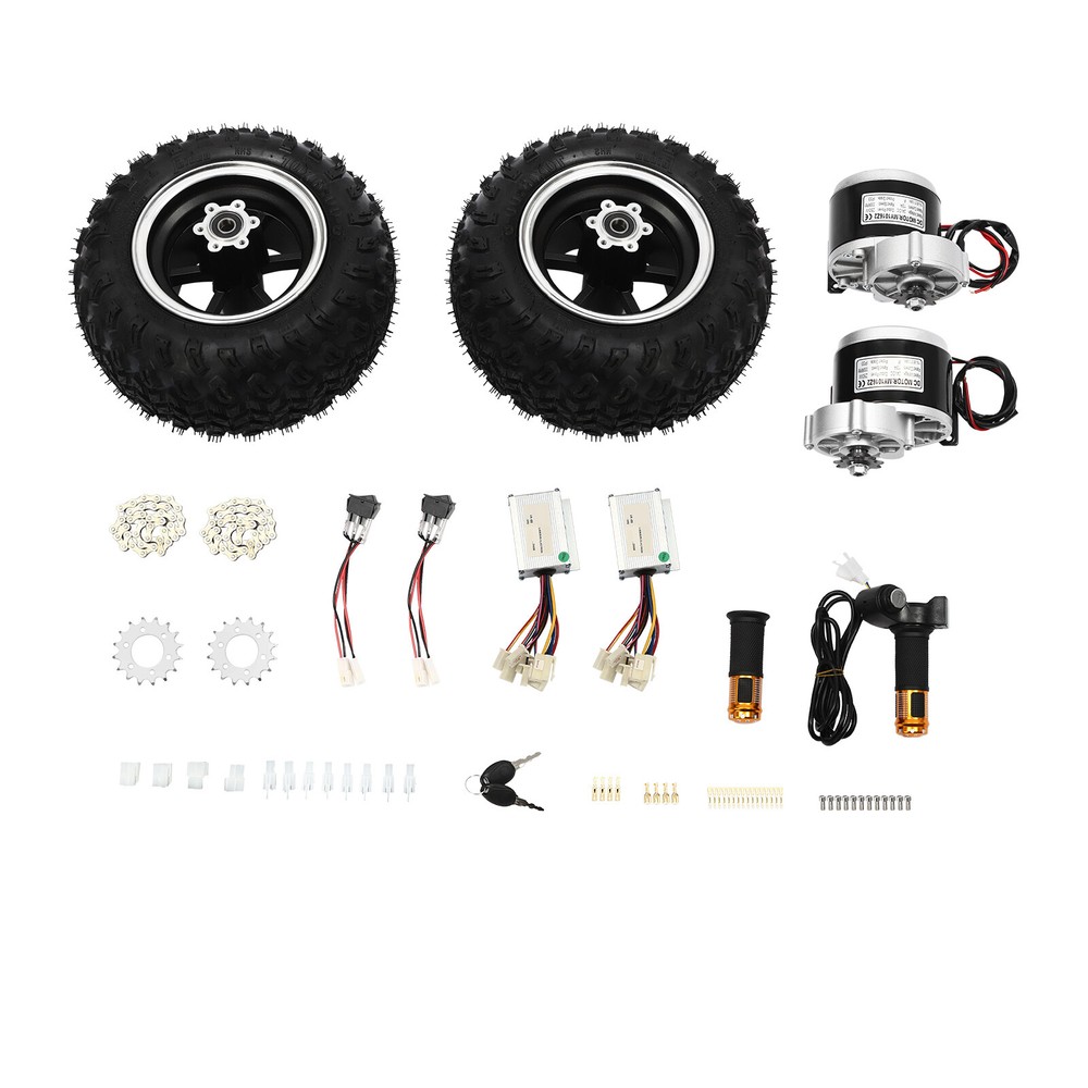 Double Wheel Motor Drive Air Wheel Conversion Kit For Electric Cart Scooter 250W Description If you are looking for a professional and safe kit for your scooter, then our set can be an ideal choice. Our products are made of high-quality materials and are built to last. Complete accessories are available to meet your needs. Its simple structure allows you to install and use it quickly. It is efficient and safe to use, providing a guarantee for your riding. Key Features Made to Last: This product is made of high-quality copper, iron, aluminum, magnetic and rubber, sturdy, stable, rust-proof and wear-resistant, ensuring long service life and strong load-bearing capacity, up to about 330.69-440.92lbs. Complete Kit: This kit contains the complete set of accessories needed to modify your scooter without the need to purchase them separately. Matching kits will provide you with more stable and consistent performance. Powerful Motor: With a 250W brush gear motor, it can reach a maximum speed of 6.21mile/h. Compared to brushless geared motors, it has high starting torque, simple control and high adaptability. High Safety: The F insulation class and IP33 protect grade make it safe and reliable, so you can use it with confidence. Electrical Assistance: The motor kit provides electric assistance to reduce the physical burden on the rider, especially when riding uphill, against the wind or over long distances, making the ride easier and more enjoyable for riders of all ages and fitness levels. Environmentally Friendly : Scooter, as a green mode of transportation, are conducive to environmental protection and are in line with the current concept of low-carbon life. Ideal Gift: With its good performance, you can give it as a gift to your family or friends who love to ride, so that they can enjoy the fun of riding. Good Customer Service: We aim to provide quality products and services. If you have problems, please feel free to contact us. We will reply and solve the problem for you as soon as possible. Details Large Wheels: 10inch diameter wheels with anti-skid design can easily handle most road conditions. Reverse Gear Switch: It solves the problem of traditional scooters that are difficult to reverse in narrow spaces or on steep ramps. It enables you to maneuver your scooter more safely and conveniently when you need to reverse, improving the flexibility and practicality of your vehicle. Digital Display Throttle: The digital display throttle is not only capable of adjusting the motor boost level, but also integrates a digital display screen to show the battery voltage in real time, allowing the rider to know the vehicle status at a glance, making the operation more intuitive and precise. Application This product is suitable for small go-karts, electric wheelchairs and senior mobility scooters. Specification Material: Copper, Iron, Aluminum, Magnetic and Rubber Color: Black Assembly Required: Yes Motor Type: Brush Gear Motor Rated Voltage: 24V Output Power: 250W Unload Current: ≤2.2A Rated Current: ≤13.4A Unload Speed: 370rpm Rated Speed: 330rpm Rated Torque: 0.8N.m Efficiency: ≥80% Gear Ratio: 9:7:1 Insulation Class: F Protect Grade: IP33 Speed: 10km/6.21mile/h Wheel Diameter: 25.4cm/10in Axle Hole Diameter: 12mm/0.47in Package Size: 48*37*30cm/18.9*14.57*11.81in Load Capacity: About 150-200kg/330.69-440.92lbs Gross Weight: 16kg/35.27lbs Package Included 2* Wheels 2* Motors 1* Digital Display Throttle Other Accessories for Assembly Notes Please note that this product cannot change gears, you can adjust the speed by throttle. Please note that this kit does not include batteries, you need to buy batteries separately, lead-acid batteries and lithium batteries are available, recommended battery capacity is 24V 15Ah. Please note that the wheels are vacuum tires without tubes. Please allow the slight color difference caused by the shooting light and 1-3cm error due to manual measurement, and make sure you do not mind before ordering. Payment Delivery details Terms of sales About us Contact us Payment We accept ebay payment 。 Fees such as import duties, taxes are not included in the item price or shipping costs. These charges are the buyer's responsibility. Delivery details Shipping: 2-9 working days to: USA Terms of sales We maintain high standards of excellence and strive for hundred percent customer satisfaction. Feedback is very important to us. We hope that you contact us immediately before you give neutral or negative feedback, so that we can address your concerns. It is impossible to address issues if we do not know about them! About us Your satis faction is our ultimate goal. We work hard to earn your trust and future business. Our certified technicians have tested each item before shipping. The unit comes with 1 year limited warranty on all manufacturing defects. a) If you receive a defective item, you may return it or ask for a discount. Please contact us within 14 days after you receive the package. b) What you returned must be intact and in its original packaging as re? u. Customer is responsible for shipping costs of the returned item. c) We will cover the cost of shipping back t with the shipping rate indicated in the registration page. We will send you a new unit or refund the full payment you paid. Thank you. Contact us Business Hour Business Hour: Monday To Friday: 8:30 AM to 5:00 PM (Beijing China time) Due to time zones, our reply to your questions may not be immediately. But within above working time, we will reply your email within 24 hours. If it's non-workdays, please kindly be patient and wait till Monday. Please contact us with ebay message. Please feel free to contact us if you have any questions. Monday To Friday: 8:30 AM to 5:00 PM (Beijing China time) Due to time zones, our reply to your questions may not be immediately. But within above working time, we will reply your email within 24 hours. If it's non-workdays, please kindly be patient and wait till Monday. Please conta