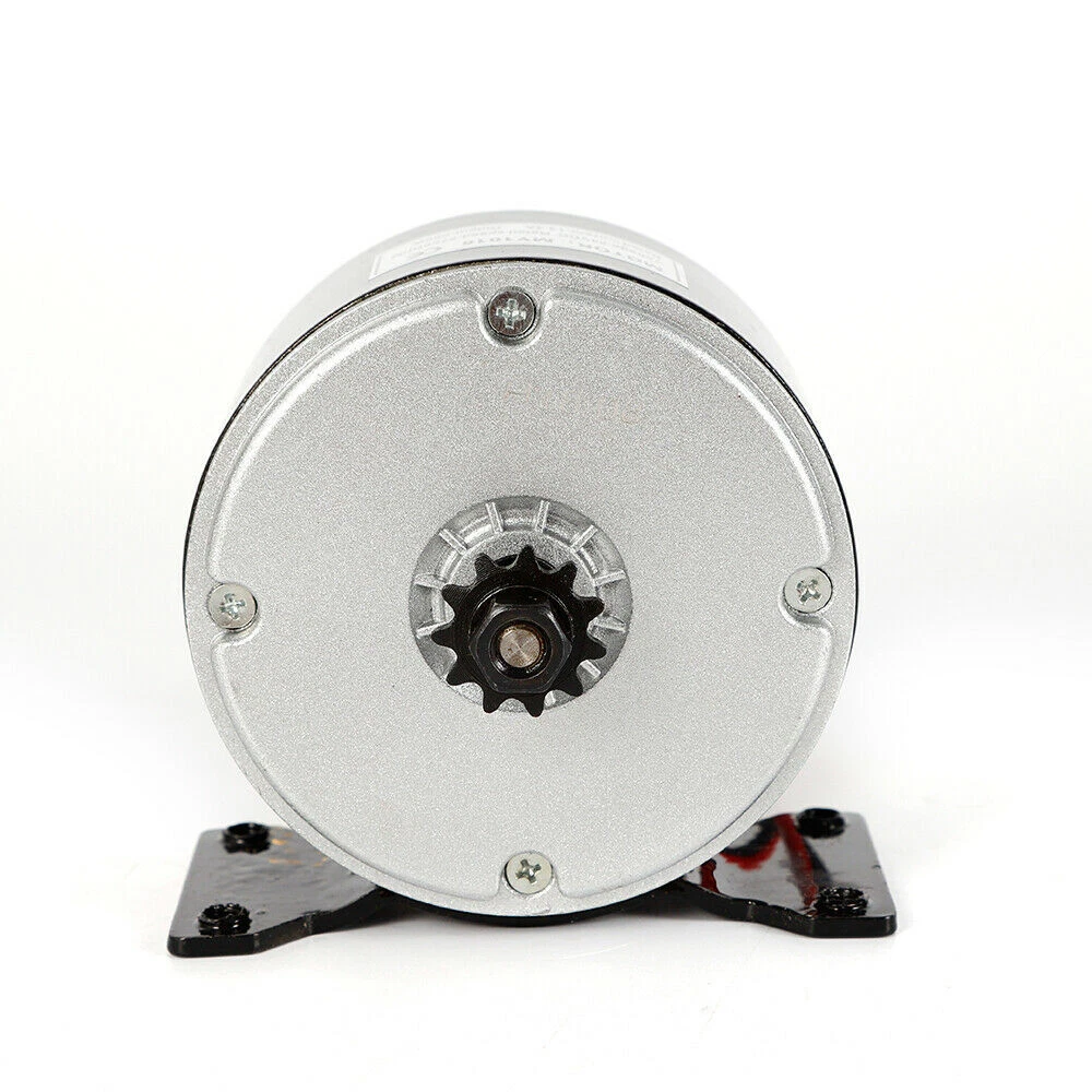 Description This brush permanent magnet motor has a pure copper coil with low resistance and high efficiency, ensuring its good performance. The speed of this motor is about 2750rpm, which can make your ride easier. This high-quality, practical motor will be the ideal choice for you! Details Pure Copper Coils: Pure copper coils with low resistance and high conductivity generate very little heat during use and do not easily burn out the motor, thus extending its life. Painting Process: The painting process on the shell makes it have good rust and corrosion resistance, and better adaptability to the various installation environment. Specifications Material: Iron Process: Painting Rate Voltage: 24V DC Power: 250 W Rate Current: 13.5A Rate Speed: 2750 RPM Type of Motor: Permanent Magnet Brush DC Motor Sprocket: 25H 11T Chain: 25H 6.35 Pitch Color: Black Packing Size: 16*16*15cm/6.29*6.29*5.9in Product Size(D*W): 10.1*8.15cm/3.97*3.2in Base Size: 4.2*9.5cm/1.65*3.74in Gross Weight: 2kg/4.4lbs Package Included 1 x 250W Permanent Magnet Electric Motor Notes Please note that it is normal for the motor to heat up slightly during operation. Please check the connector type, motor size and specification. Please allow the slight color difference caused by the shooting light and 1-3cm error due to manual measurement, and make sure you do not mind before you order. Reversible Design: By reversing the positive and negative poles of the motor, the motor can rotate counterclockwise to meet your various needs. Strong and Durable: The high-quality iron shell is solid, wear-resistant and impact-resistant, effectively protecting the internal components and extending the practical life. Easy to Install: The pre-set mounting holes allow you to easily fix it to the bracket with screws, saving time and effort. Low Noise: With a pure copper coil and precision bearings, it releases less noise during operation, giving you a quieter environment. Exquisitely Compact: Measuring just 6.7*4.3*3 inches, this compact motor takes up little space when mounted and is easy to carry. Smooth Running: The permanent magnet brush DC motor responds very quickly to voltage changes and maintains a smooth start and run. As a result, it runs smoothly even on irregular roads. High Efficiency: With a maximum speed of 2570 rpm, this 250 W motor allows for quick and efficient runs, providing you with a better riding experience. Customer Service: We aim to provide quality products and services. If you have any problems, please feel free to contact us. We will reply and solve the problem for you as soon as possible.